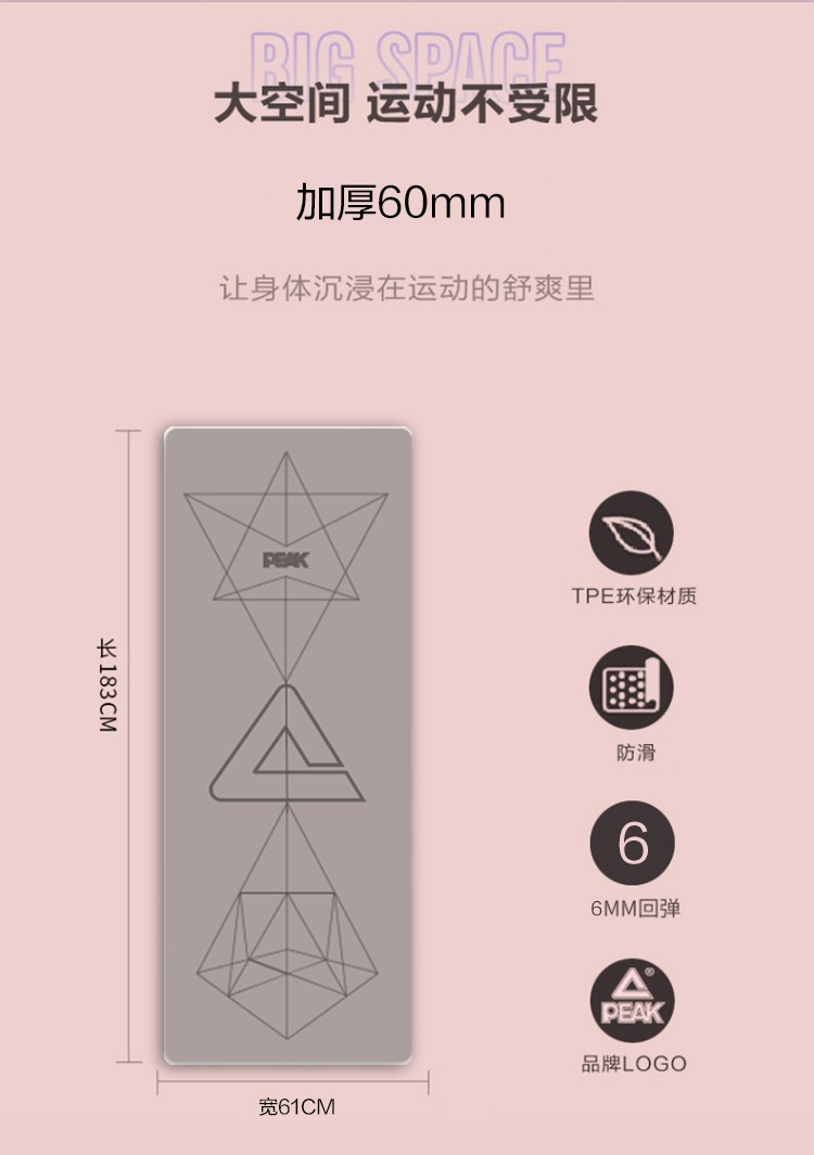匹克黄金TPE瑜伽垫YJ51299 灰色
