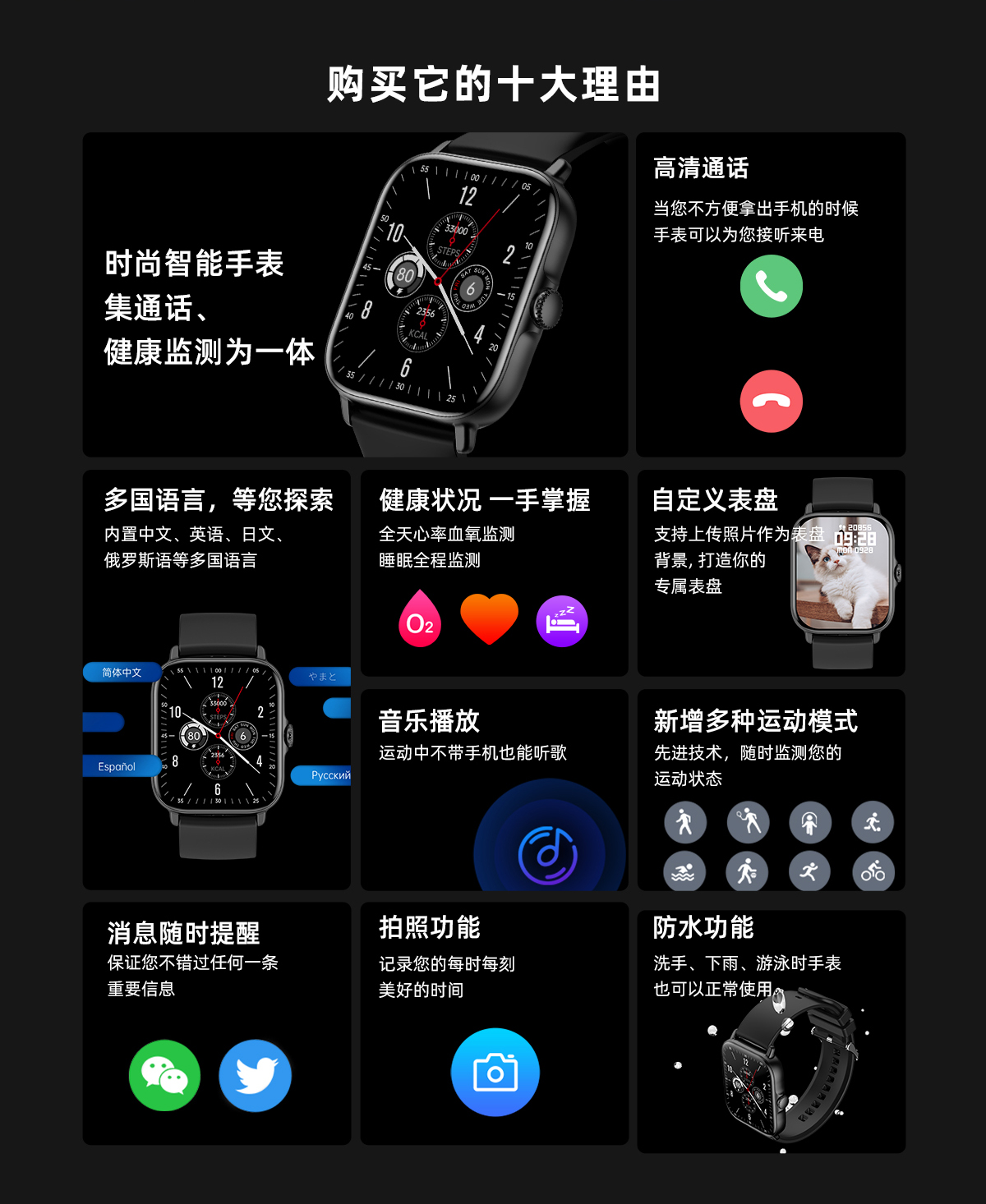 WITMIND蓝牙通话智能手表T12 黑色