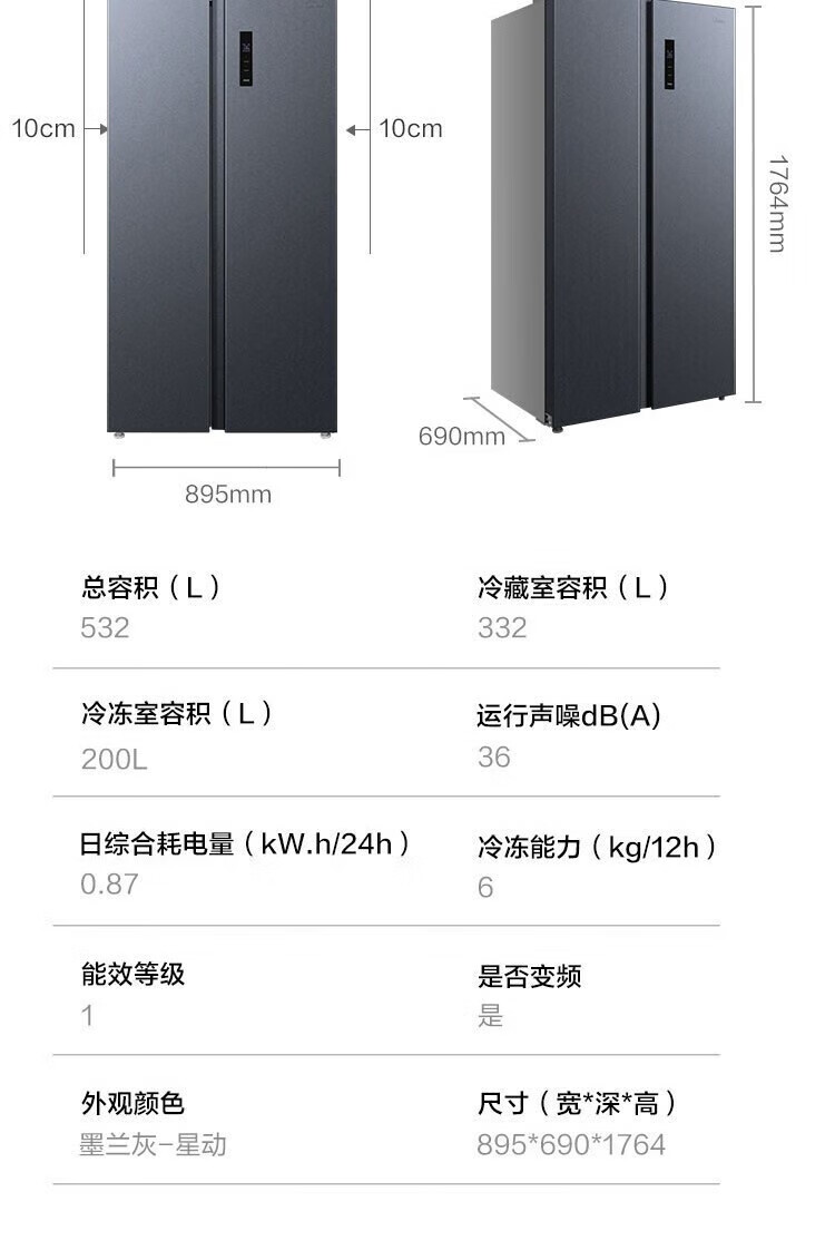 美的BCD-532WKPM(ZG)双门冰箱墨兰灰 墨兰灰