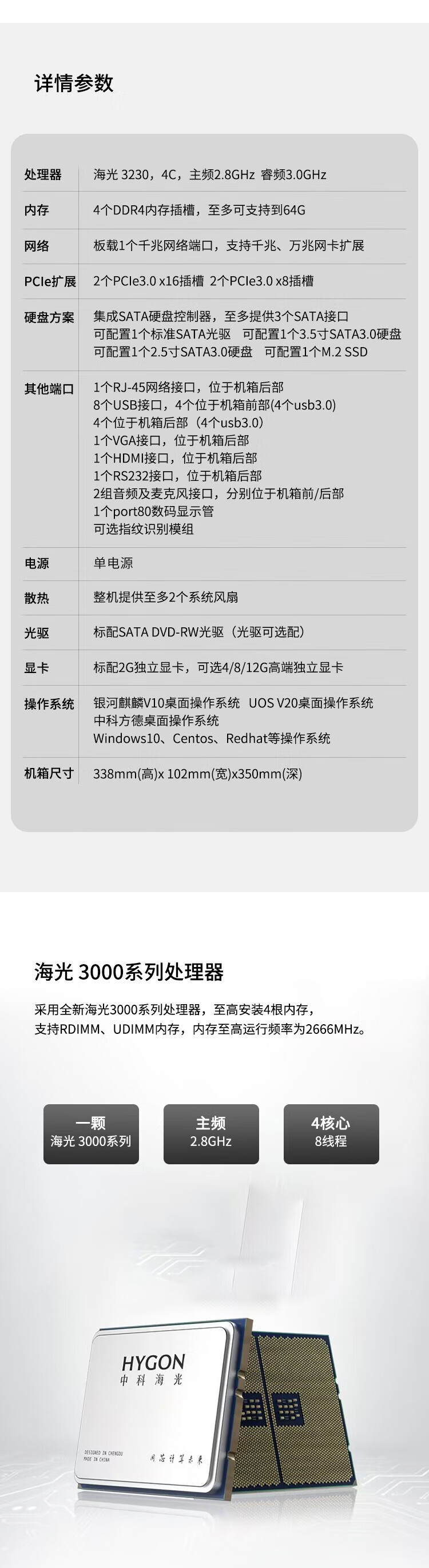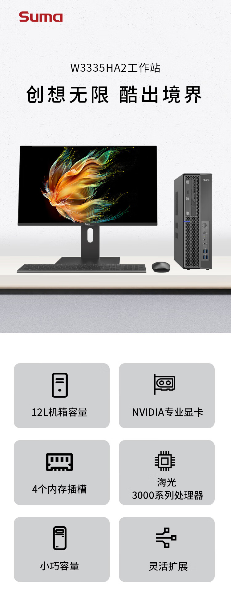 Suma中科可控W3335HA2海光3230国产信创台式工作站电脑