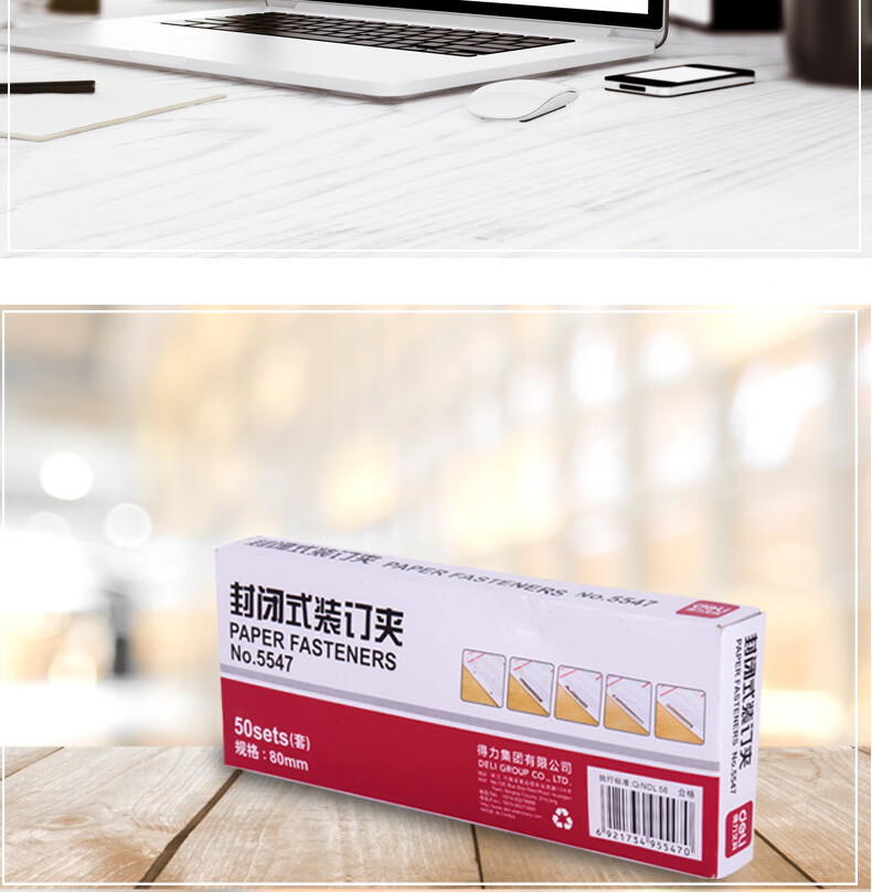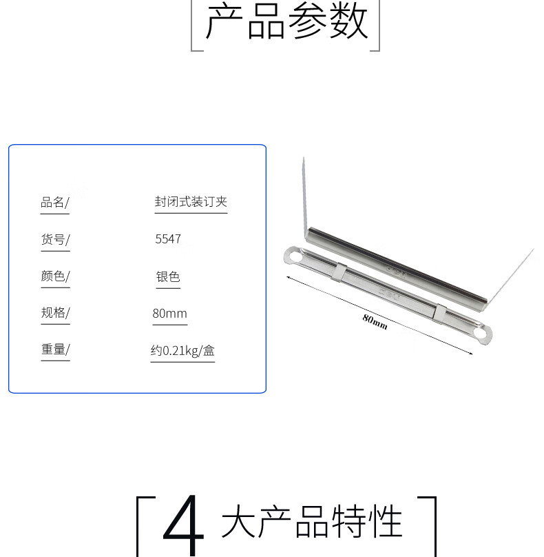 得力(deli)80mm封闭式金属装订夹 50套/盒 5547 (银色)