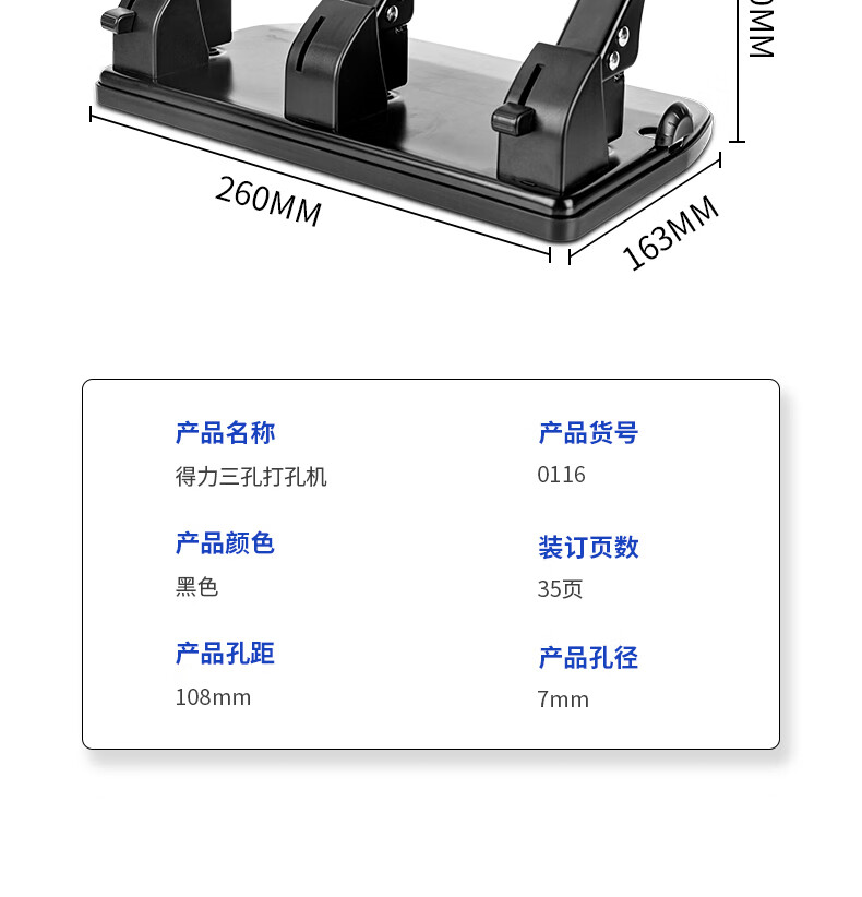 得力(deli)φ7mm孔距108mm三孔打孔机/打孔器 0116