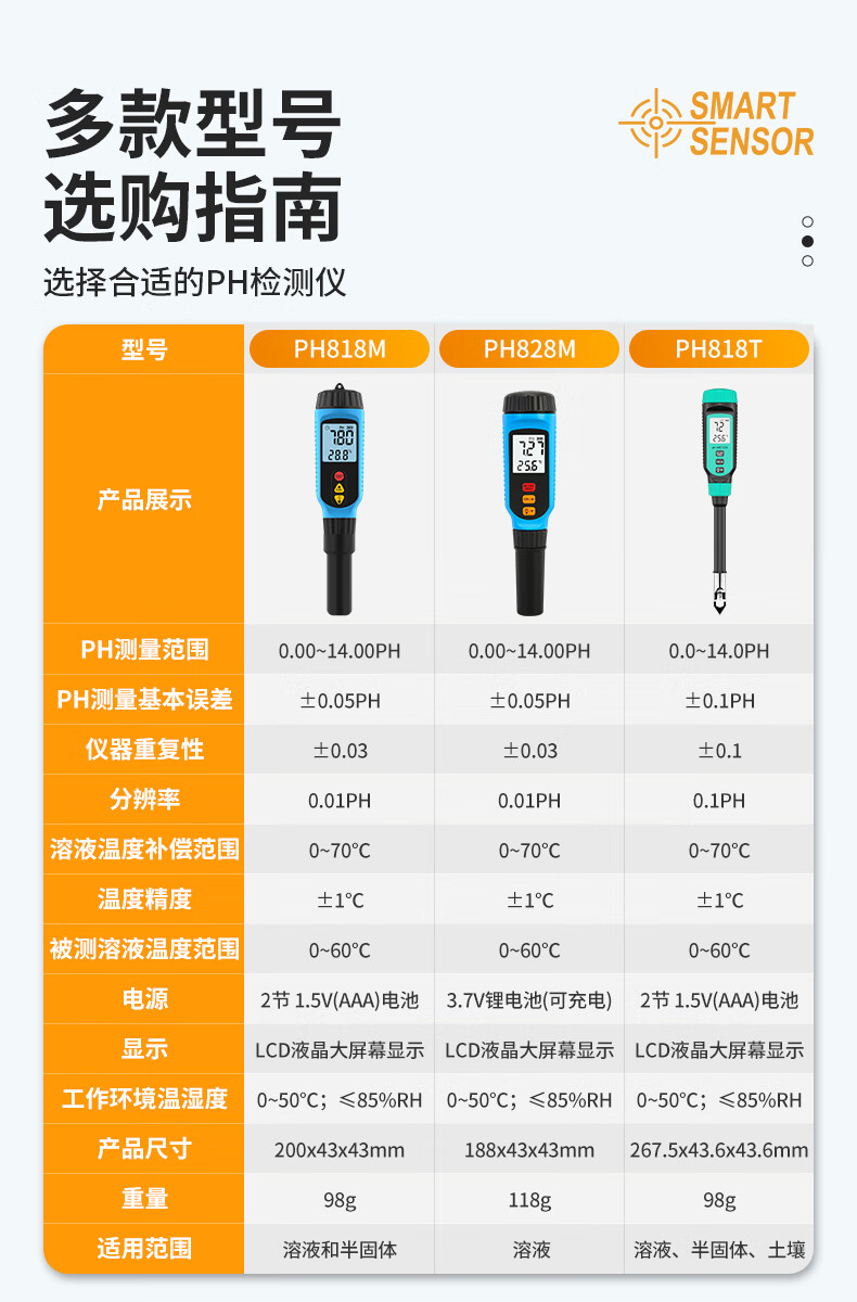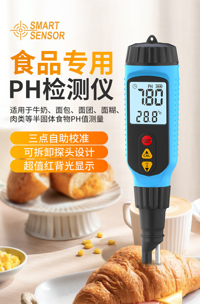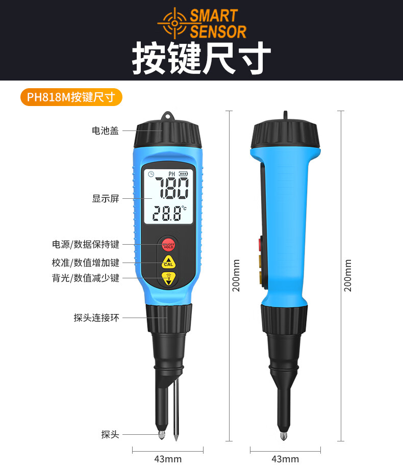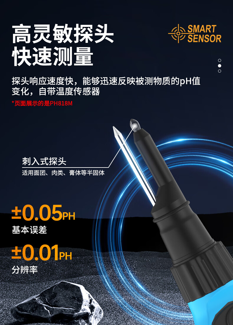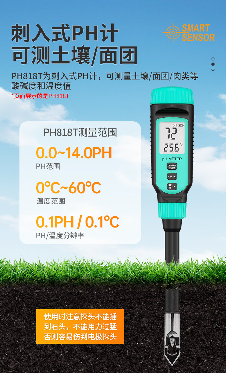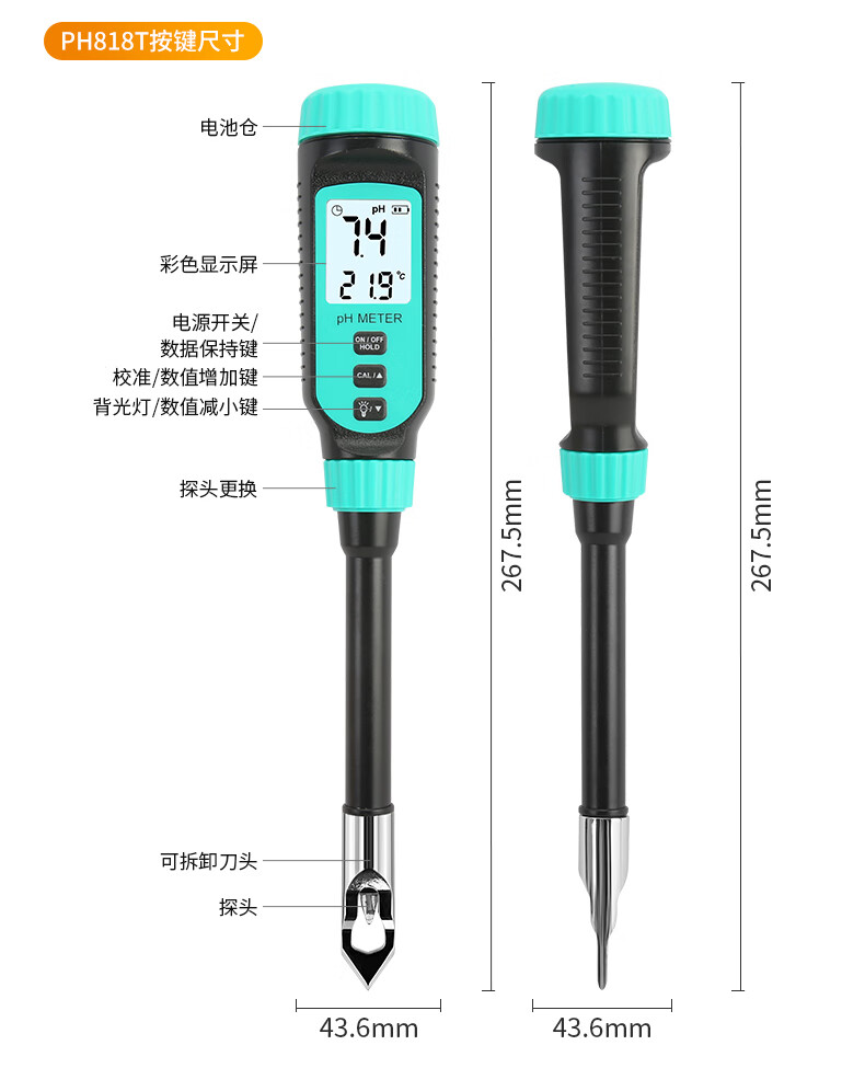 希玛酸碱度测试仪水质检测笔 土壤面团肉类测量刺入式 酸度计PH-818T
