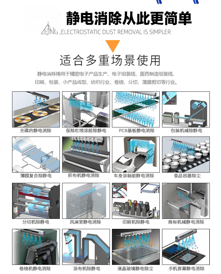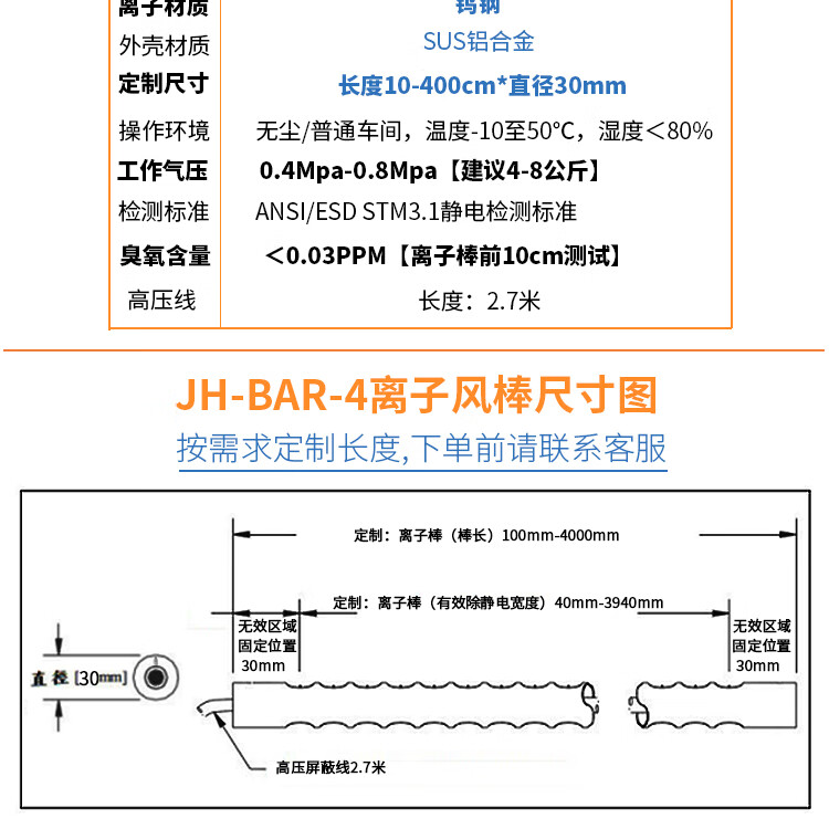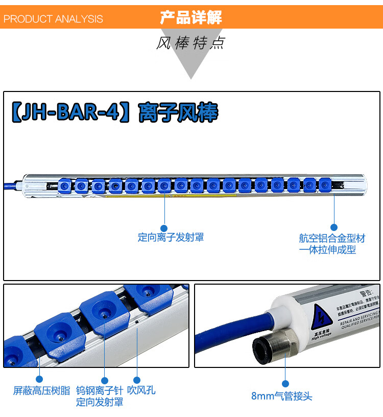 撼固除静电离子风棒JH-BAR4薄膜纸张印刷无纺布工业静电消除器离子棒