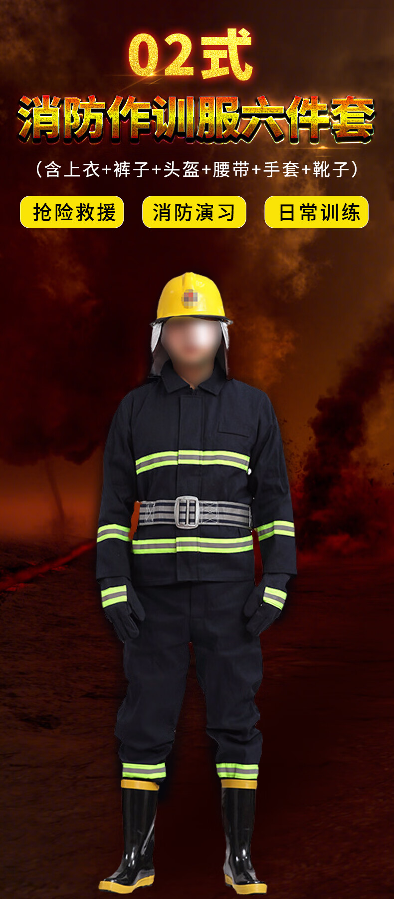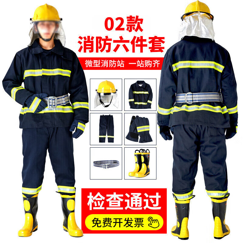 鸣固 消防服防火服套装救援服防护盔腰带手套靴六件套02款XXL码