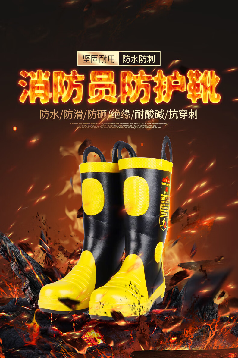 亿安隆02/14/17款消防靴子鞋战斗胶鞋护脚抢险救援 02款 消防靴