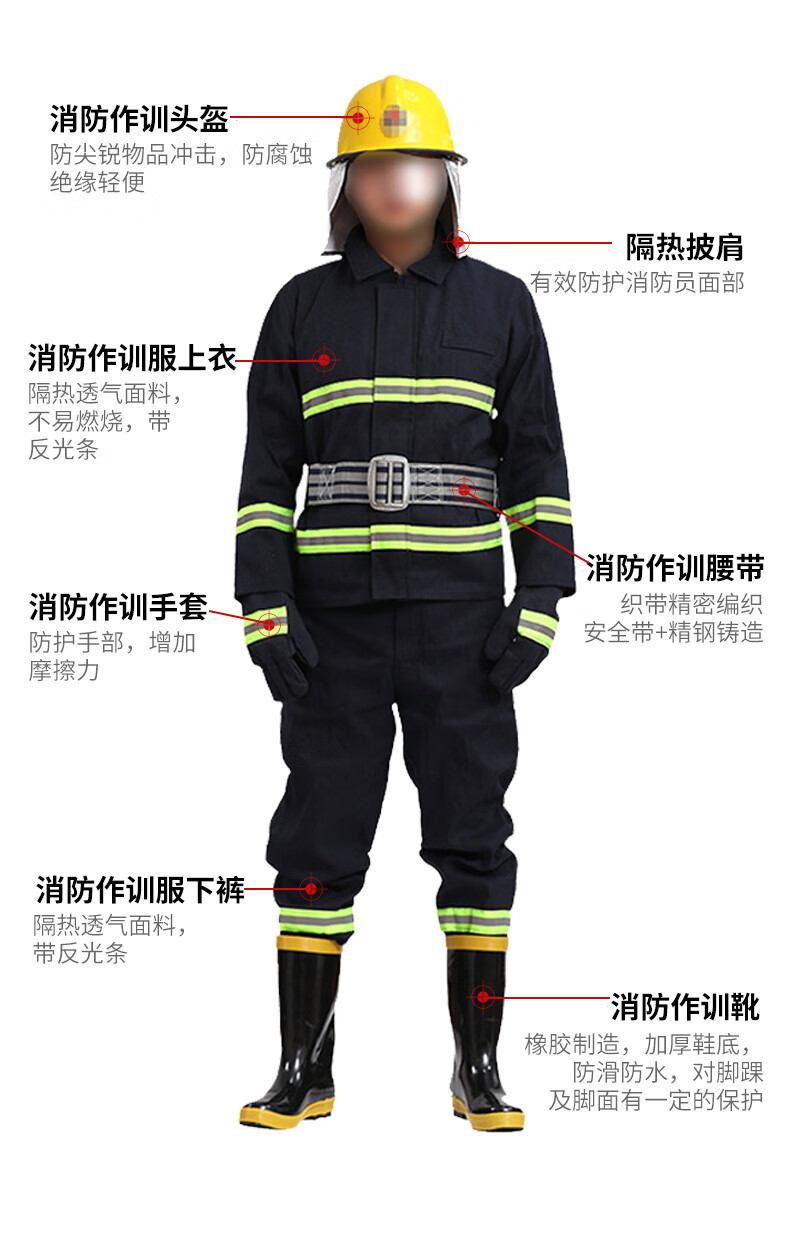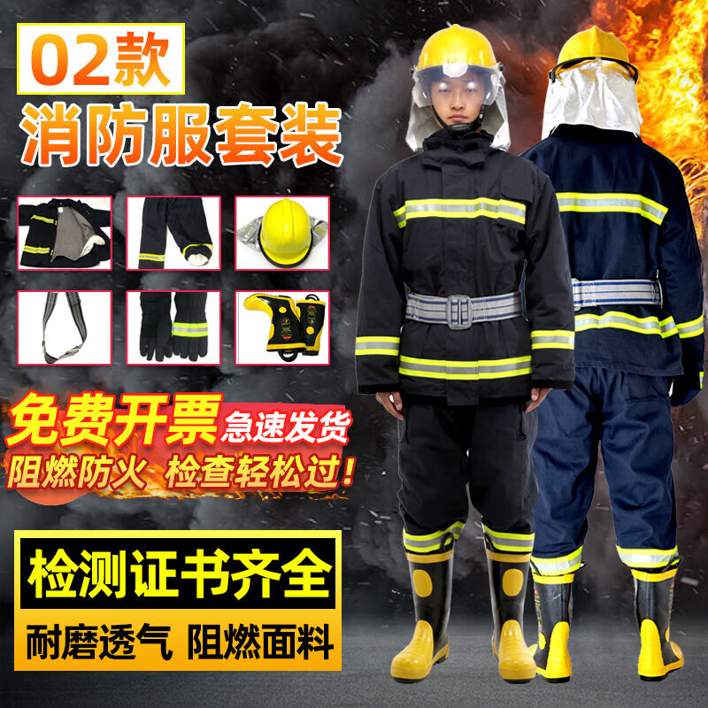鸣固 消防服防火服套装救援服防护盔腰带手套靴六件套02款XXL码