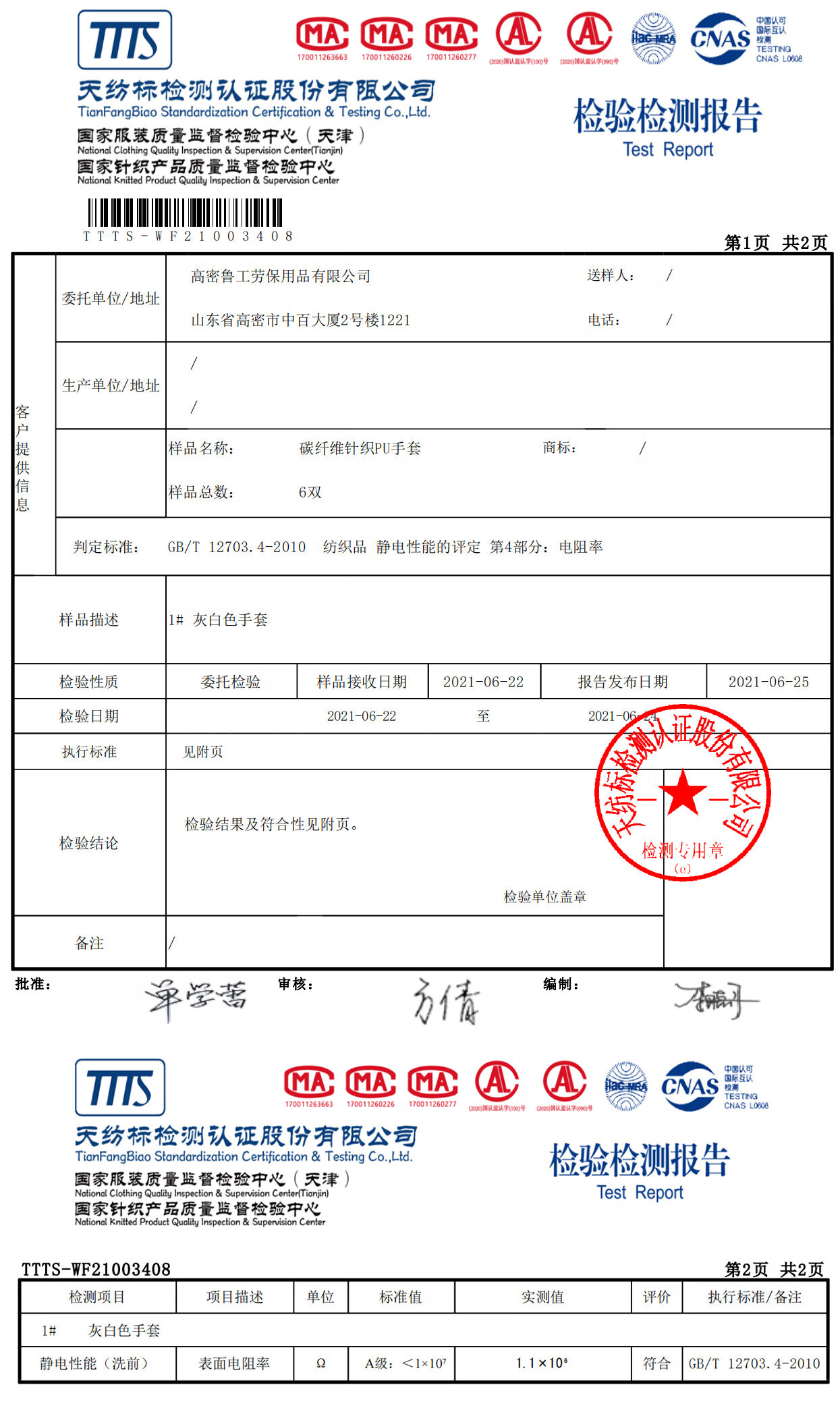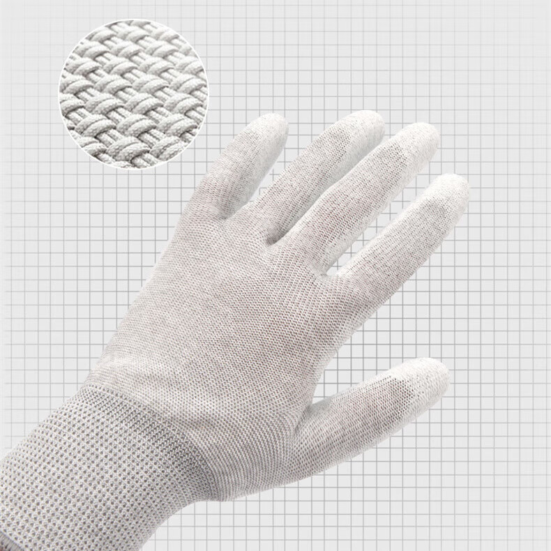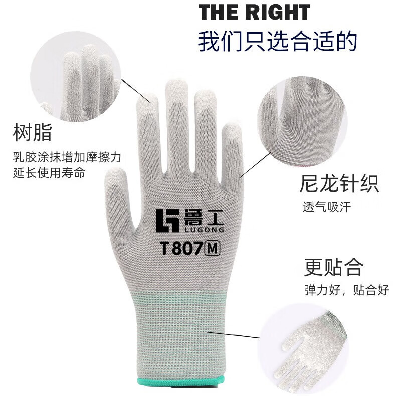 鲁工 防静电手套 碳纤维尼龙PU涂掌 透气耐磨触屏劳保防护 10双 M