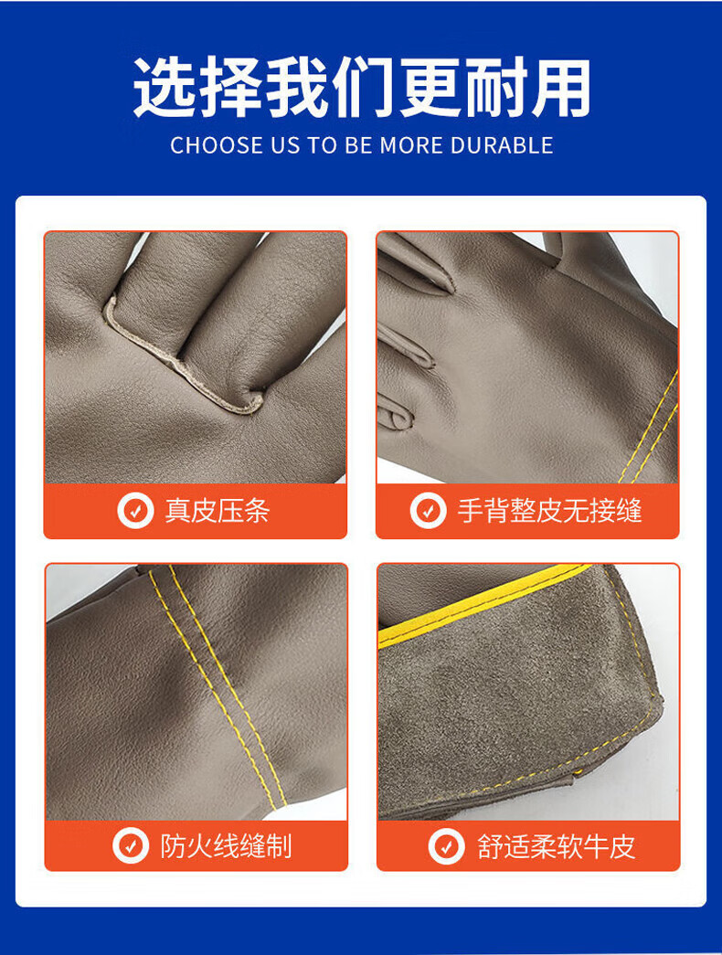 胜丽焊工手套长款牛皮电焊手套加厚耐磨防撕裂隔劳保手套1副