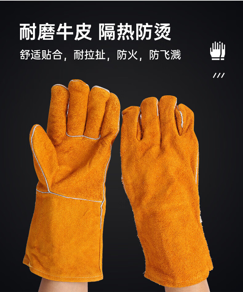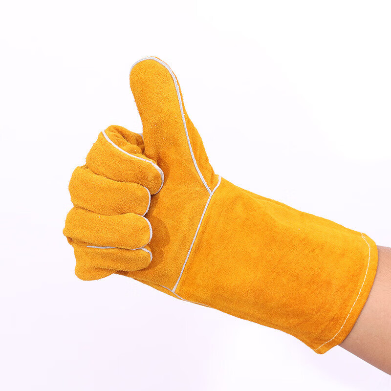 胜丽电焊手套牛皮防烫焊工手套耐磨加长劳保手套黄色1副