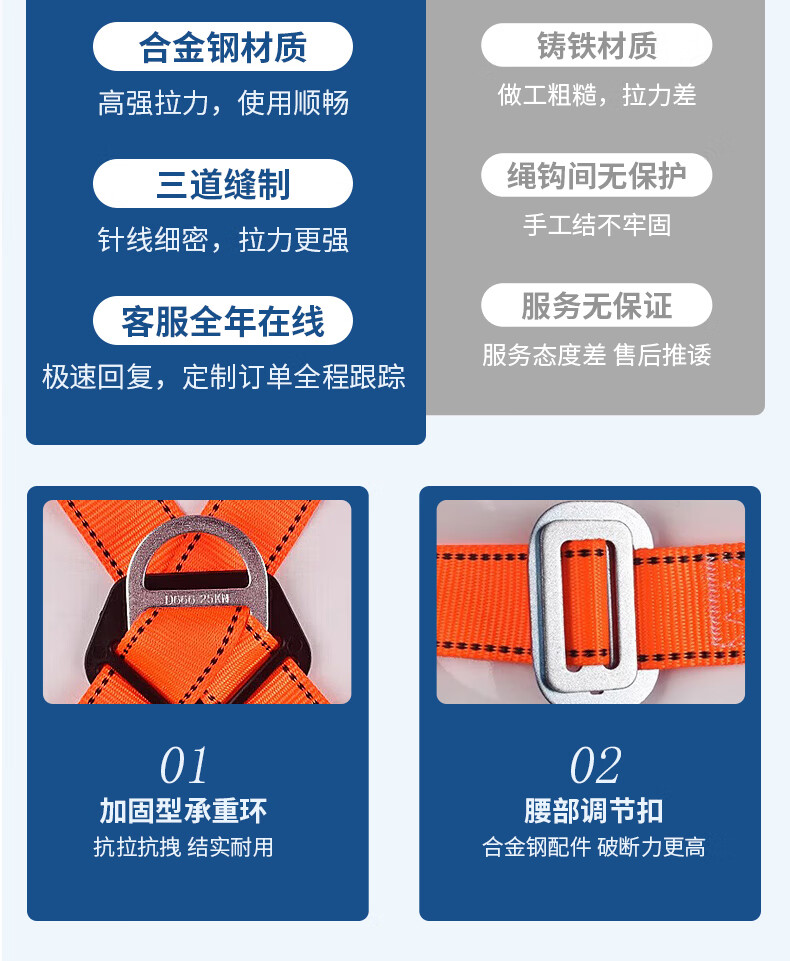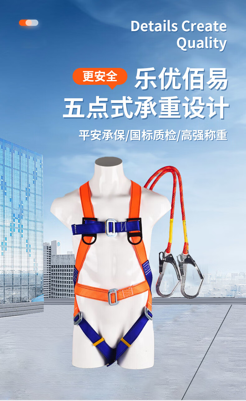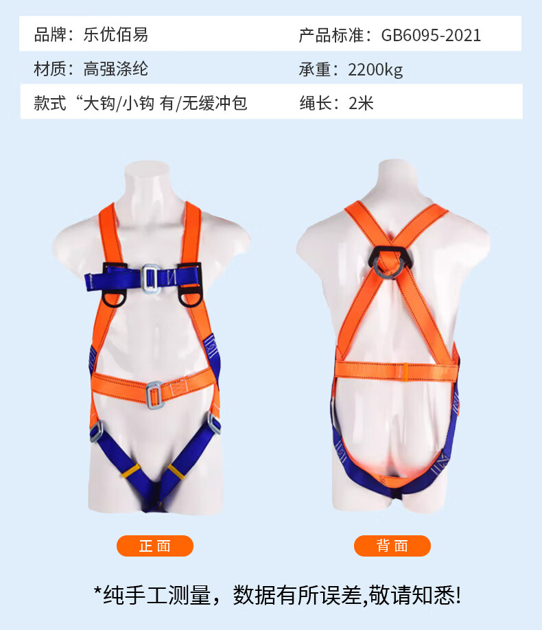 乐优佰易 单腰式安全带 2米大钩 安全绳高空作业施工防坠落