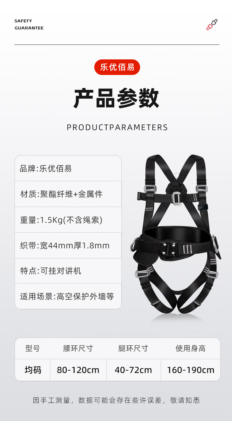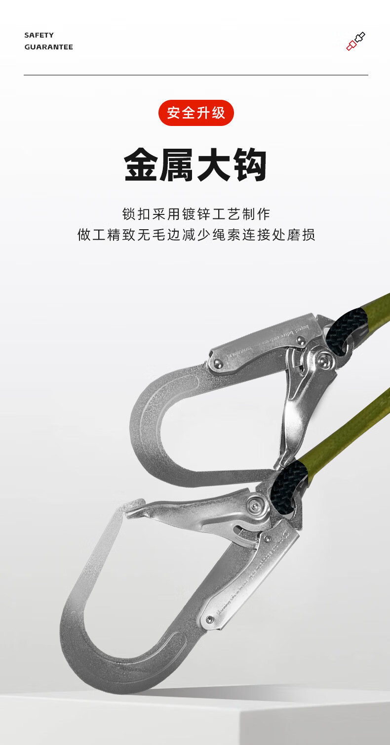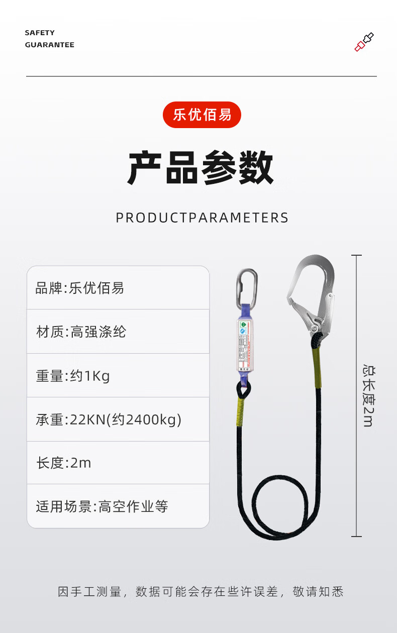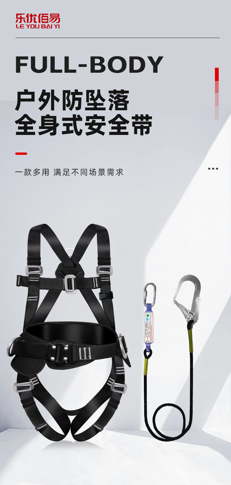 乐优佰易 五点式安全带双大钩加缓冲包2米 高空作业防坠落绳