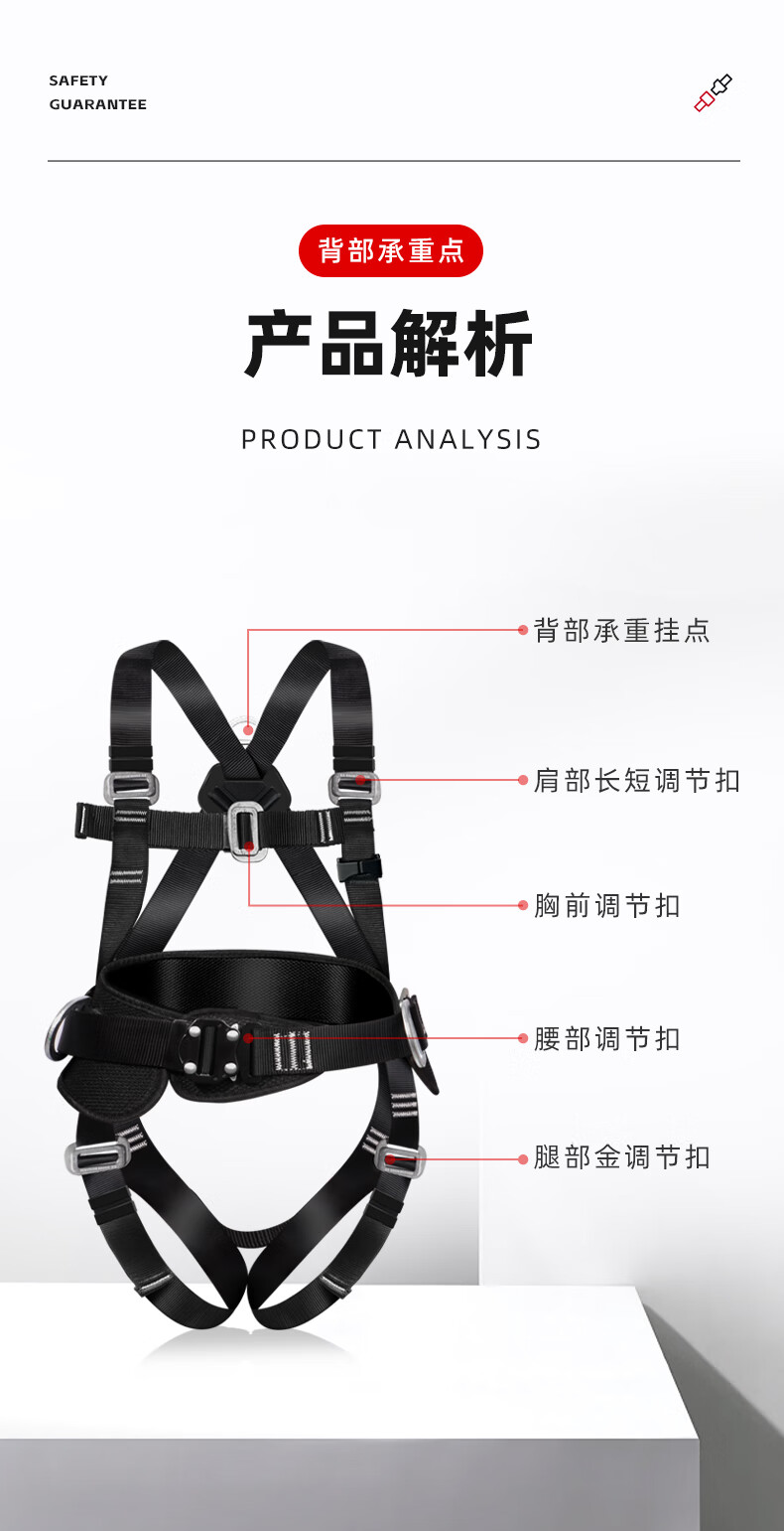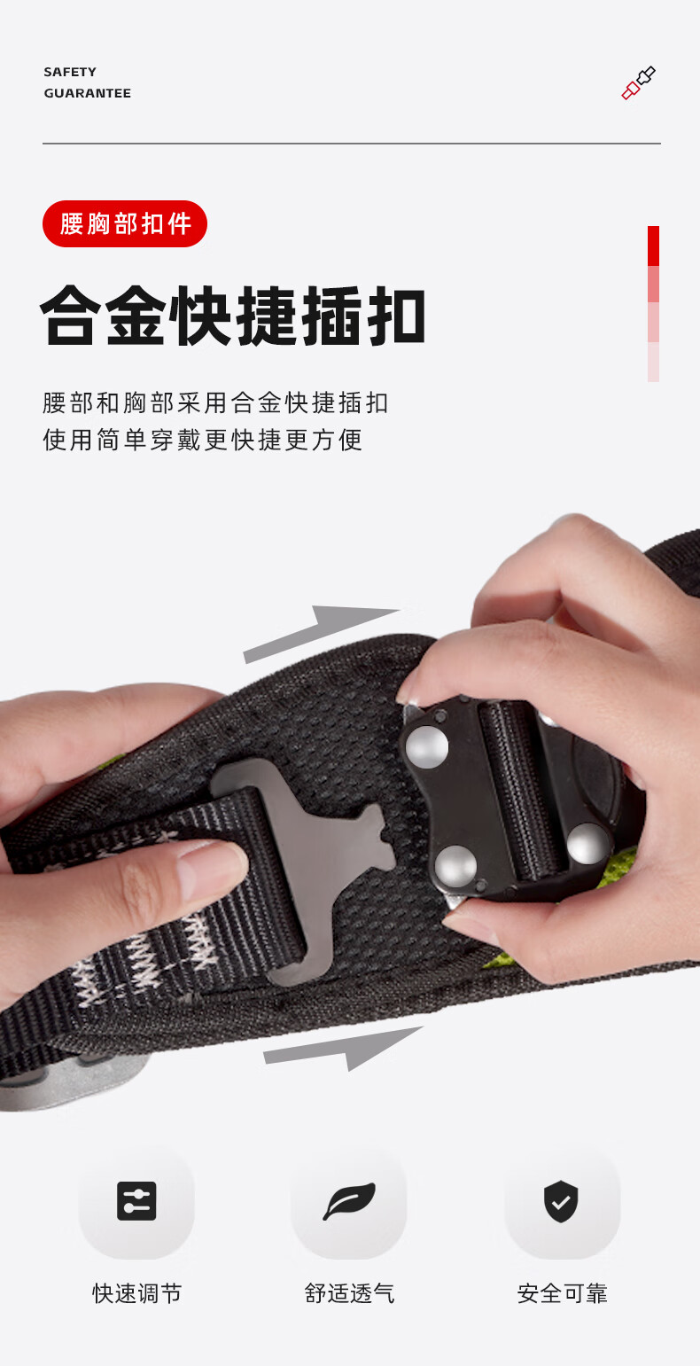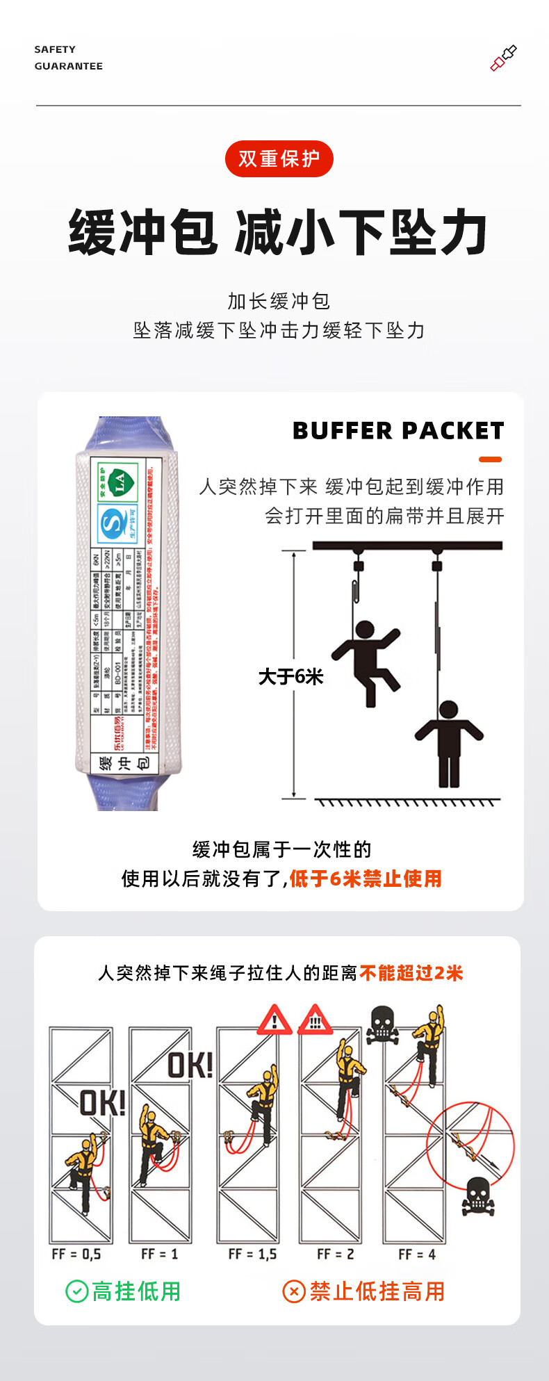 乐优佰易 五点式安全带双大钩加缓冲包2米 高空作业防坠落绳