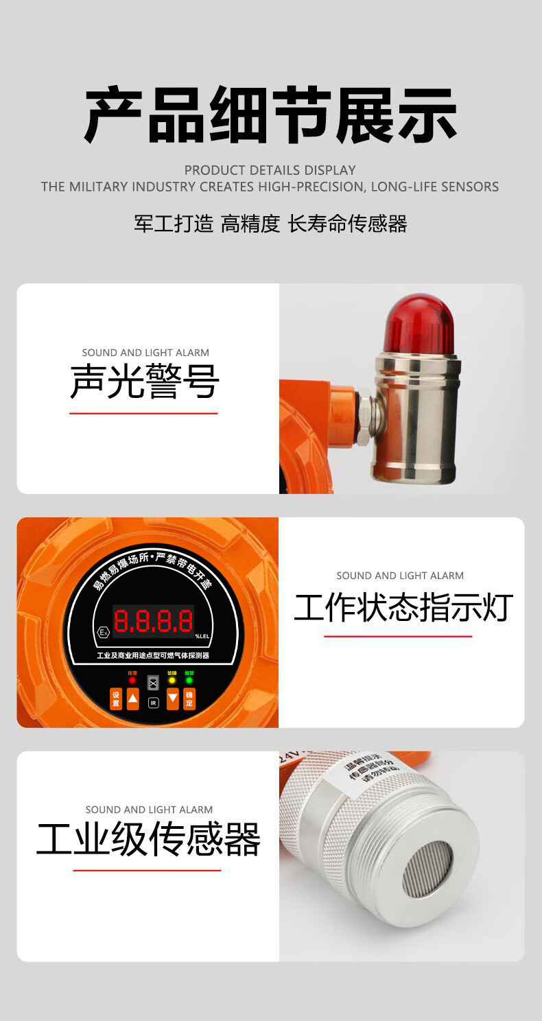 贝海燃气报警器商用型餐饮煤气液化气丙烷饭店可燃气体报警装置PLT219