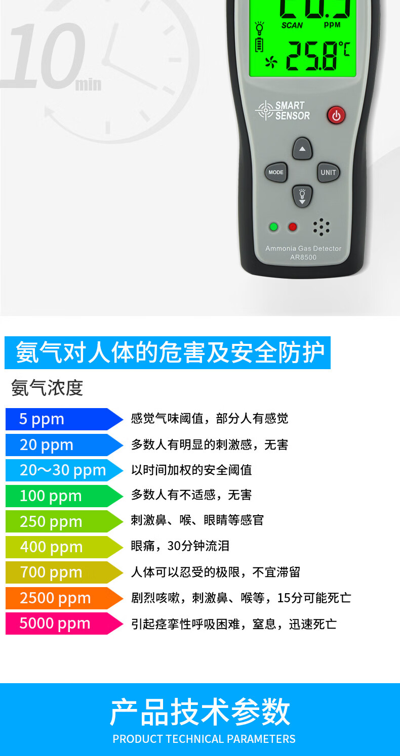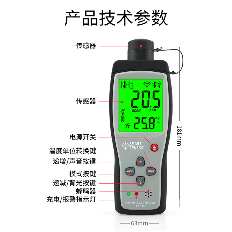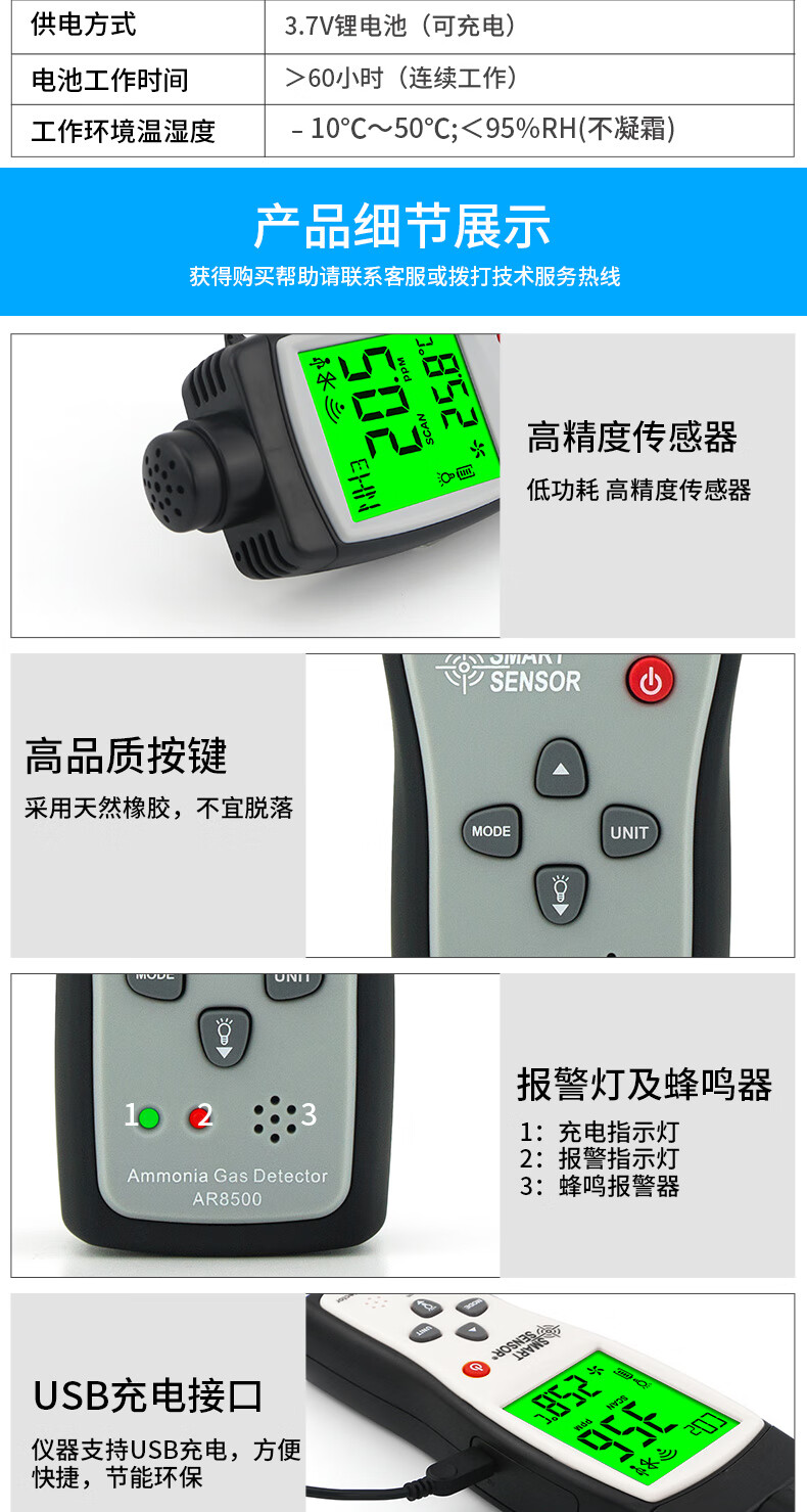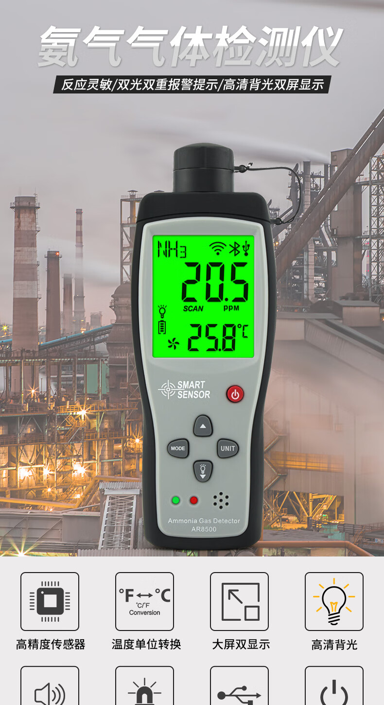 希玛AR8500 氨气气体便携式检测仪氨气NH3气体检漏仪报警器