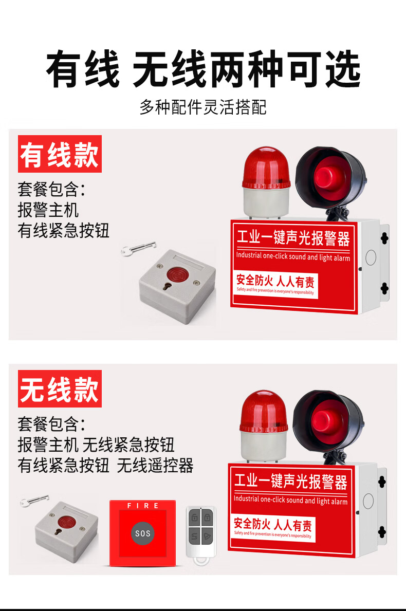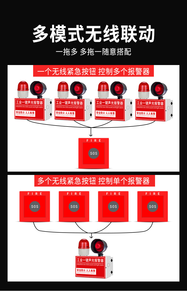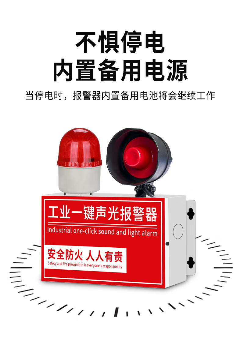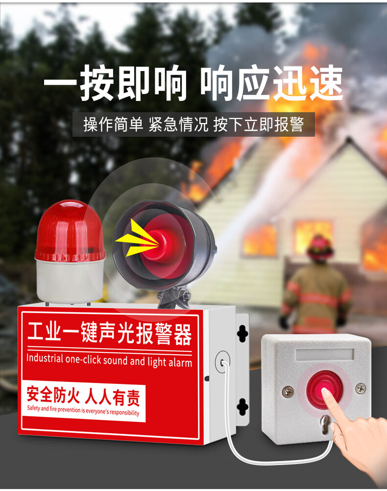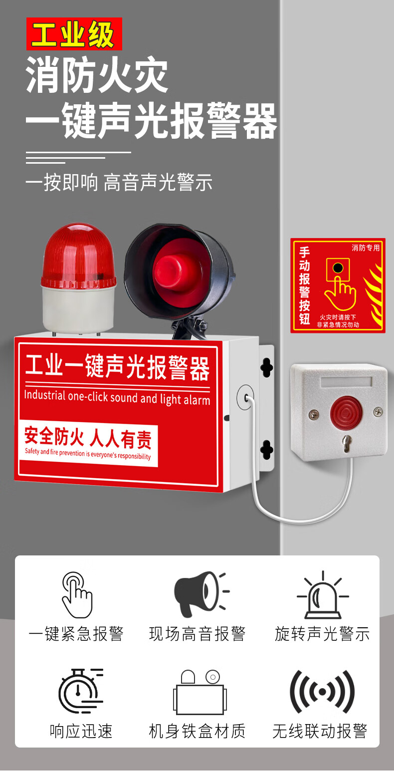 派朗尼斯 工业一键消防声光式报警器火灾验厂逃生警铃广播疏散装置含备电