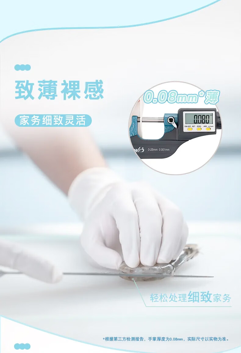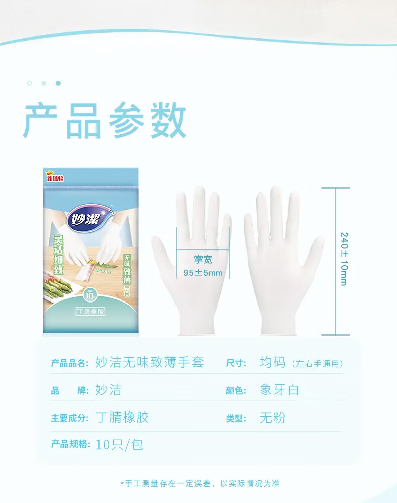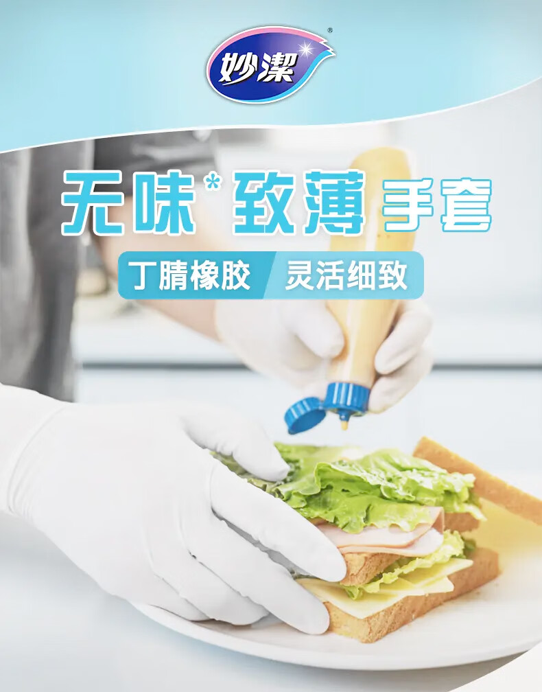 妙洁 无味致薄一次性手套 丁腈 薄型 10只*1包