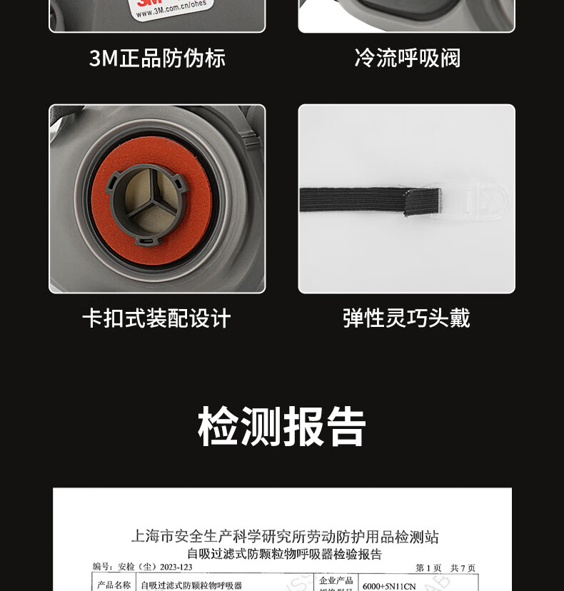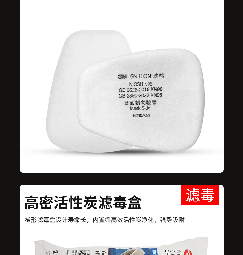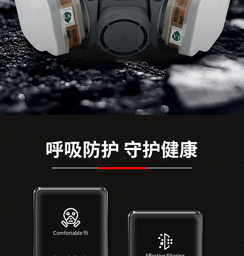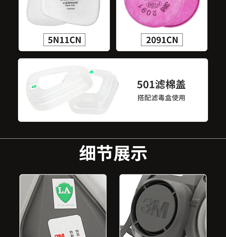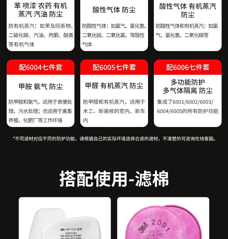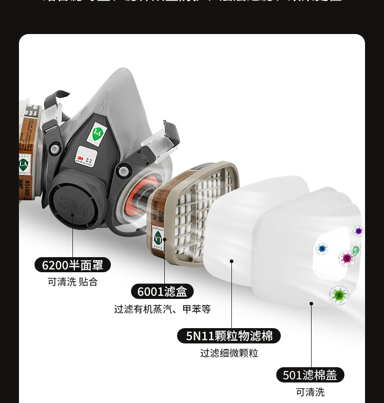 3M防毒面具喷漆防尘防有机气体防毒面罩面具套装(6200+6001 七件套)