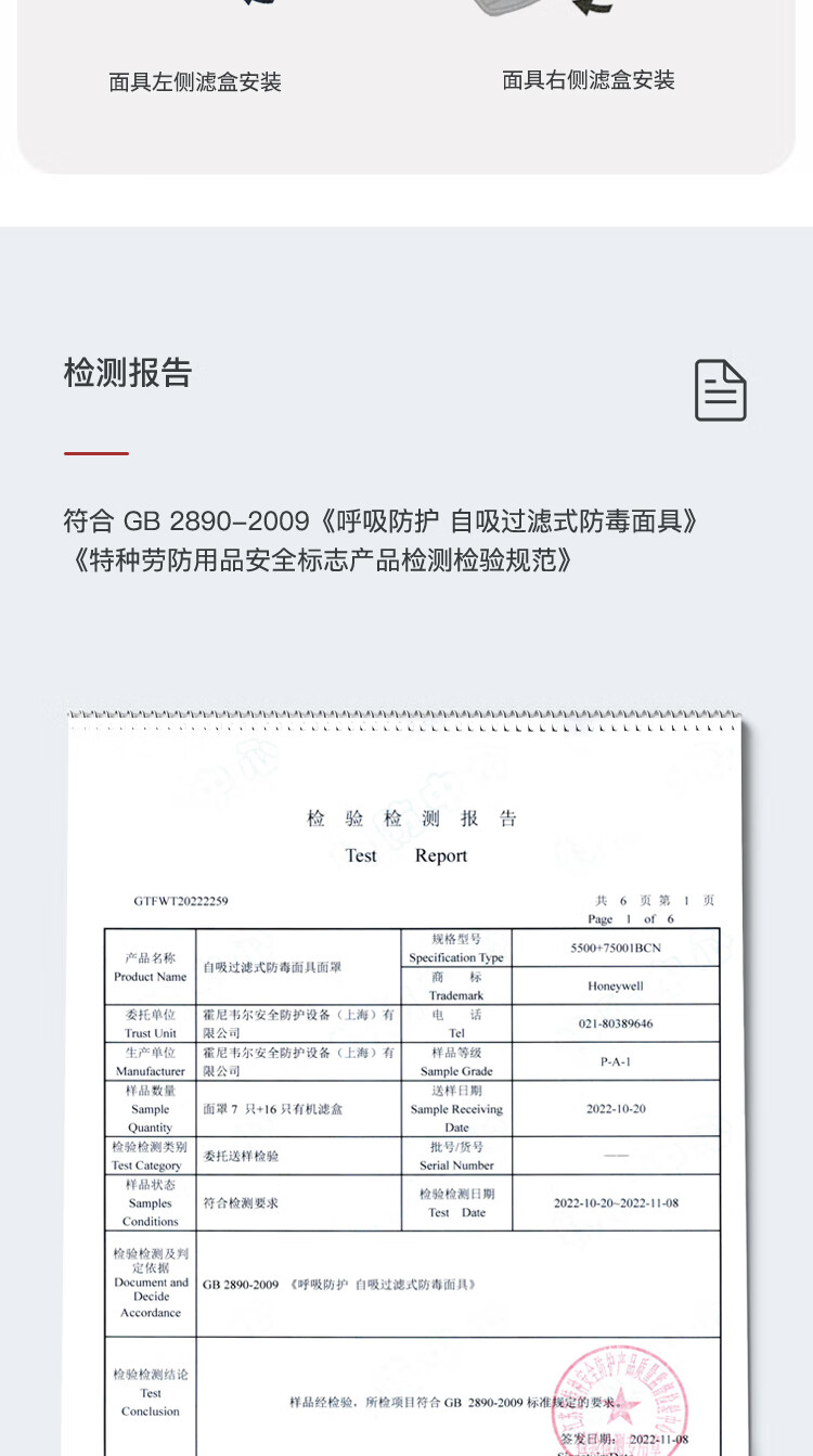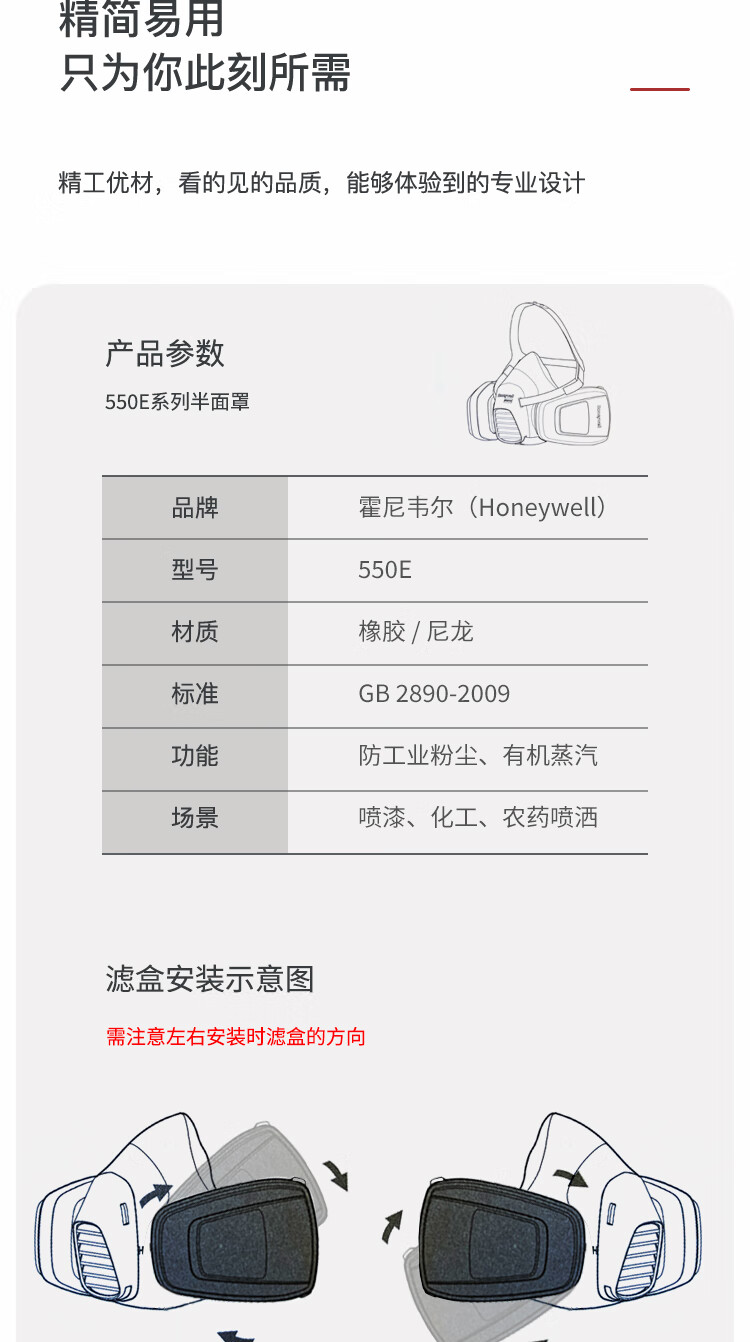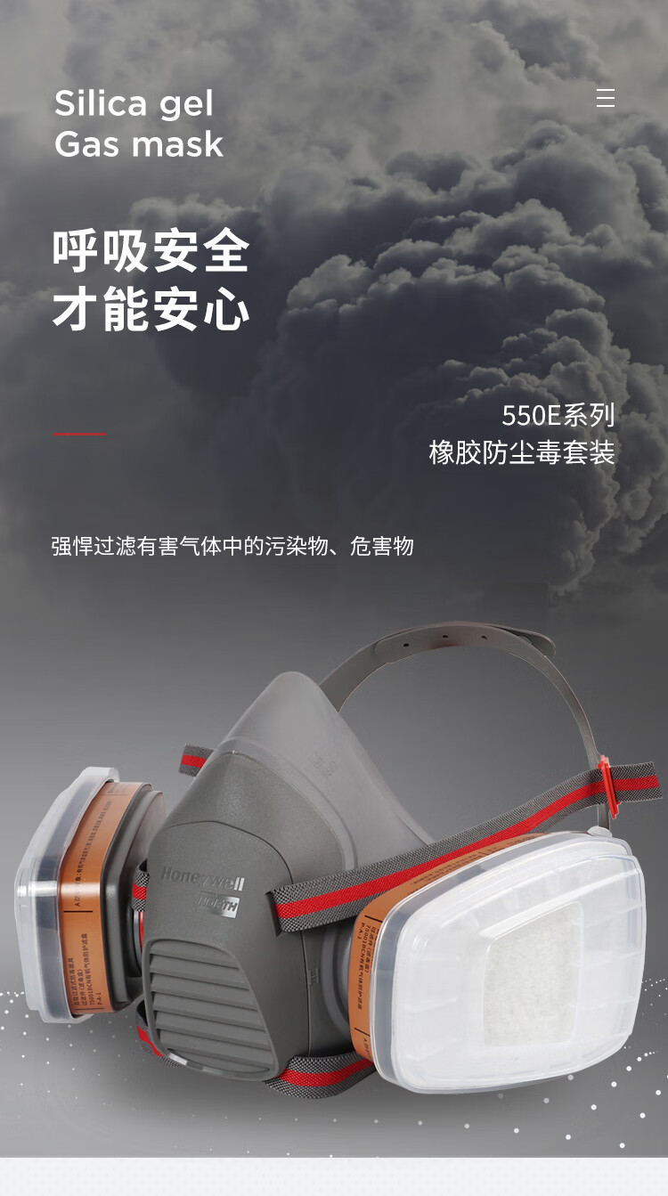 霍尼韦尔 防毒面具 kn95防有机蒸汽工业粉尘PM2.5雾霾 呼吸防护套装550E