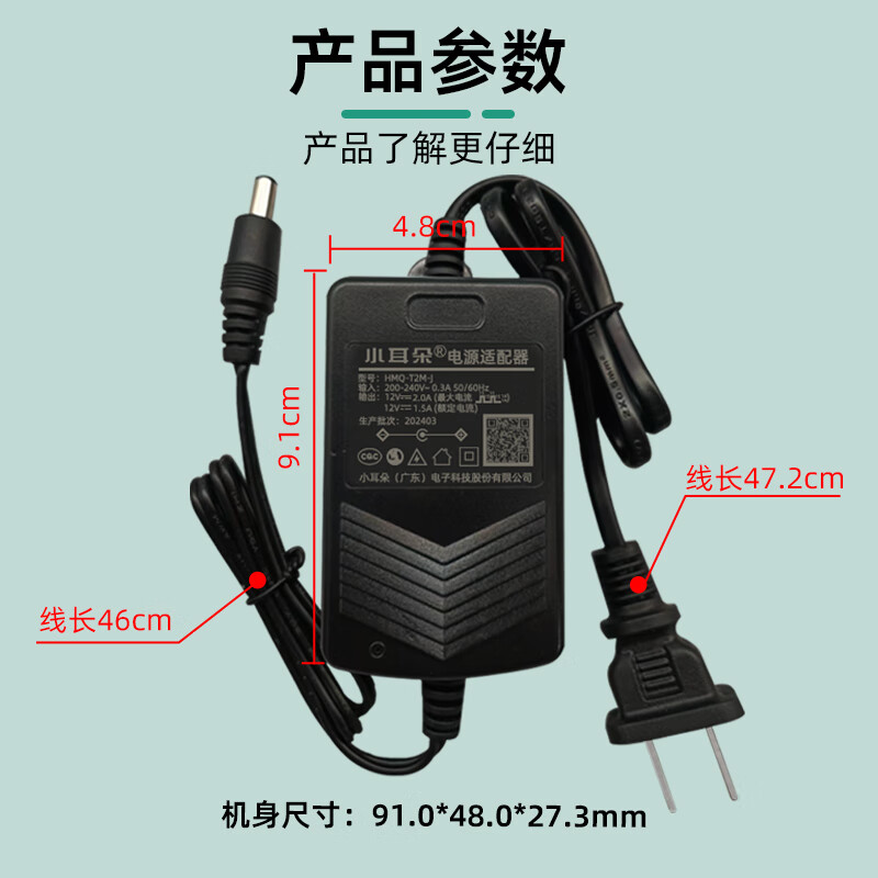 小耳朵 电源适配器 DC12V2A海康大华摄像头供电通用 室内安防监控黑色HMQ-T2M-J