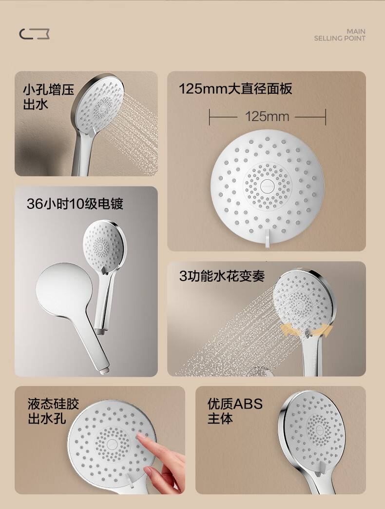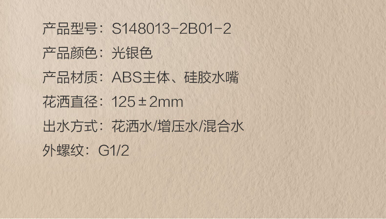 九牧(JOMOO)花洒喷头大面板三功能双增压富氧手持花洒S148013