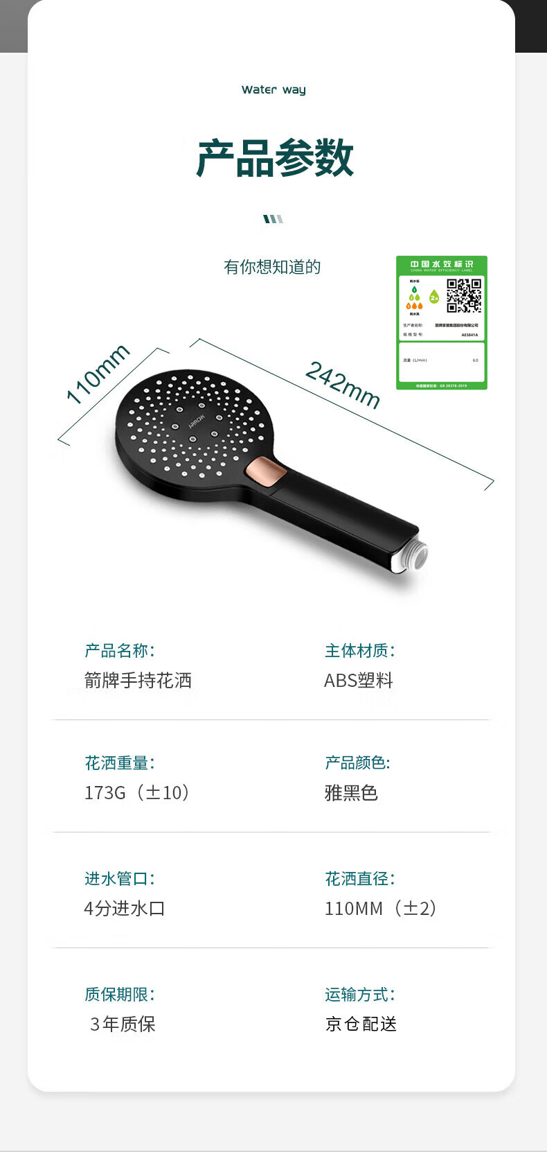 箭牌(ARROW)淋浴花洒头喷头洗浴淋雨卫浴大花洒喷头AE5841A