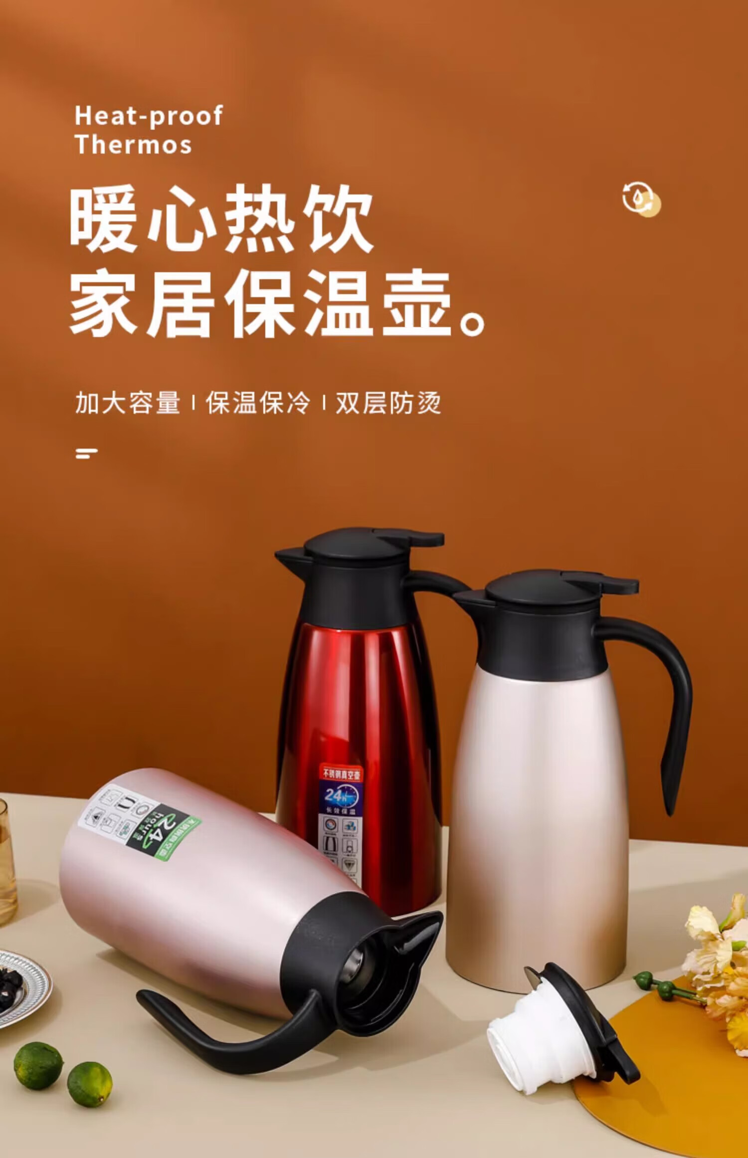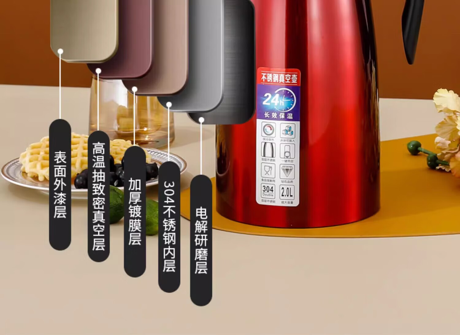 蔚毅 304不锈钢保温壶商用暖水壶酒店餐厅茶楼水壶热水瓶 2L本色