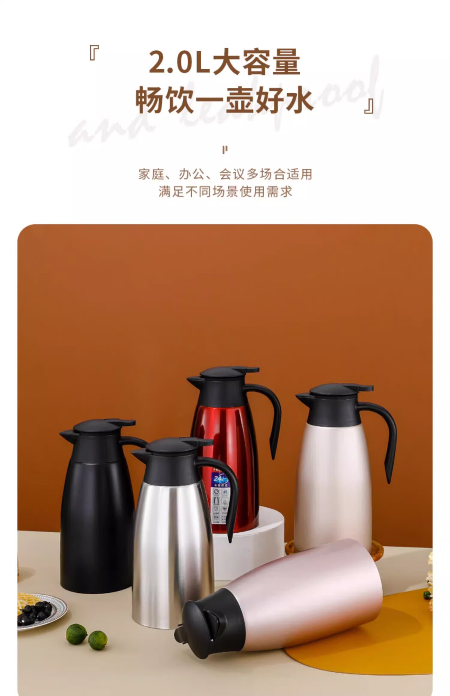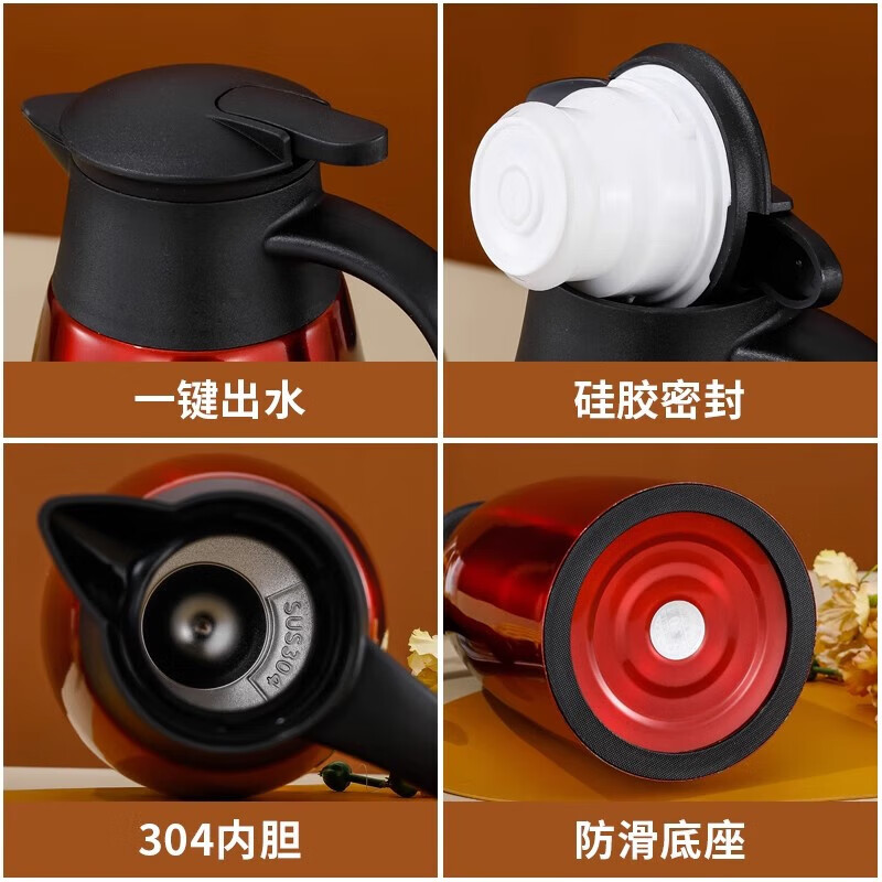 蔚毅 304不锈钢保温壶商用暖水壶酒店餐厅茶楼水壶热水瓶 2L红色