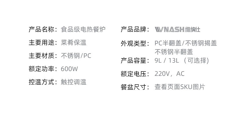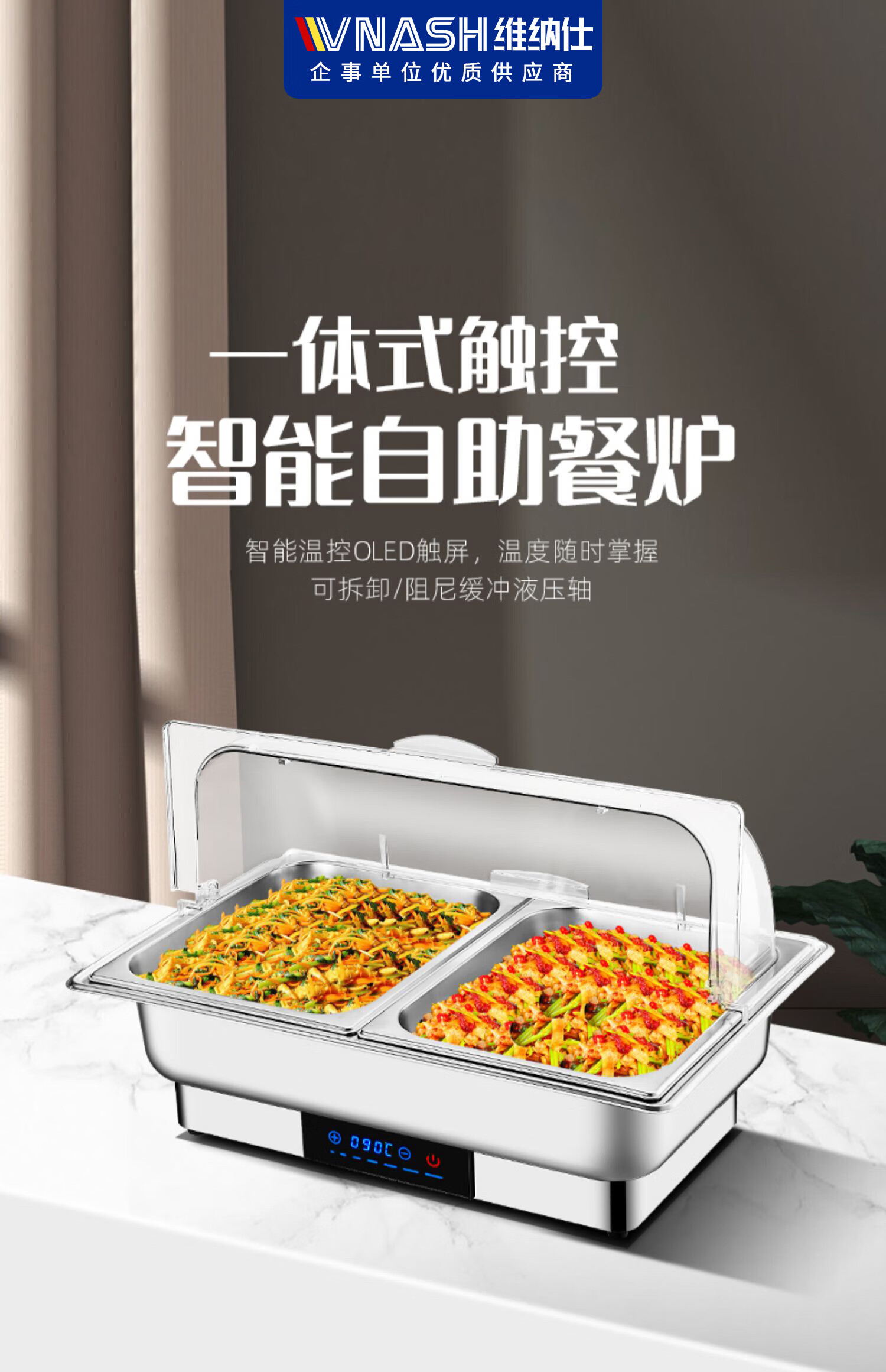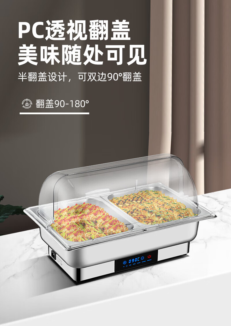 维纳仕不锈钢自助餐炉数显调温透明罩全钢盖布菲炉电加热保温炉