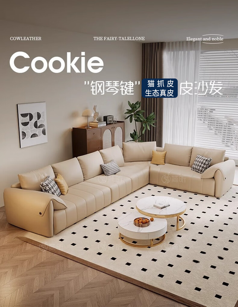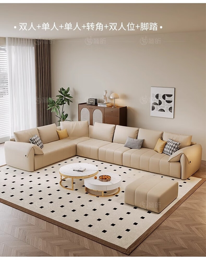 简昕真皮沙发客厅2025新款中小户型转角沙发现代简约皮艺沙发827