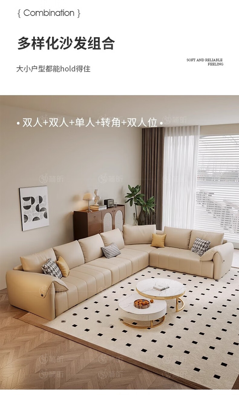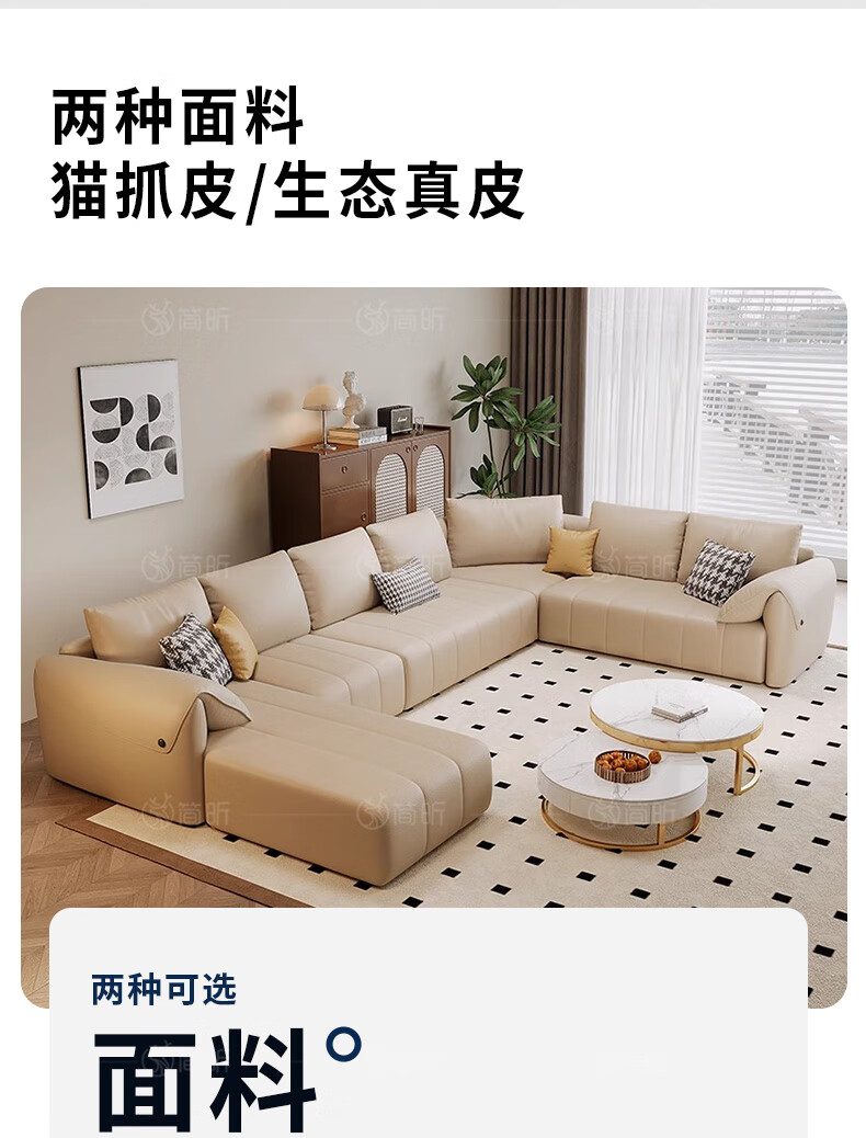 简昕真皮沙发客厅2025新款中小户型转角沙发现代简约皮艺沙发827