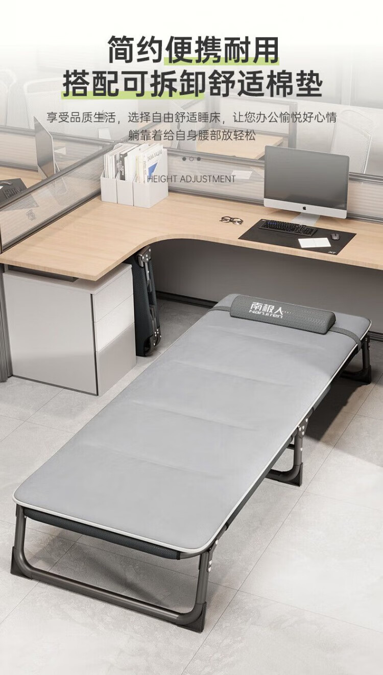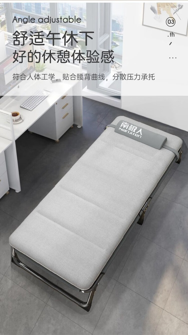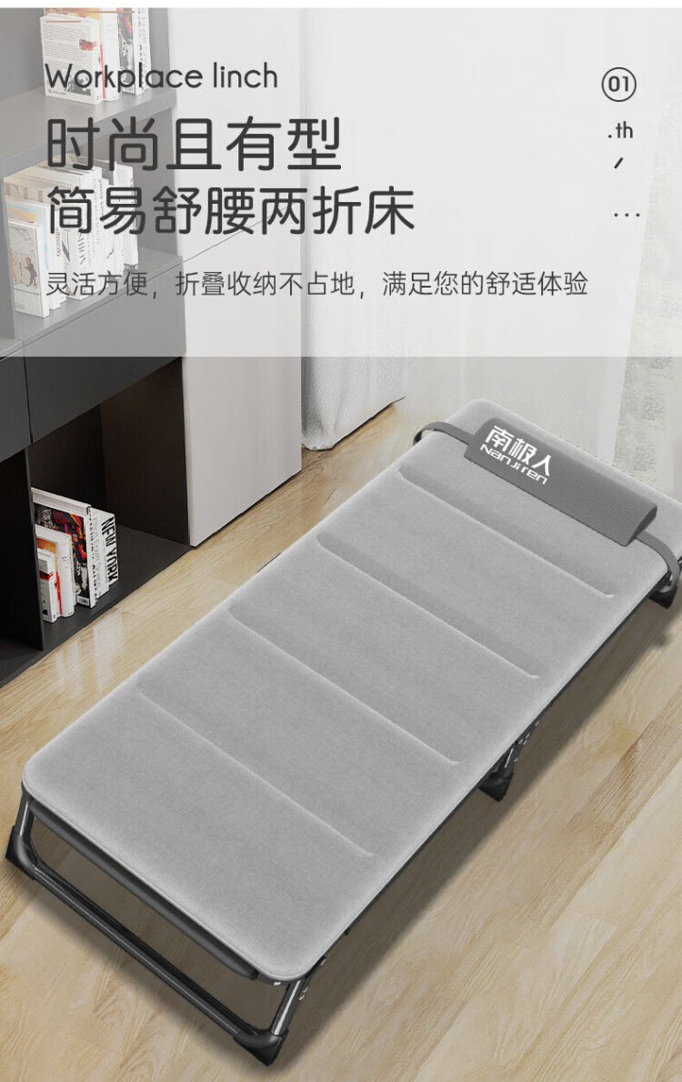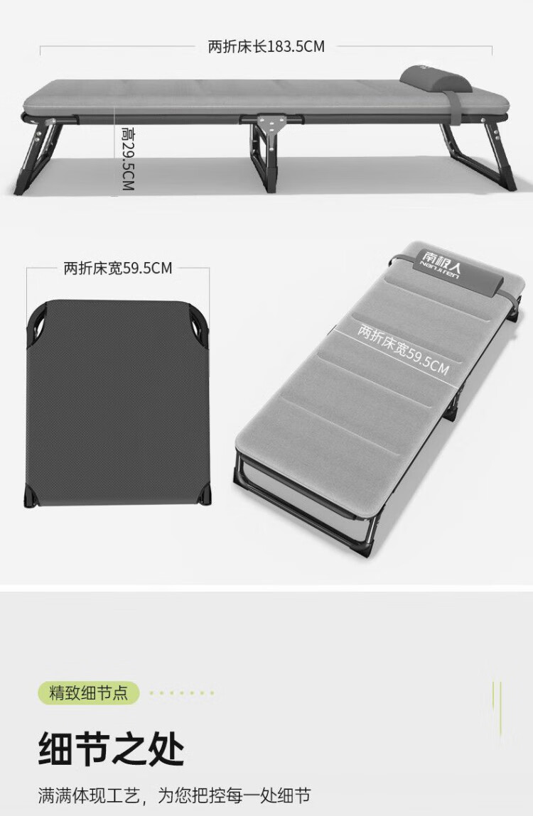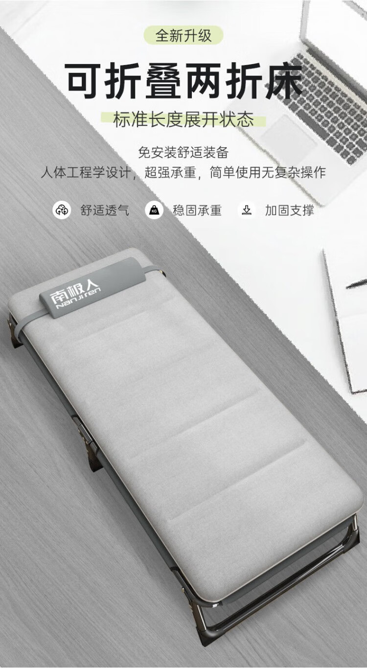 南极人(Nanjiren)午休折叠床单人床家用便携陪护躺椅办公室午睡行军床成人 加粗加固两折床-黑色+透气垫黑