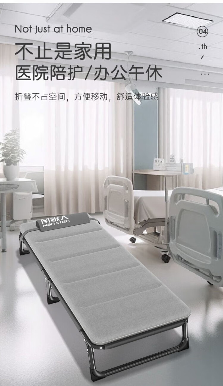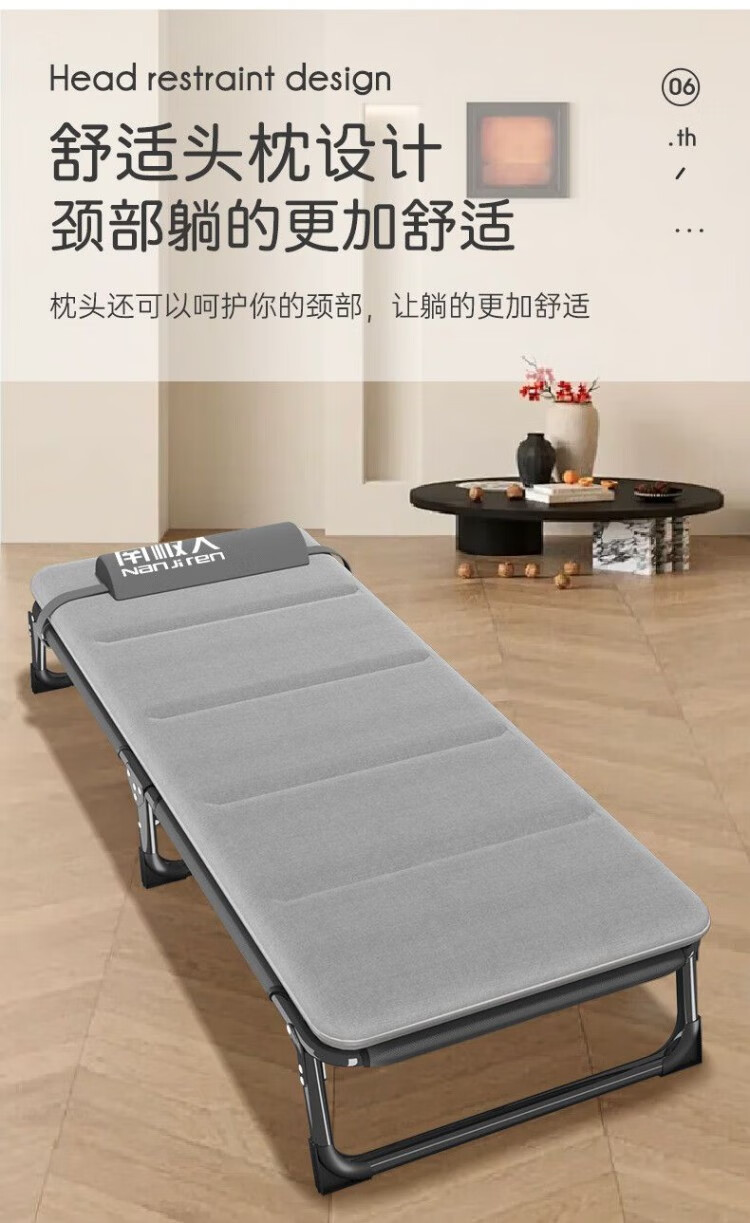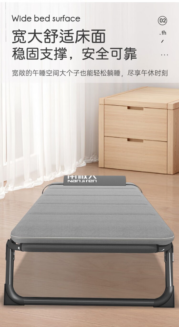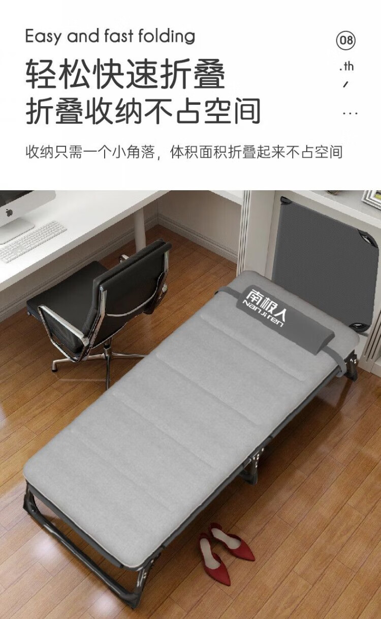南极人(Nanjiren)午休折叠床单人床家用便携陪护躺椅办公室午睡行军床成人 加粗加固两折床-黑色+透气垫黑