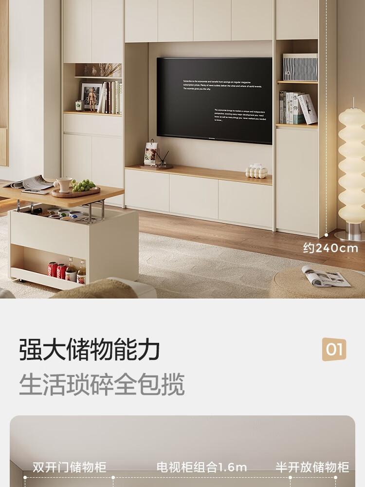 林氏家居落地电视机柜收纳储物柜一体客厅家用地柜组合柜UT1M