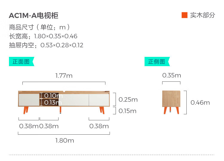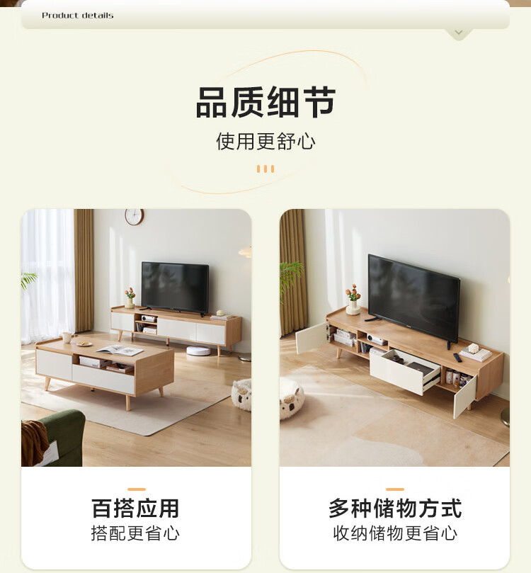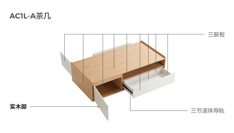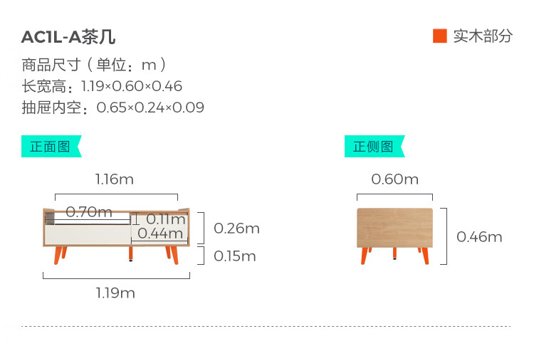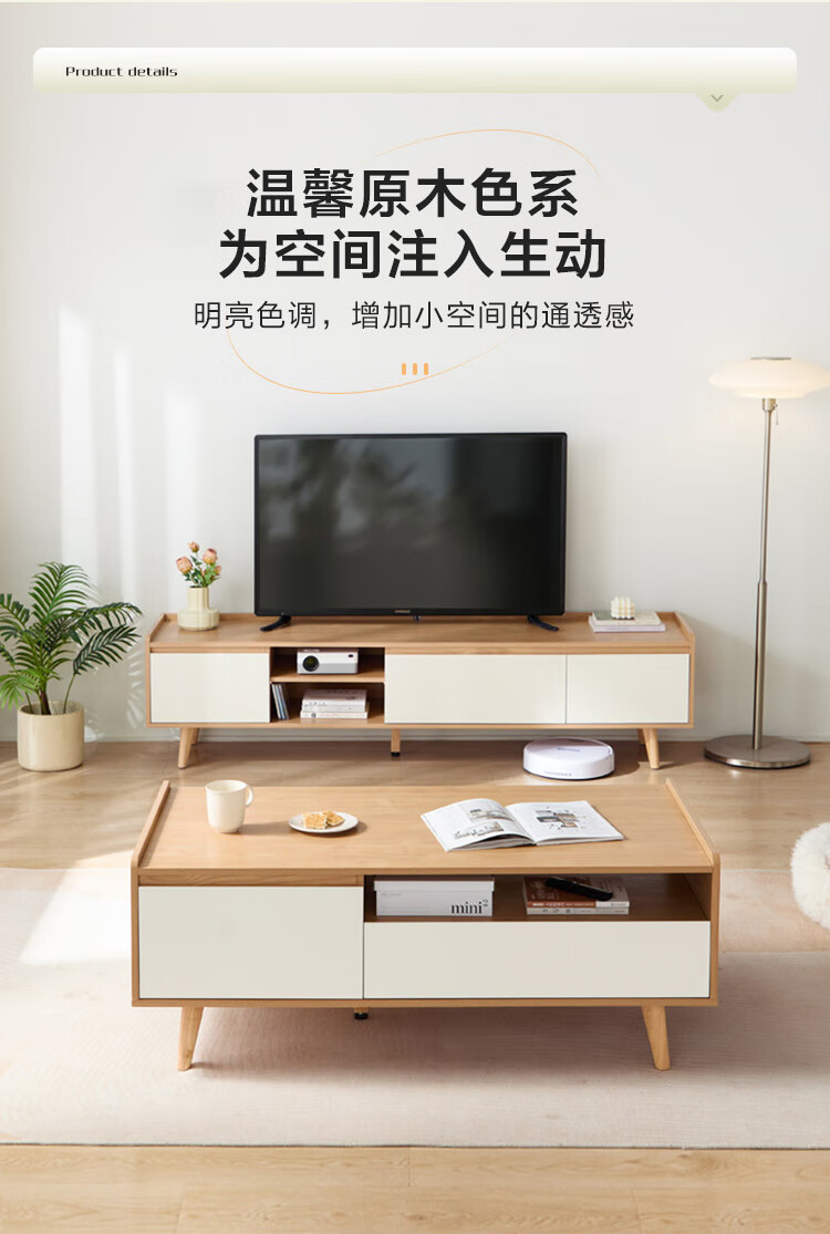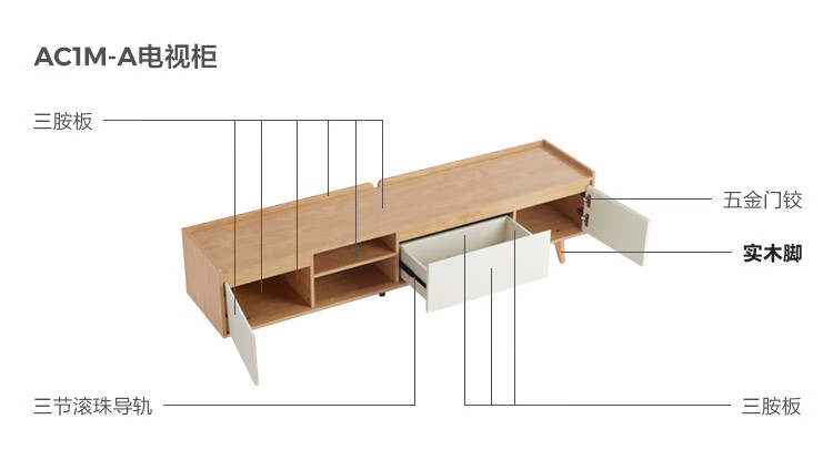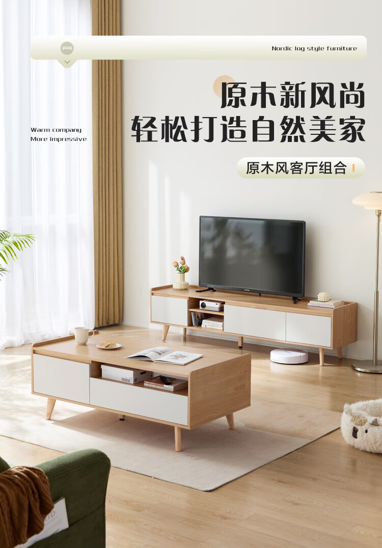 林氏家居原木风电视柜茶几客厅家用【原木色+白色】AC1M电视柜