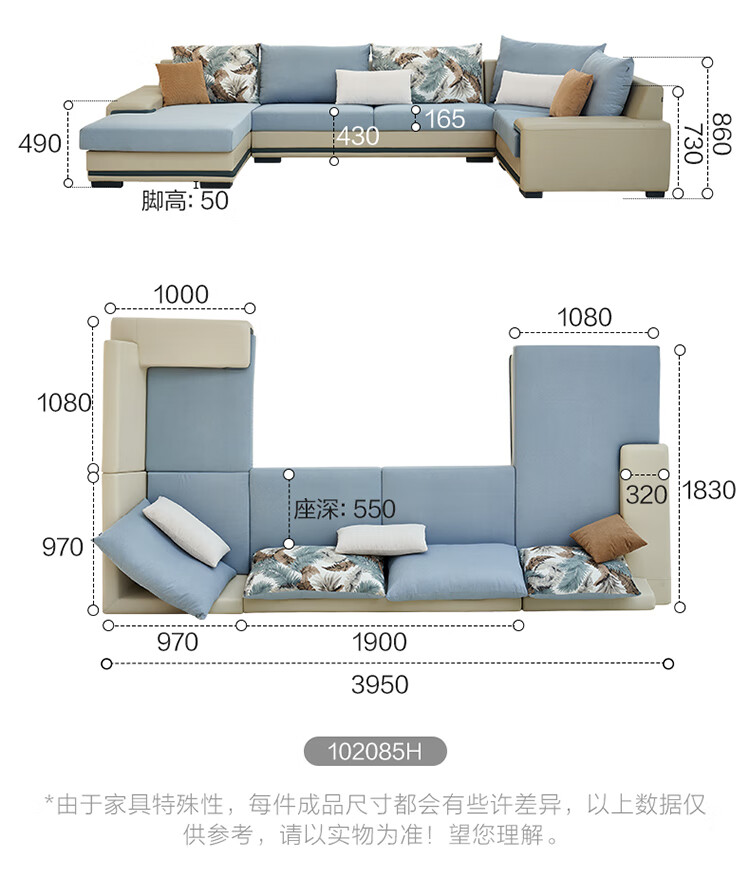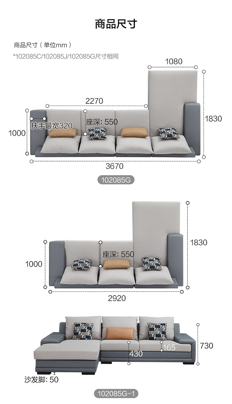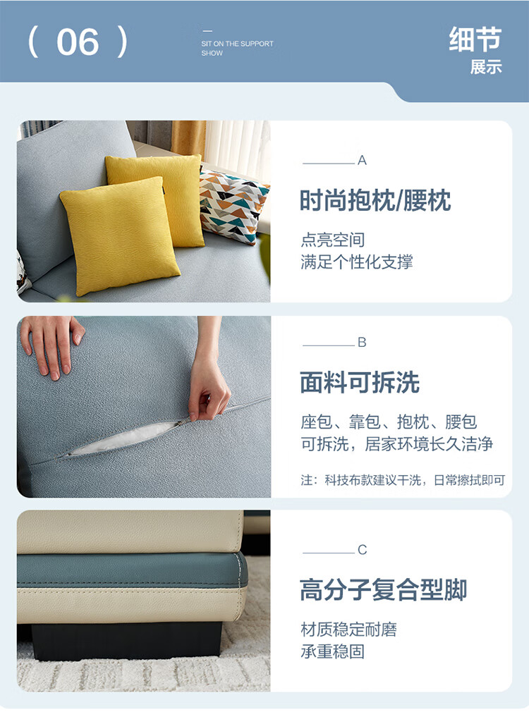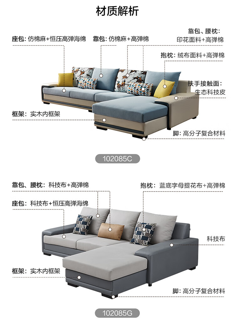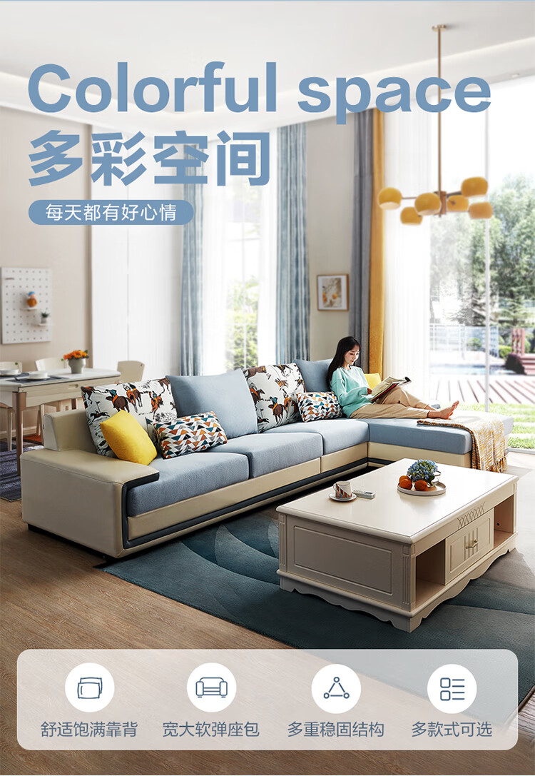 全友家居 客厅布艺沙发现代简约北欧家用贵妃科技布沙发家具