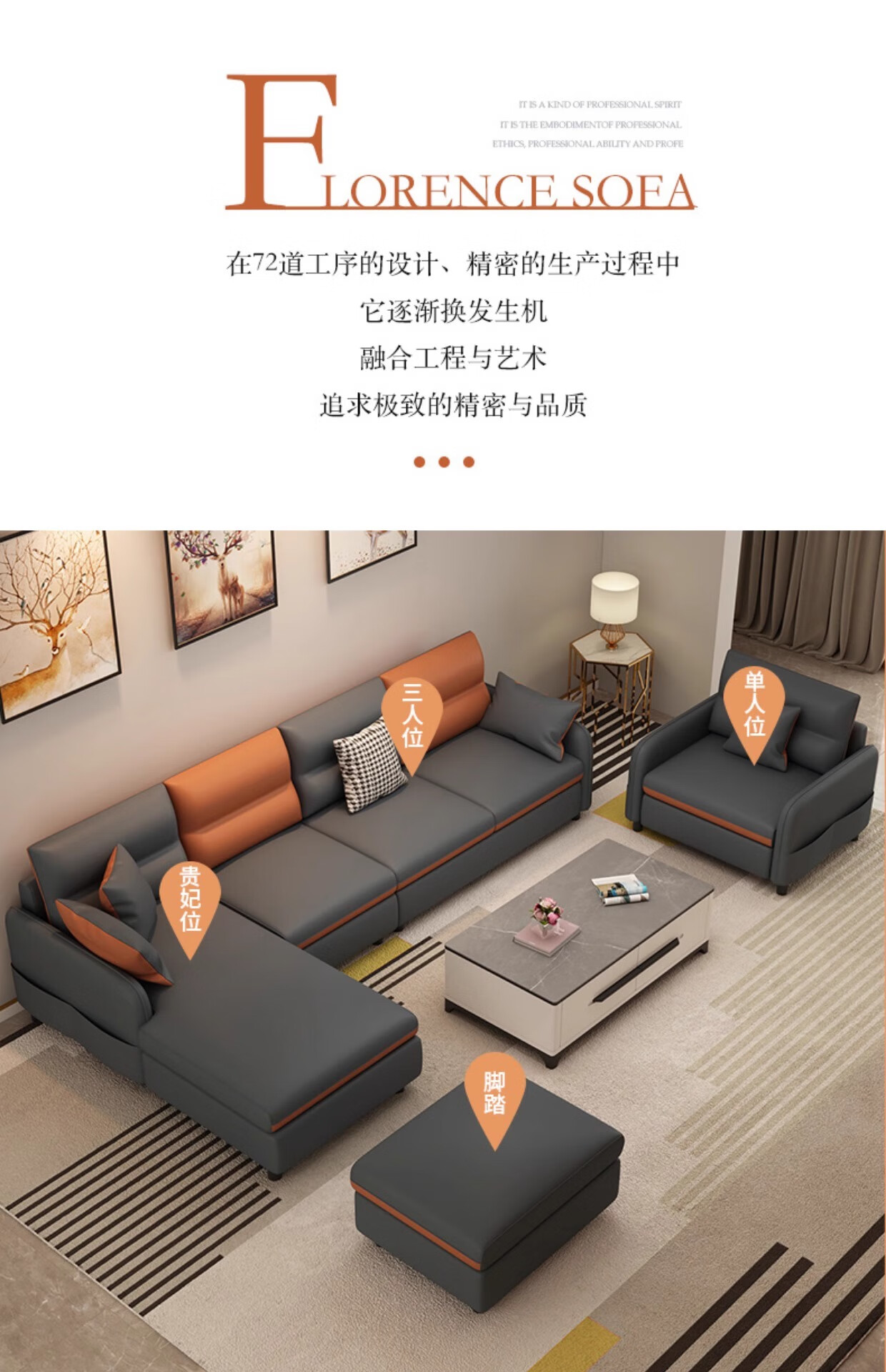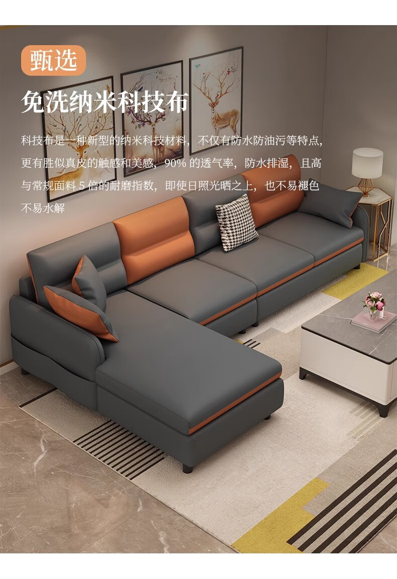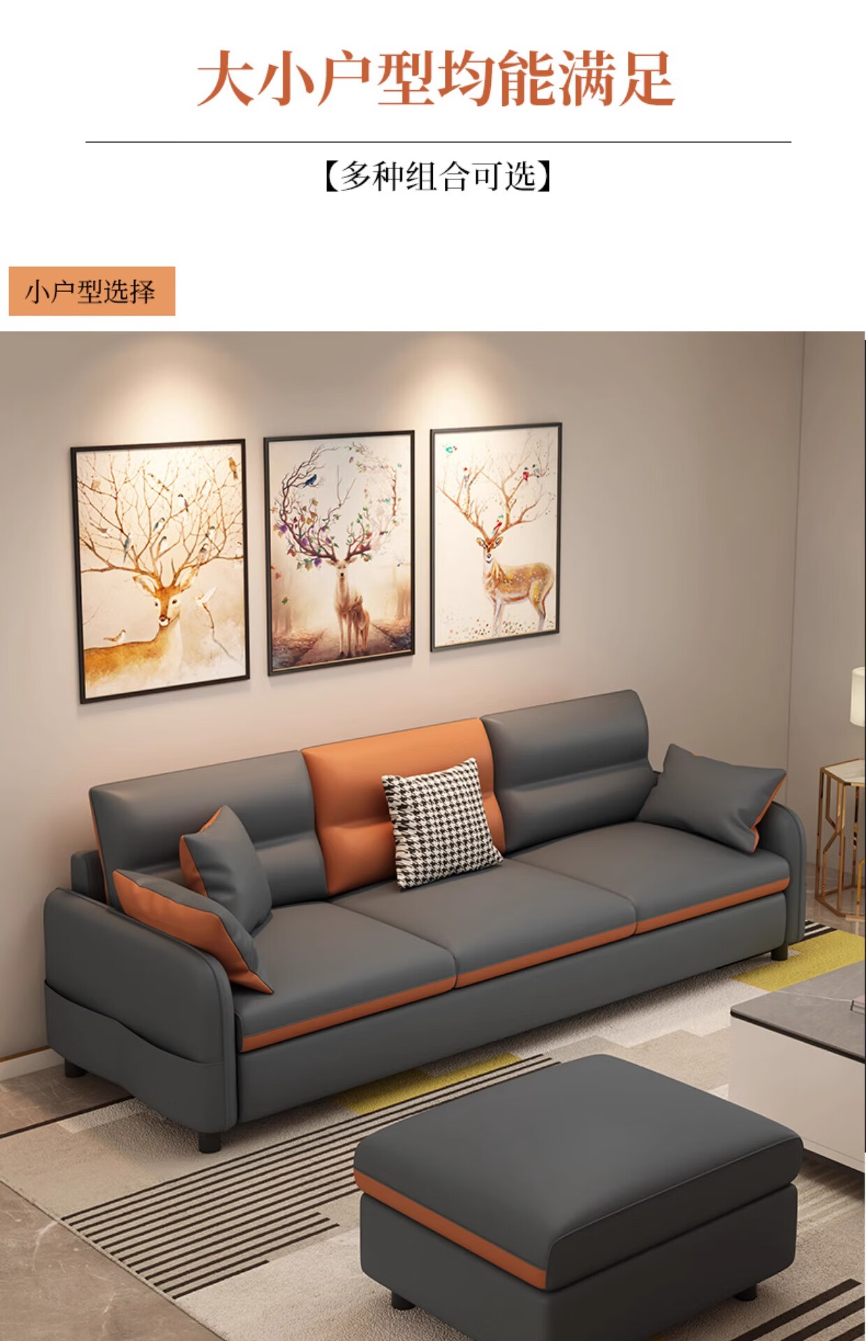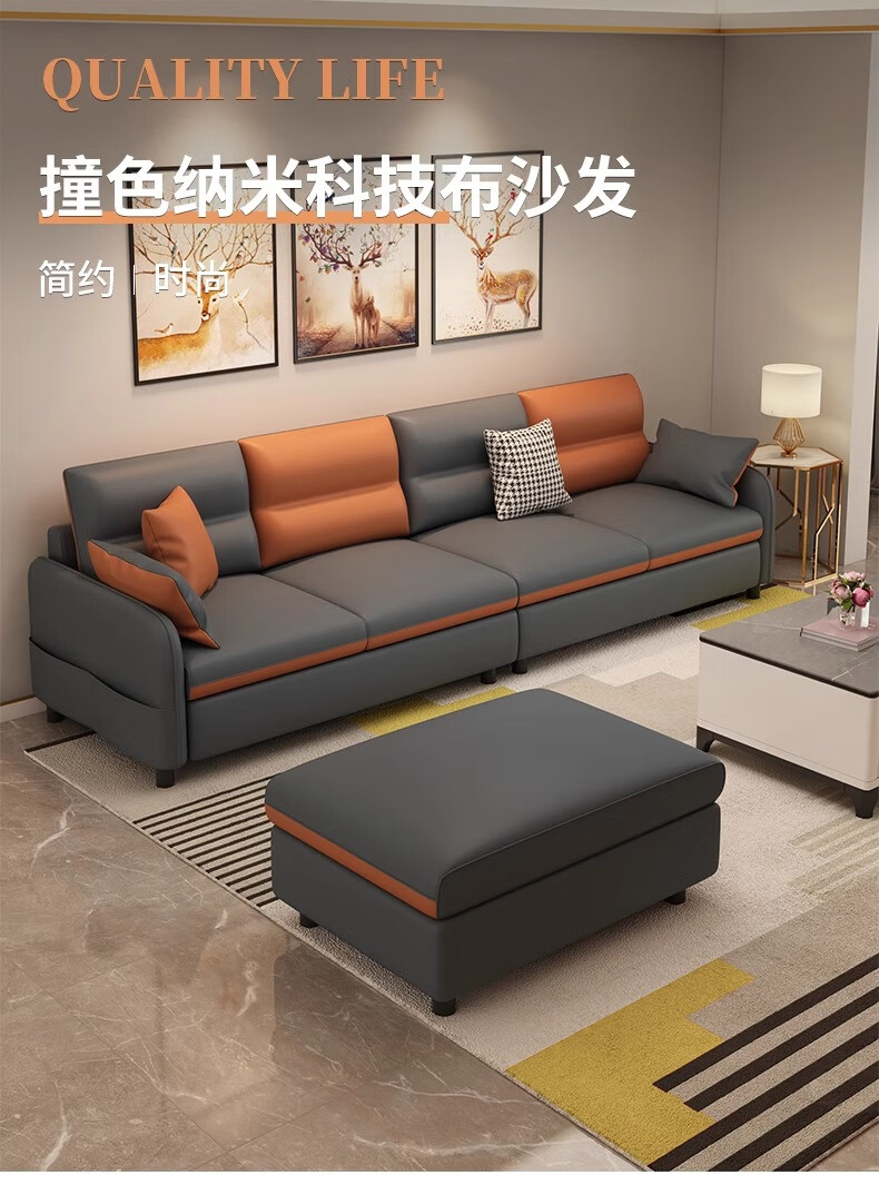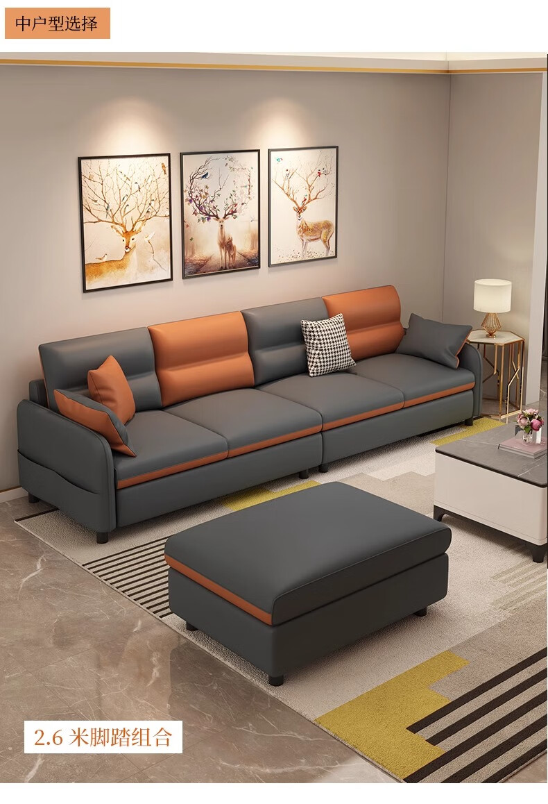 沐眠意式布艺沙发客厅大小户型现代简约免洗科技布SF-8826 脚踏