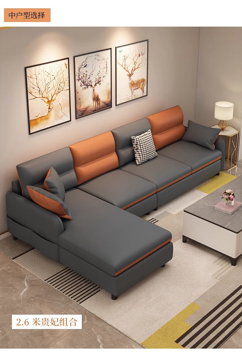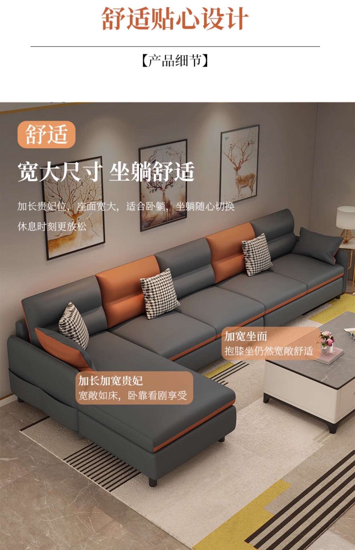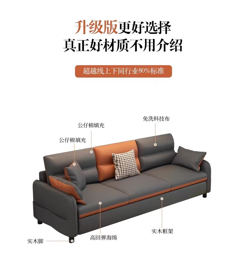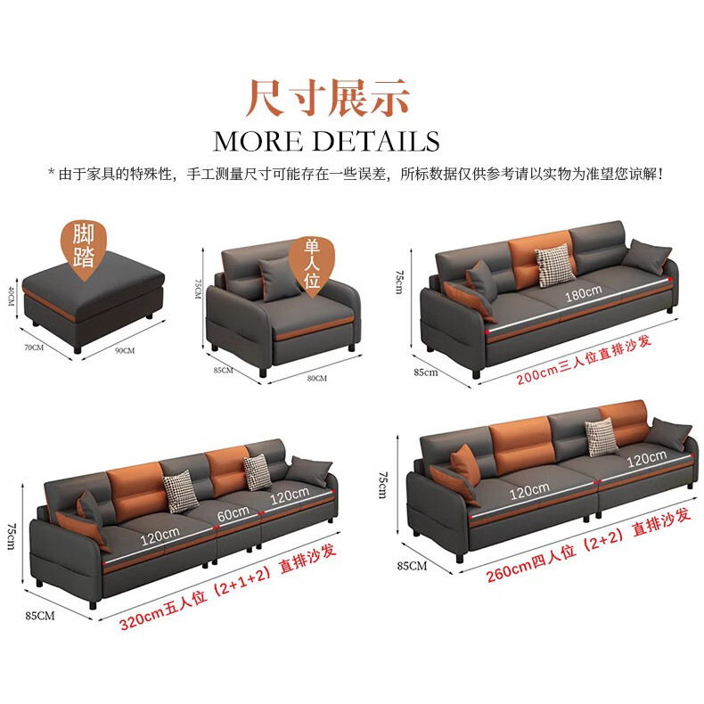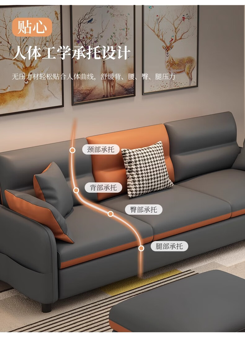 沐眠意式布艺沙发客厅大小户型现代简约免洗科技布SF-8826 脚踏