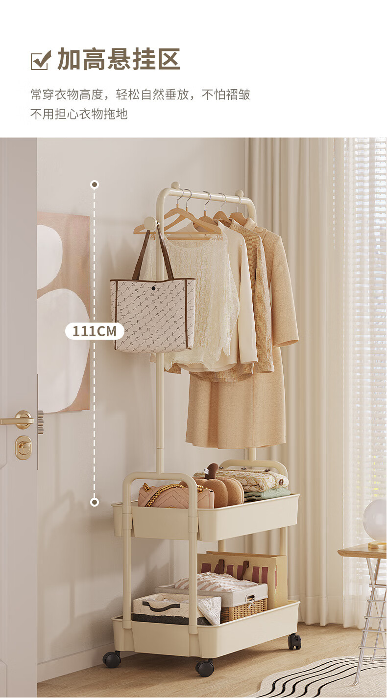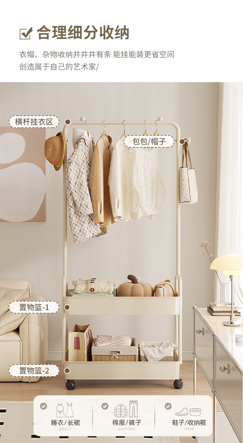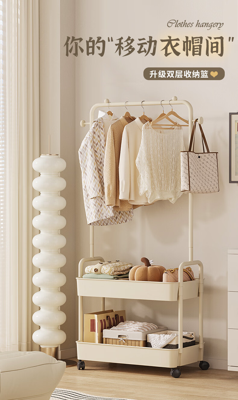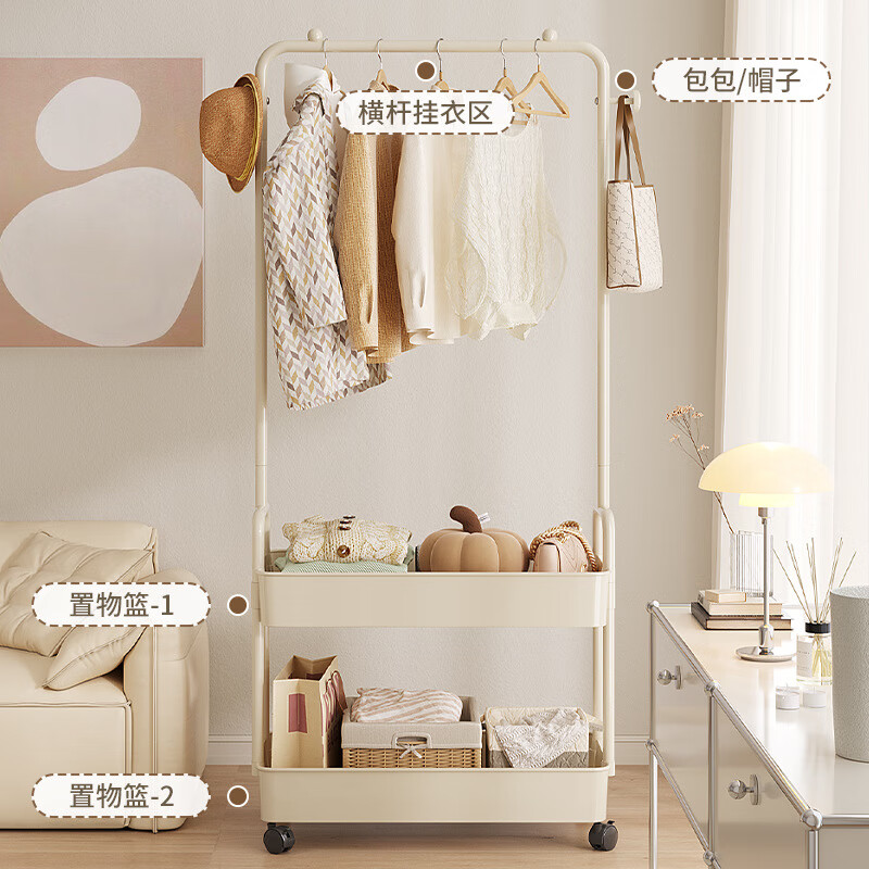 全品屋衣帽架挂衣架落地晾衣架收纳衣服架子卧室衣架可移动置物架