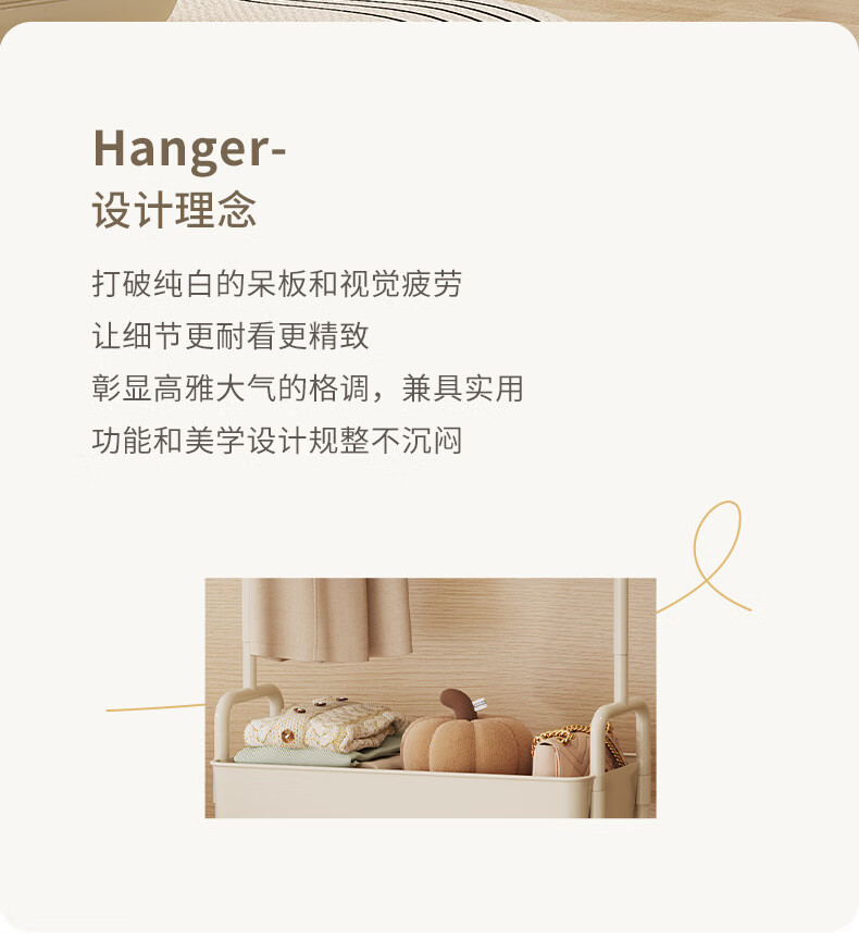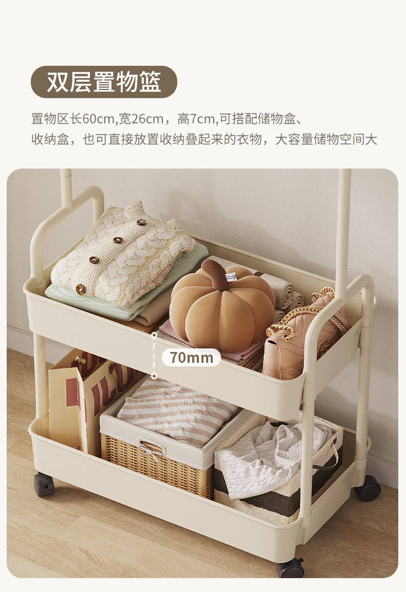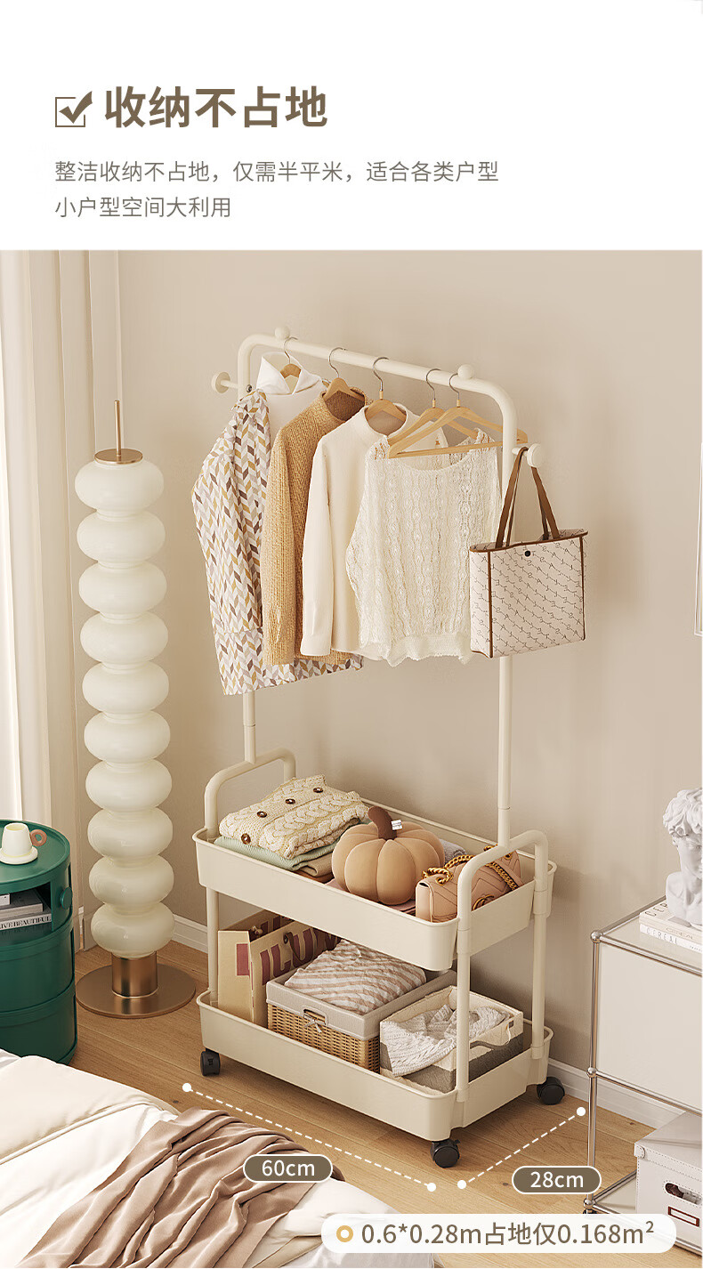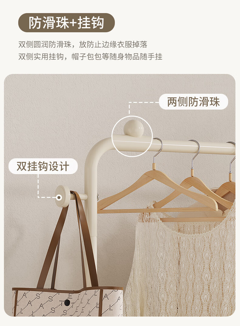 全品屋衣帽架挂衣架落地晾衣架收纳衣服架子卧室衣架可移动置物架