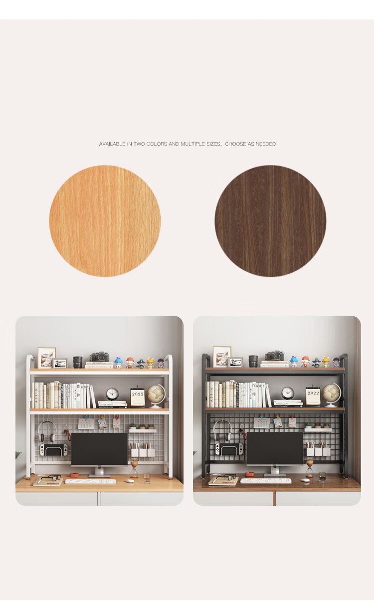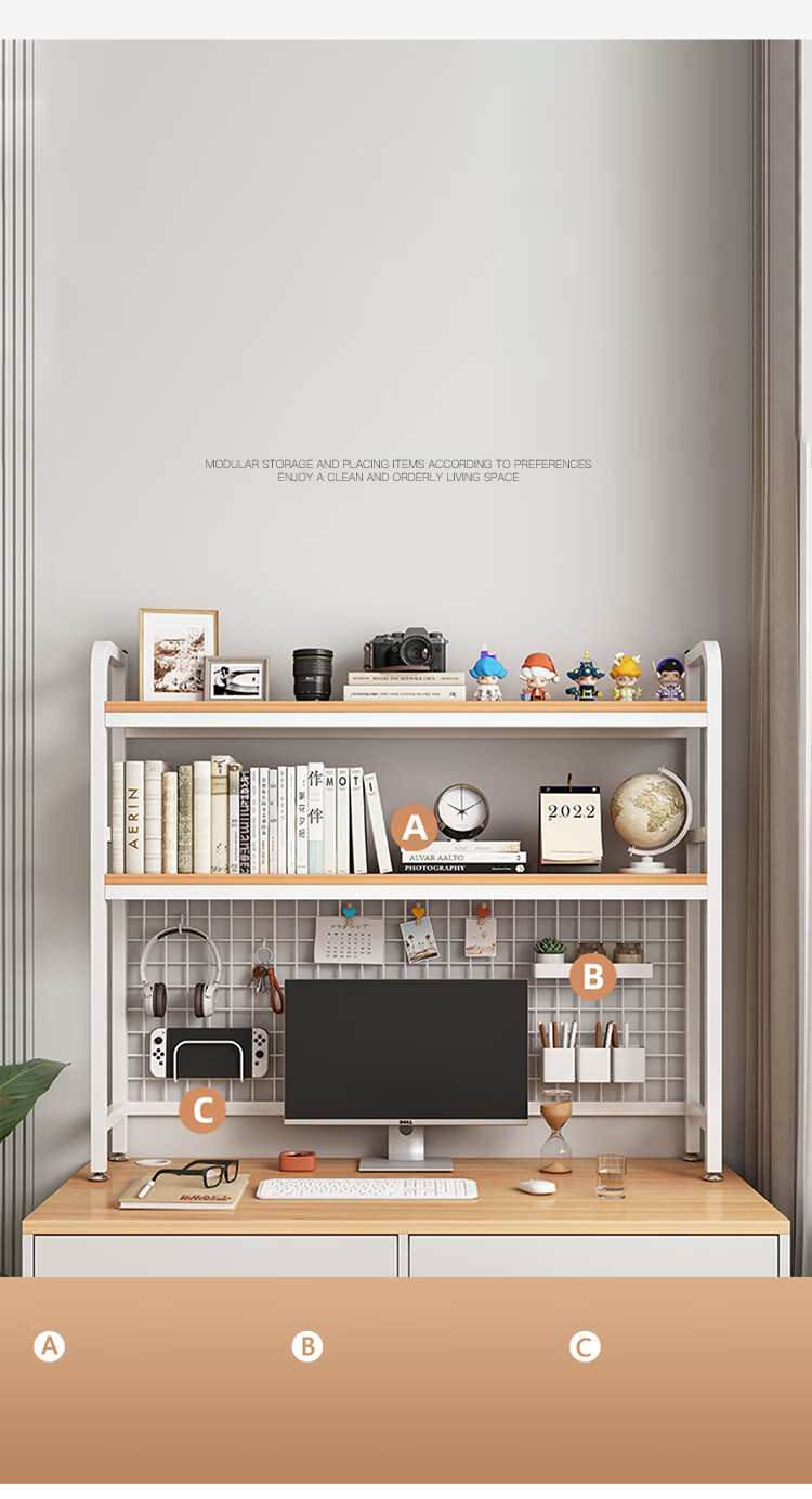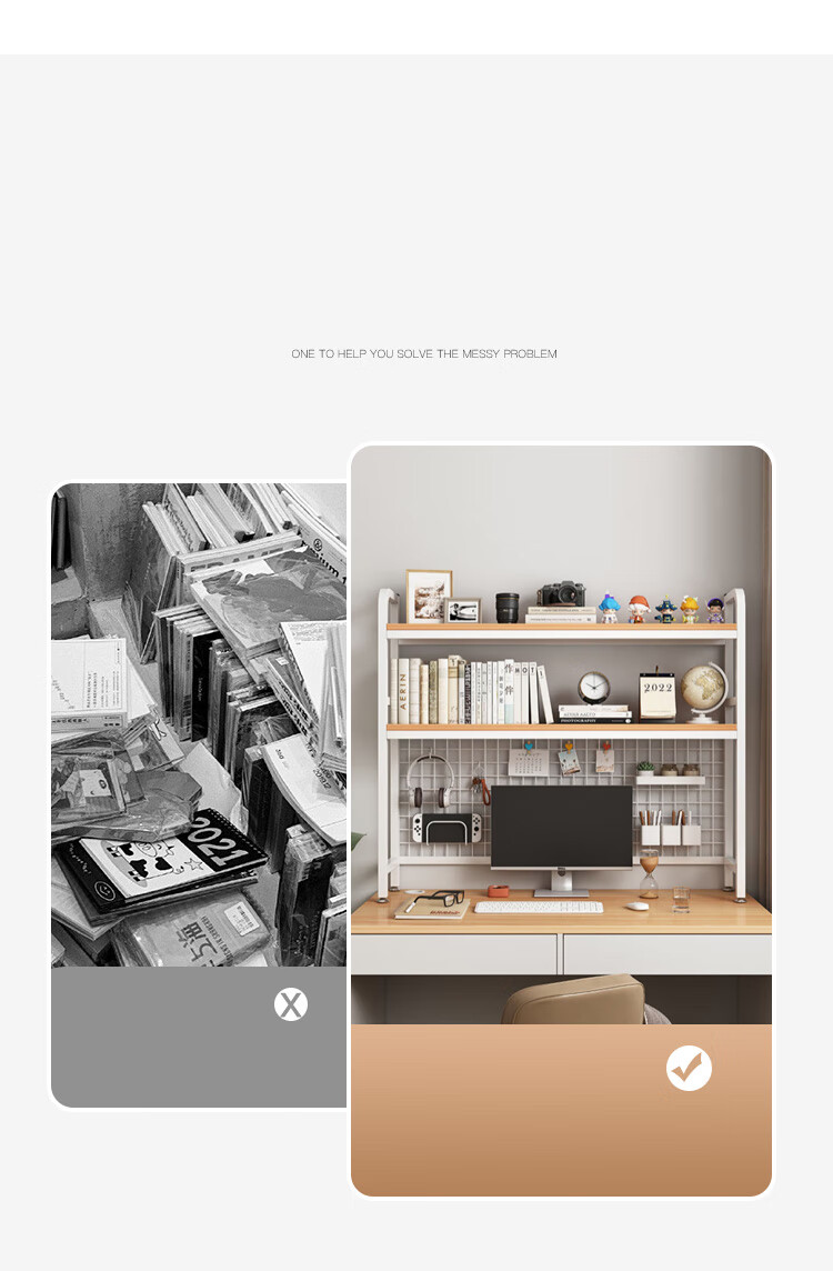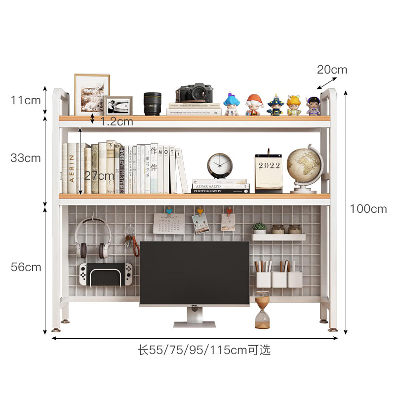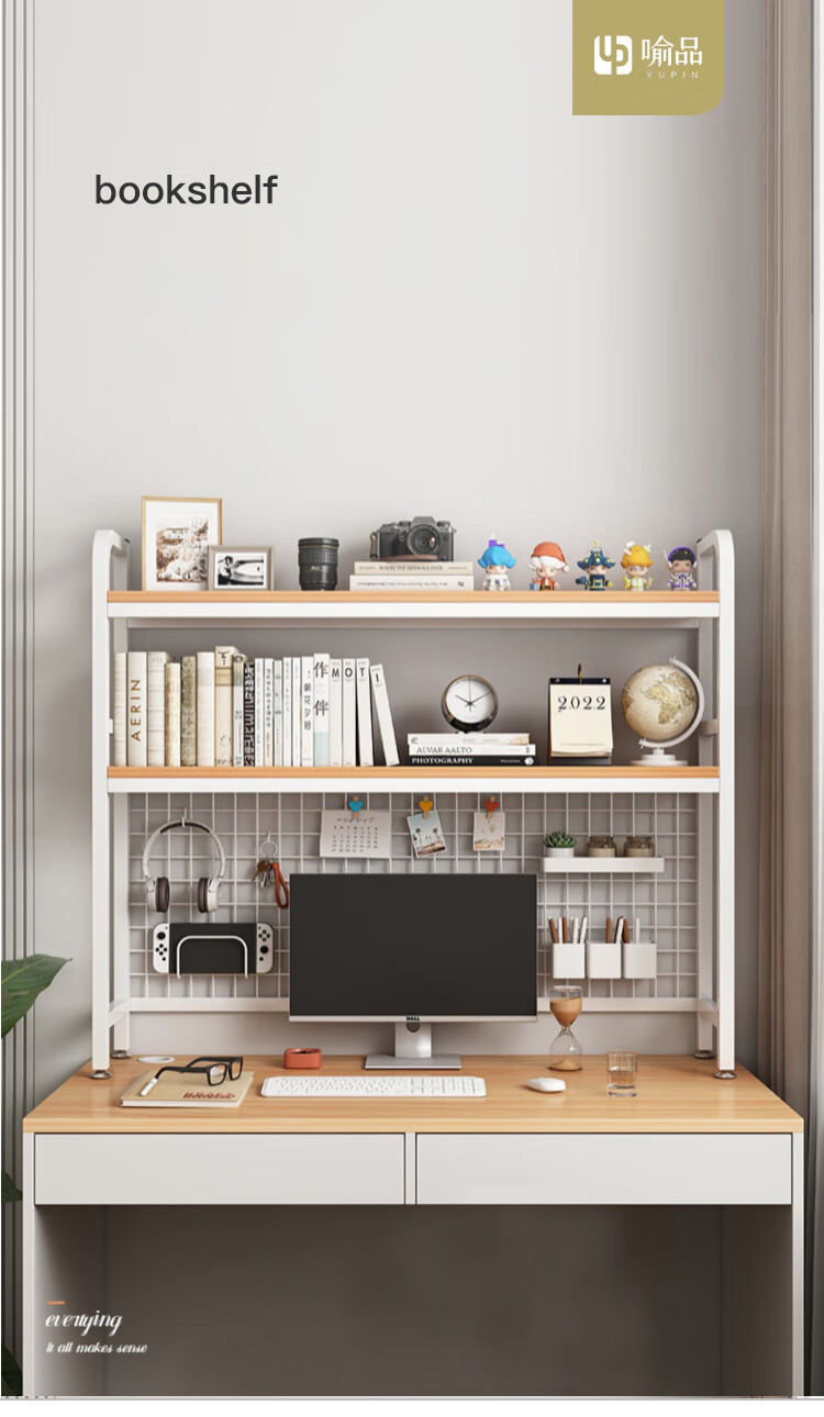 喻品书架桌上书架桌面置物架学生宿舍书架双层收纳洞板 ZW95双层95白
