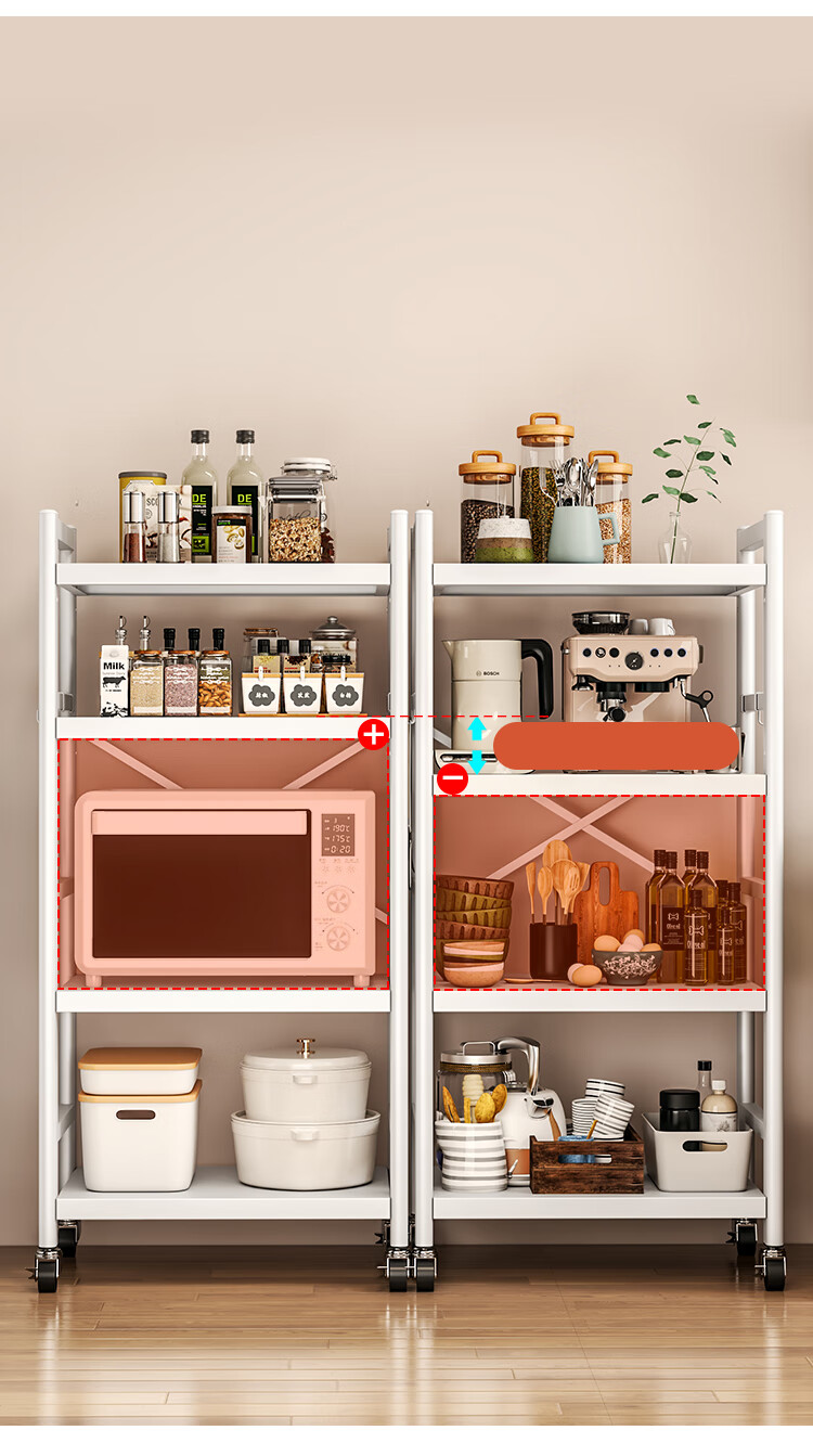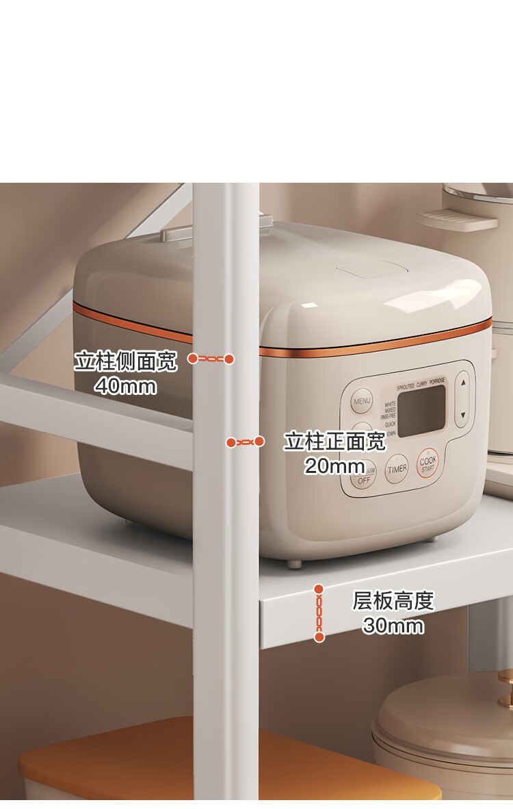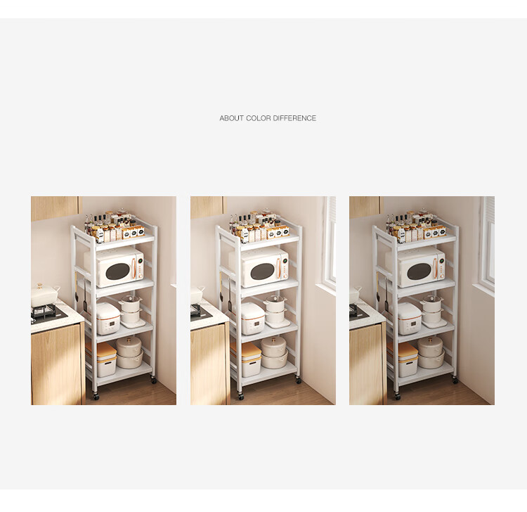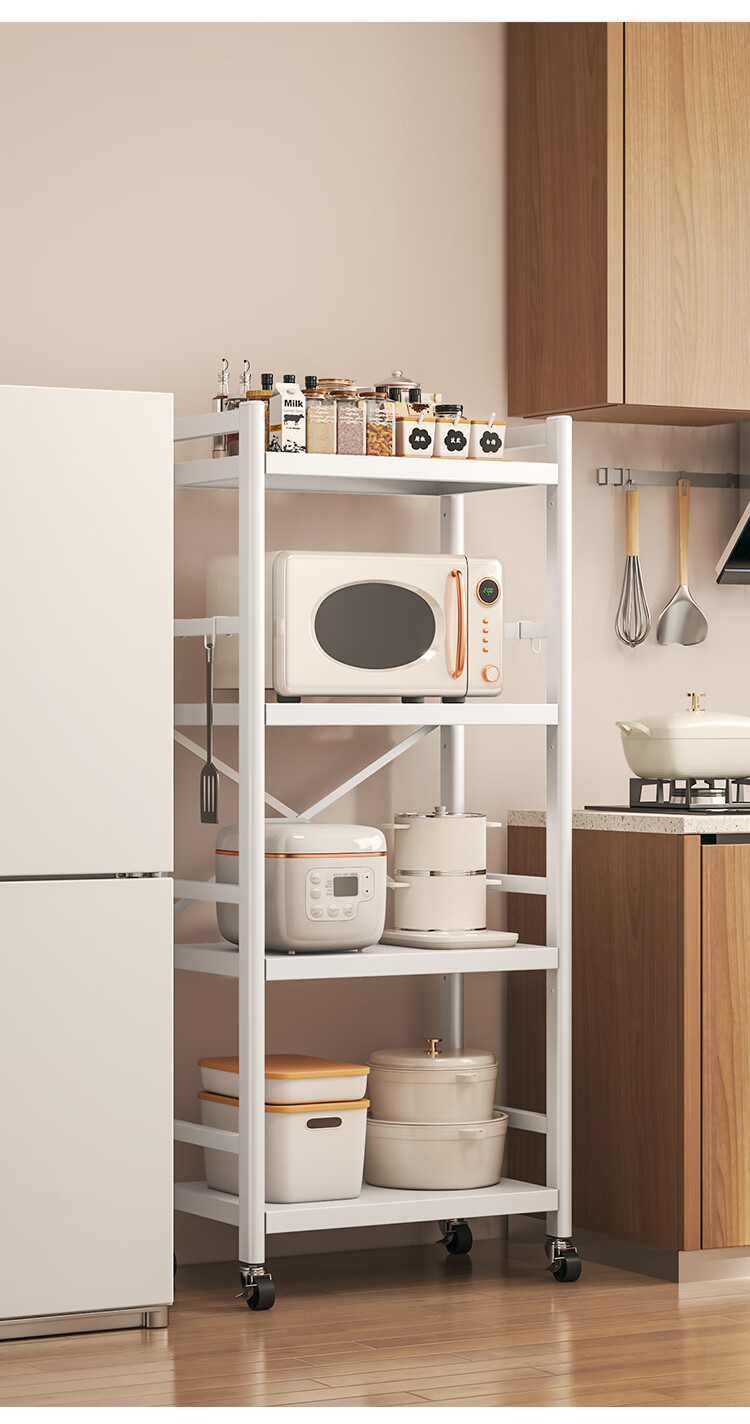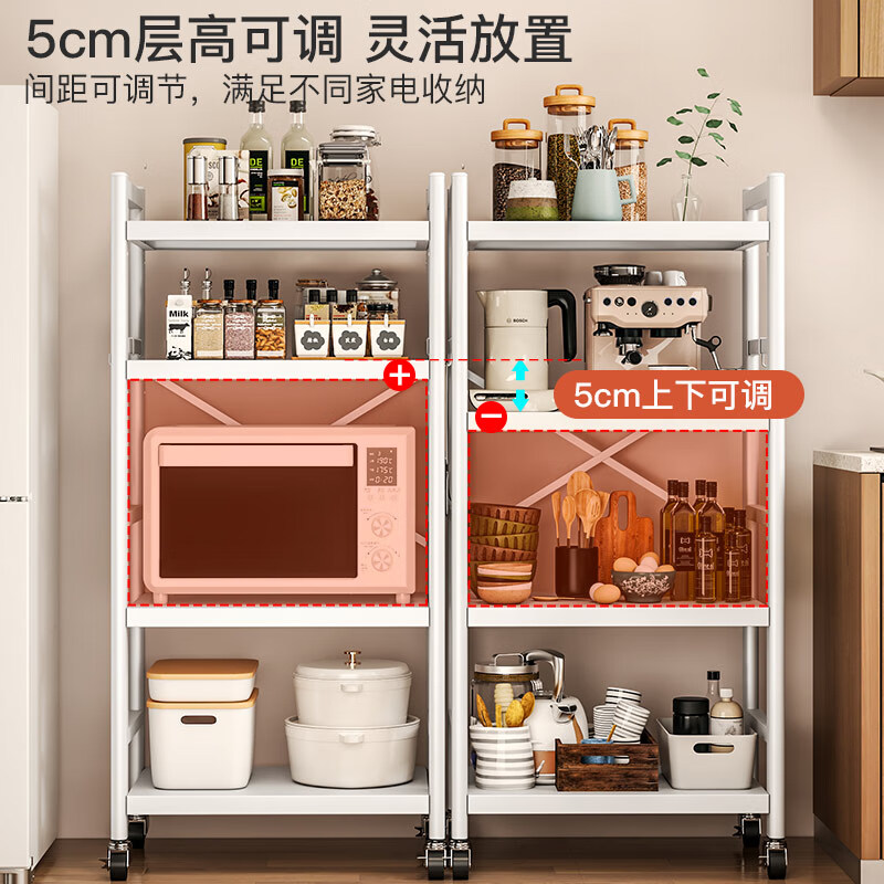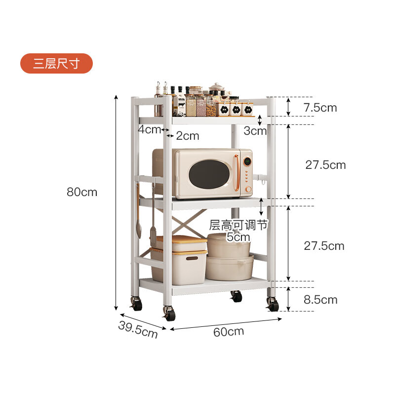喻品厨房置物架落地多层多功能微波锅具收纳果蔬储物架ZW200三层60白