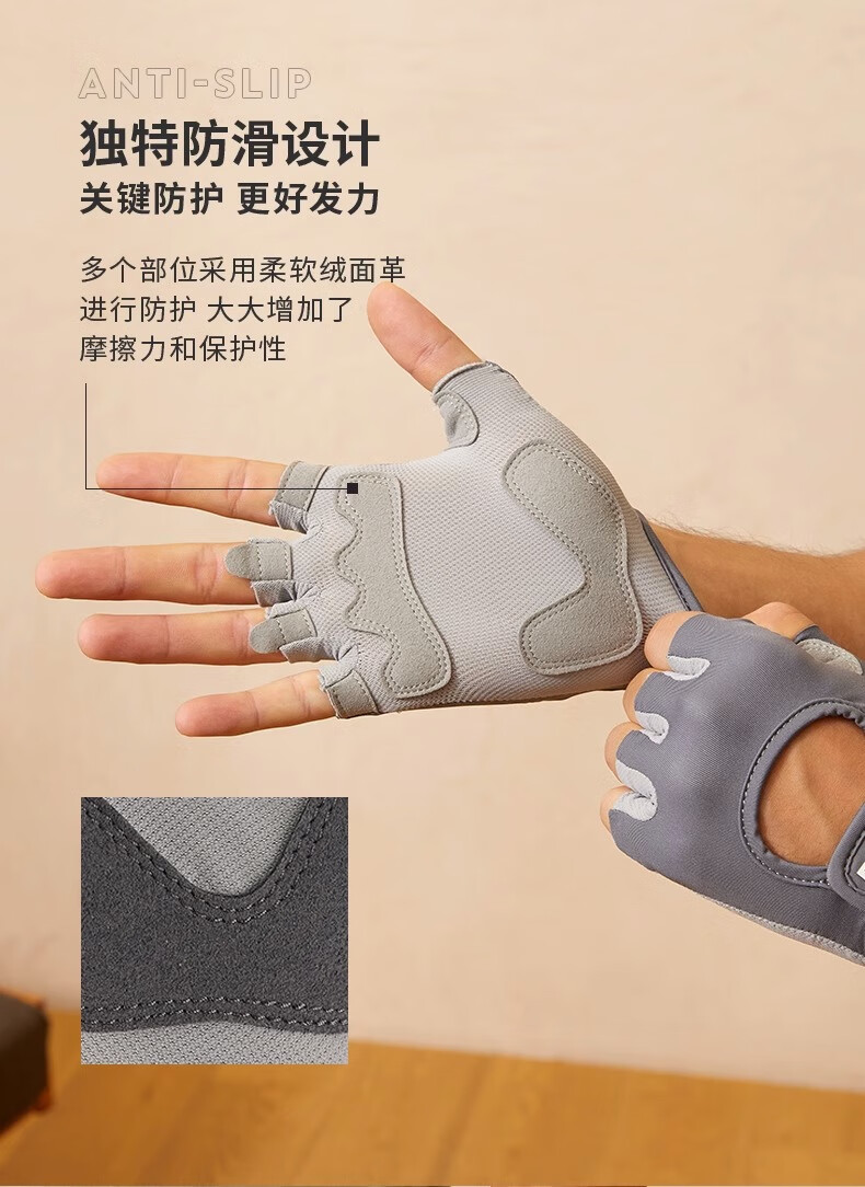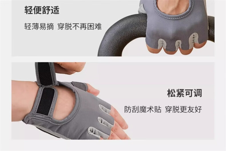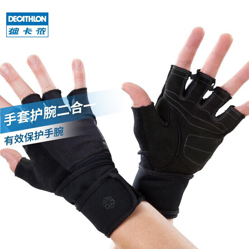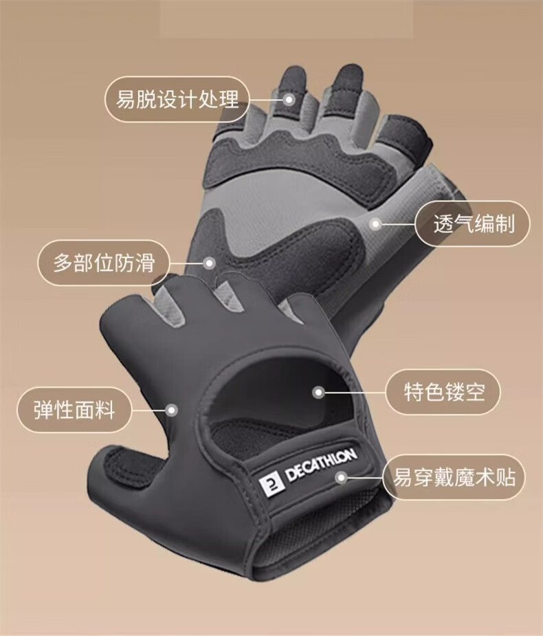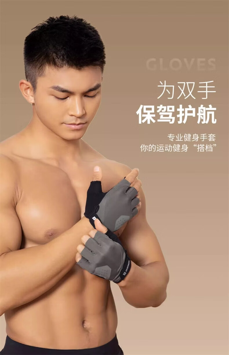 迪卡侬健身手套女男半指单杠哑铃耐磨引体向上灰色初阶M4712704