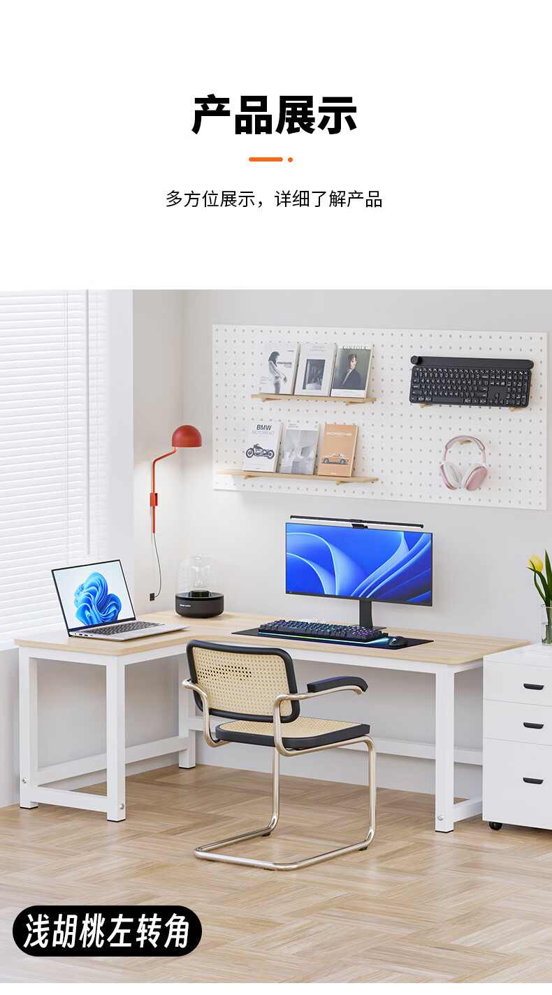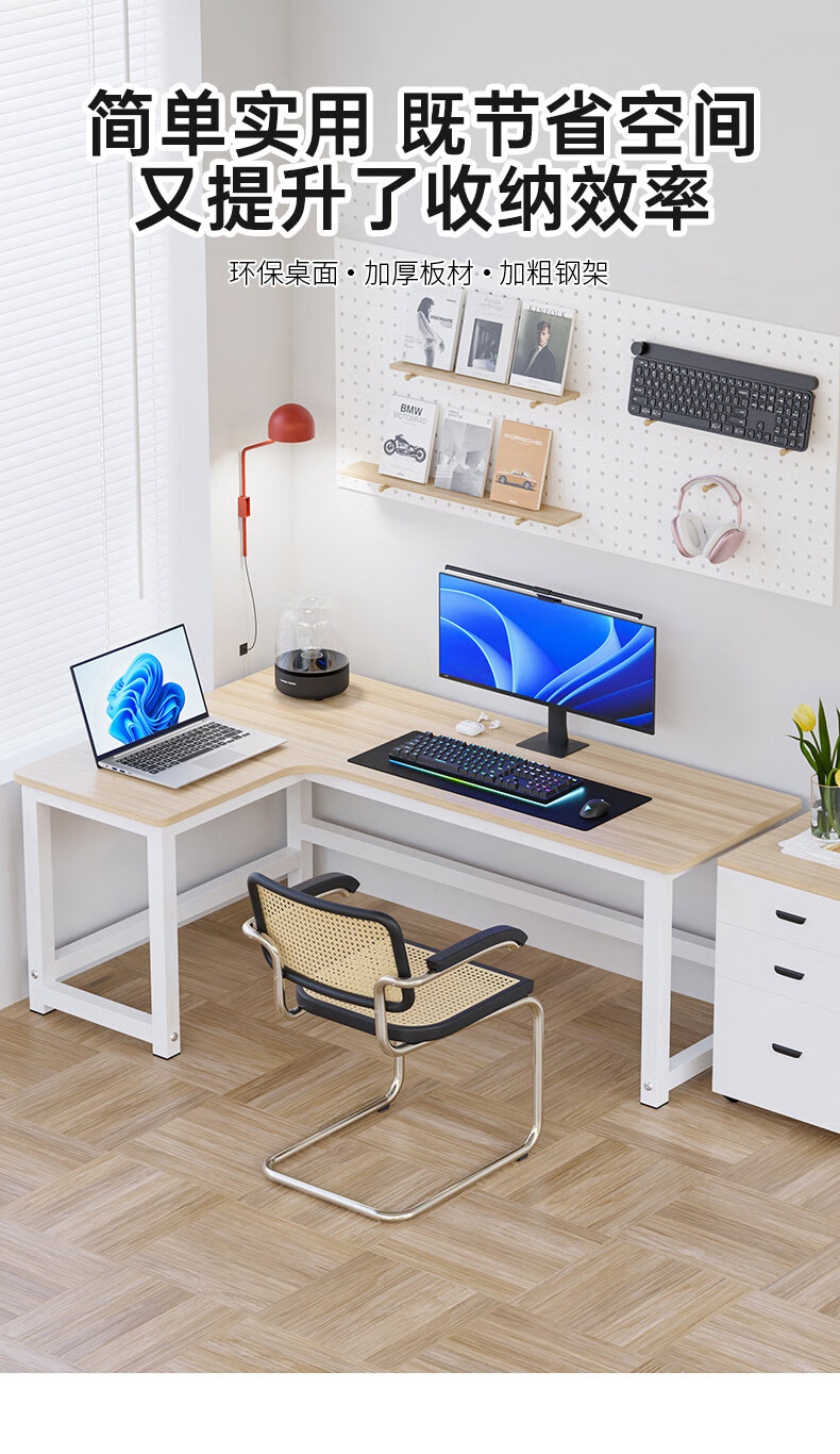 雅美乐左转角书桌学习桌加厚台式电脑桌L型拐角桌子简易办公书桌