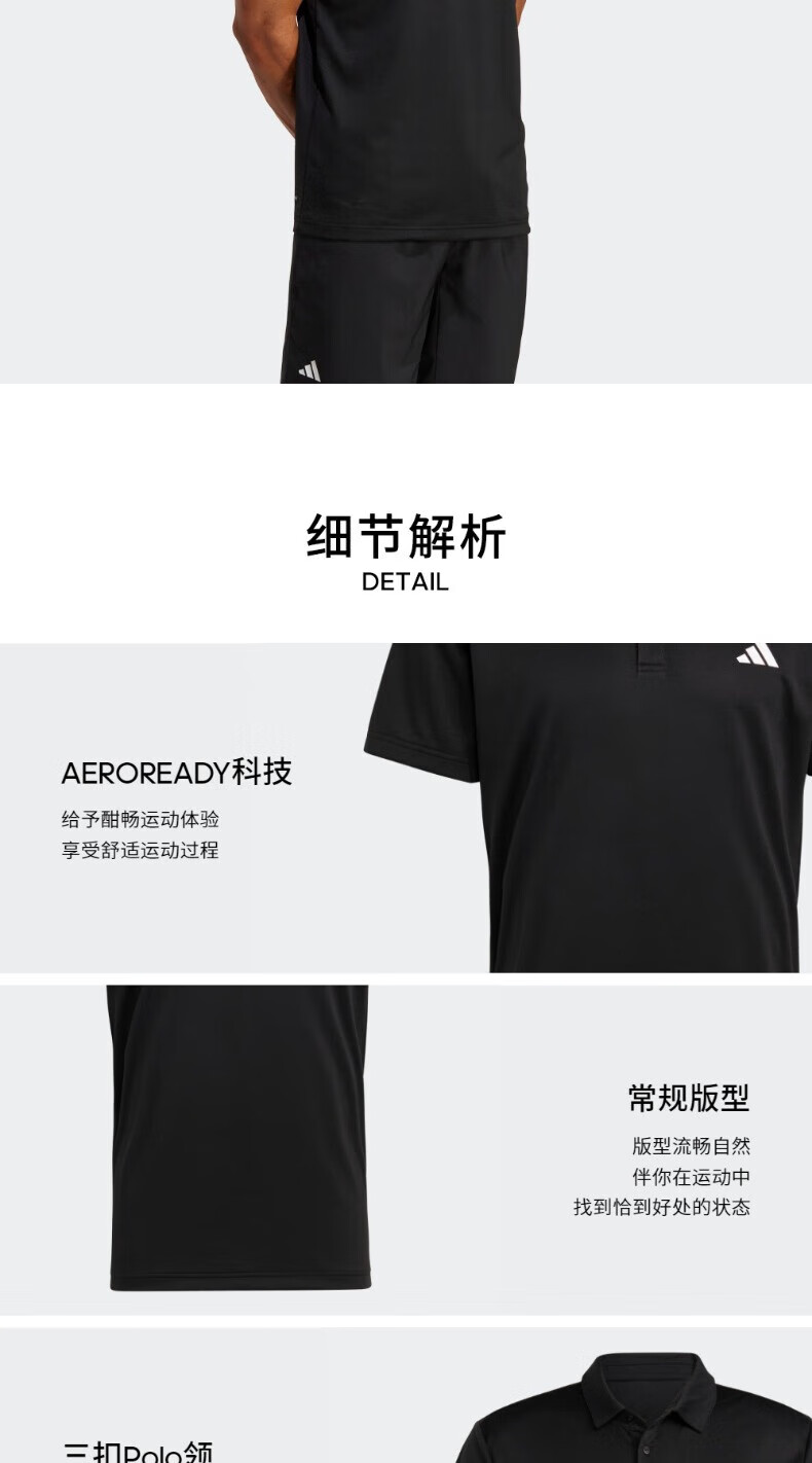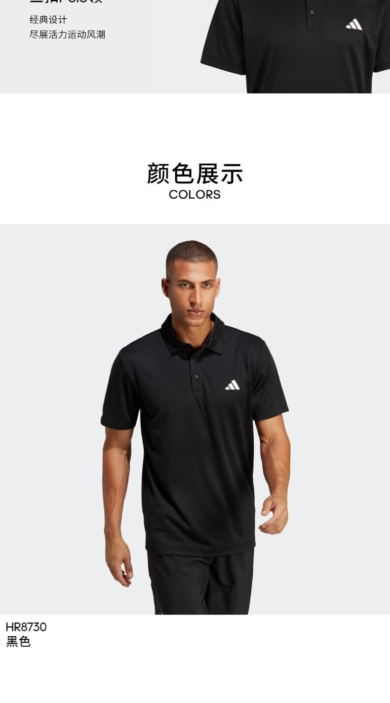 阿迪达斯 adidas男夏季速干网球运动短袖翻领POLO衫 HR8730黑色2XL