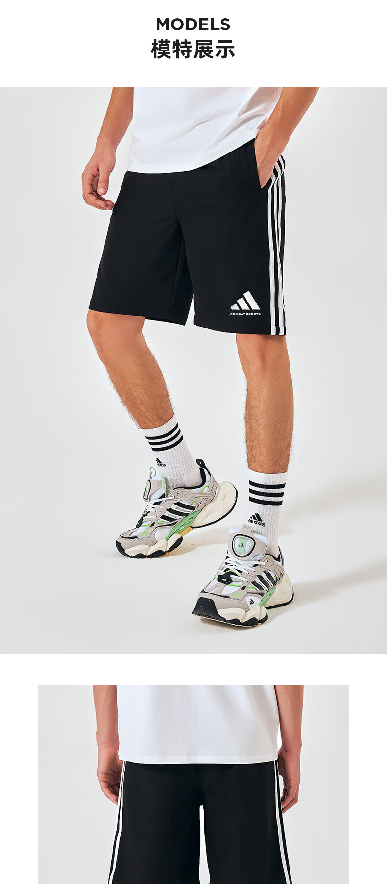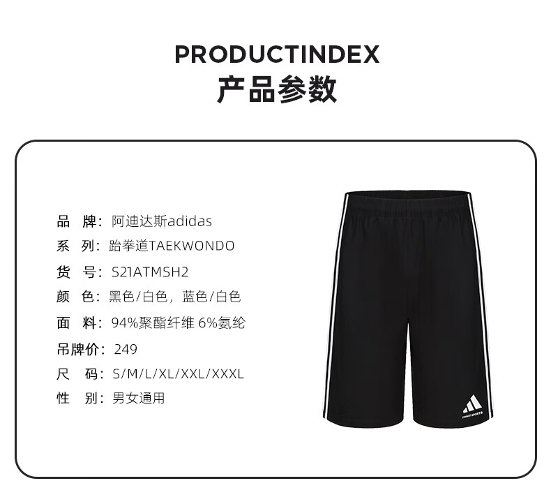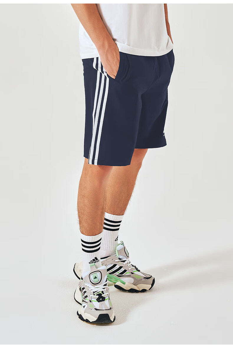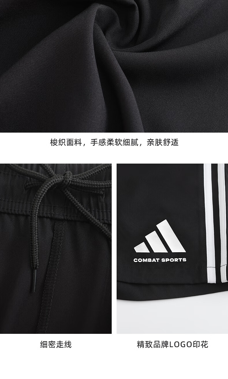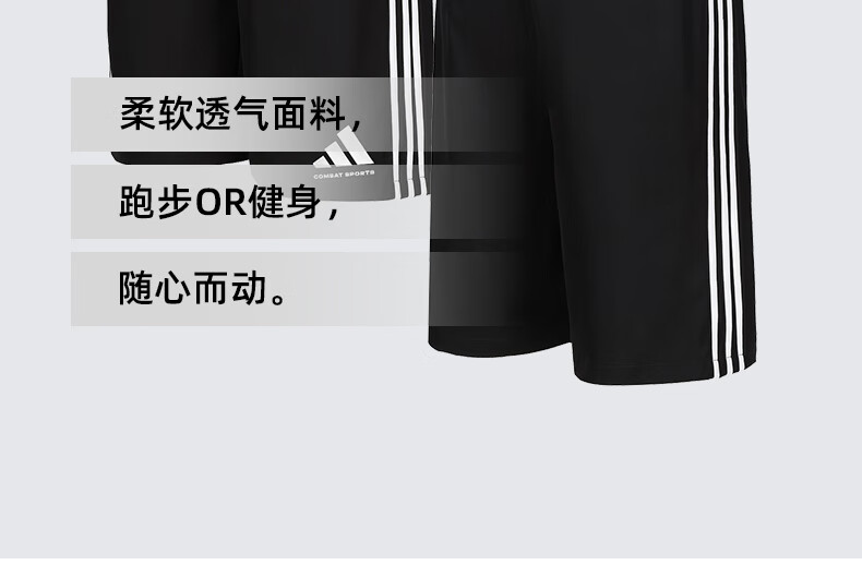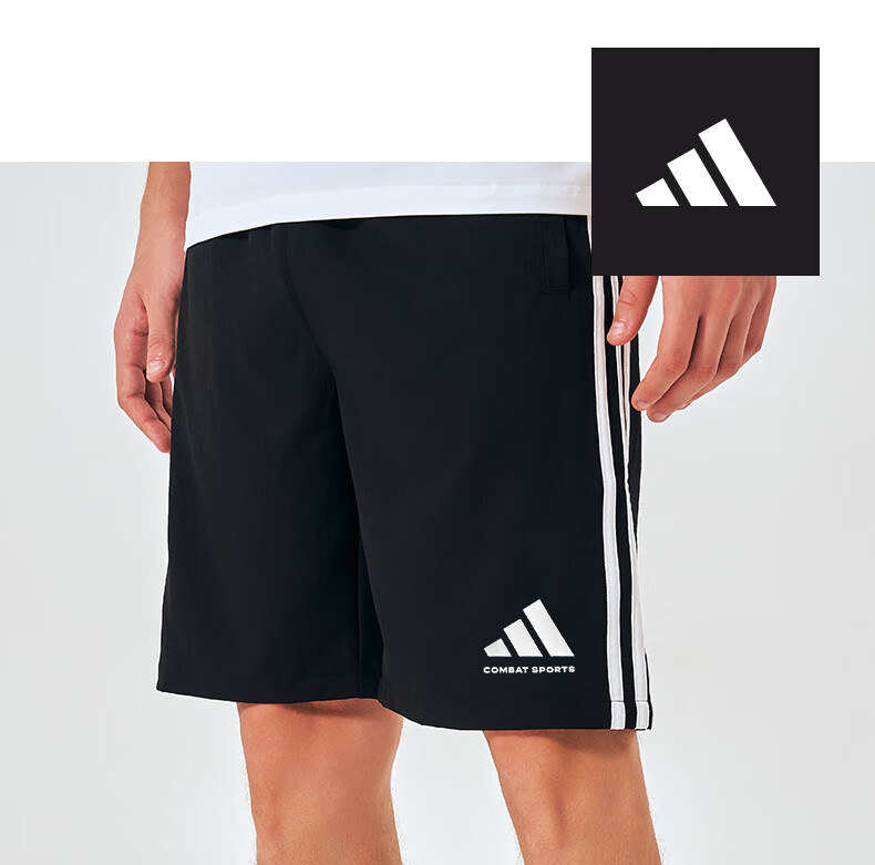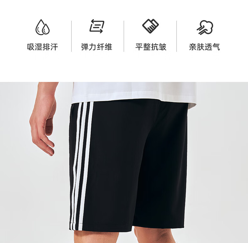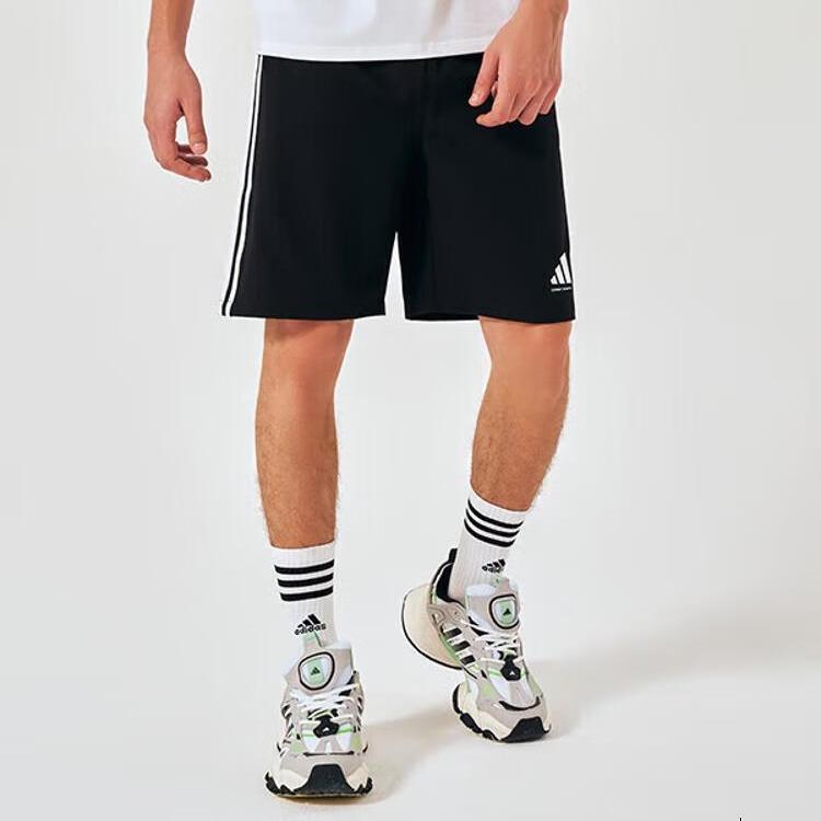 阿迪达斯短裤男夏季透气薄款宽松休闲运动梭织五分裤 黑/白 2CS-BW