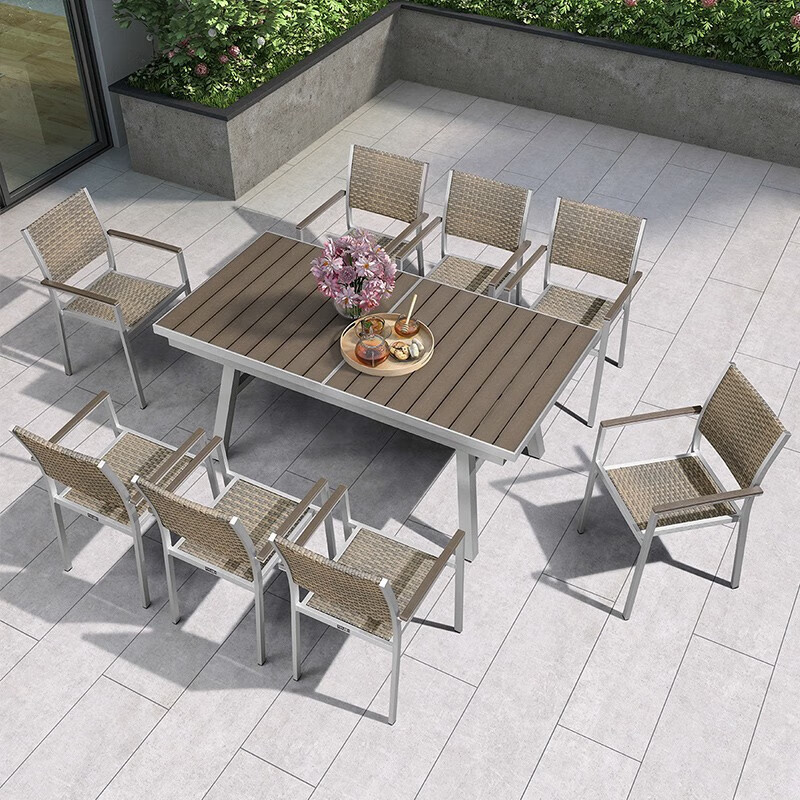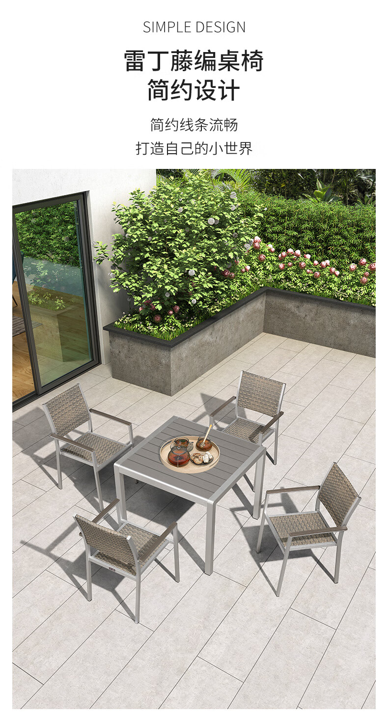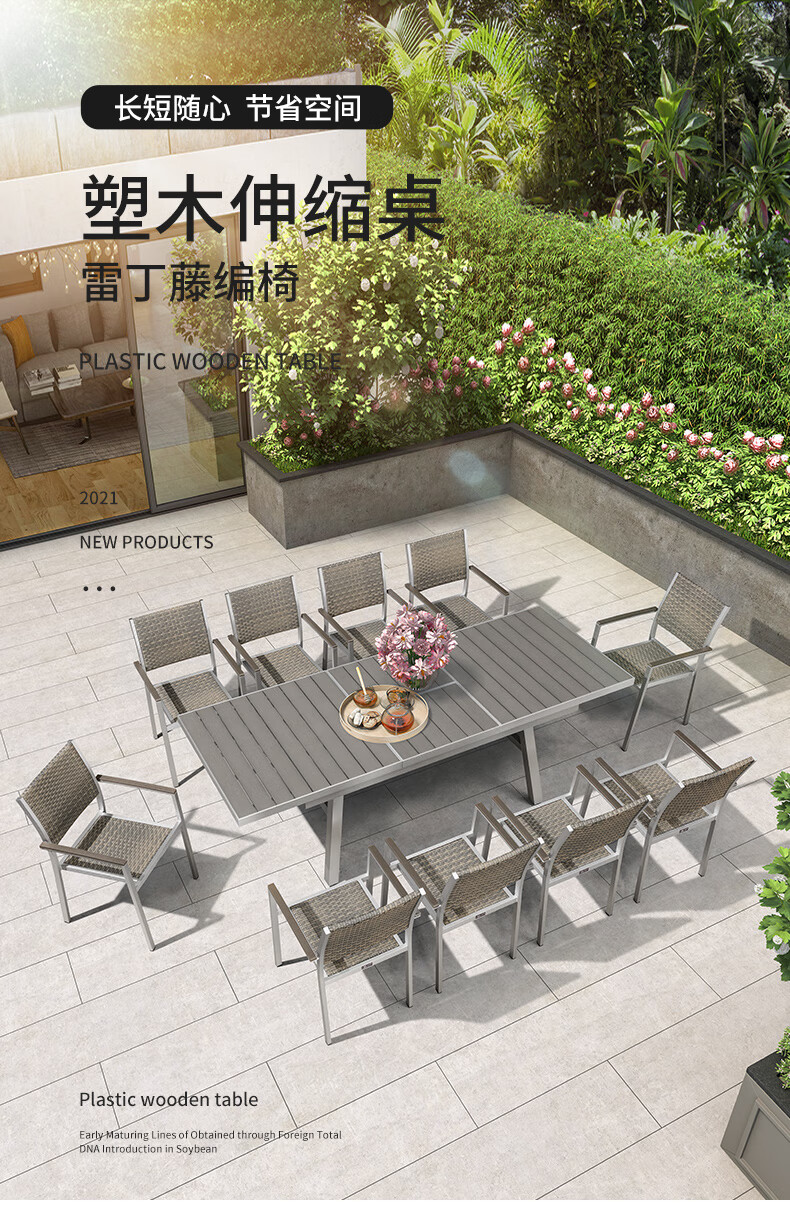 紫叶户外桌椅组合室外藤椅塑木休闲餐桌椅庭院花园阳台外摆可伸缩桌