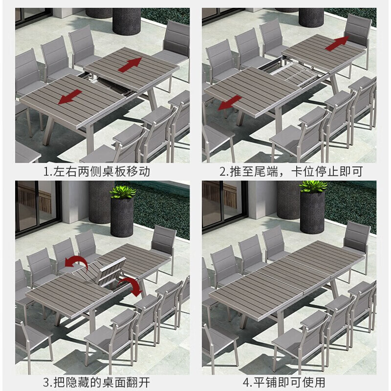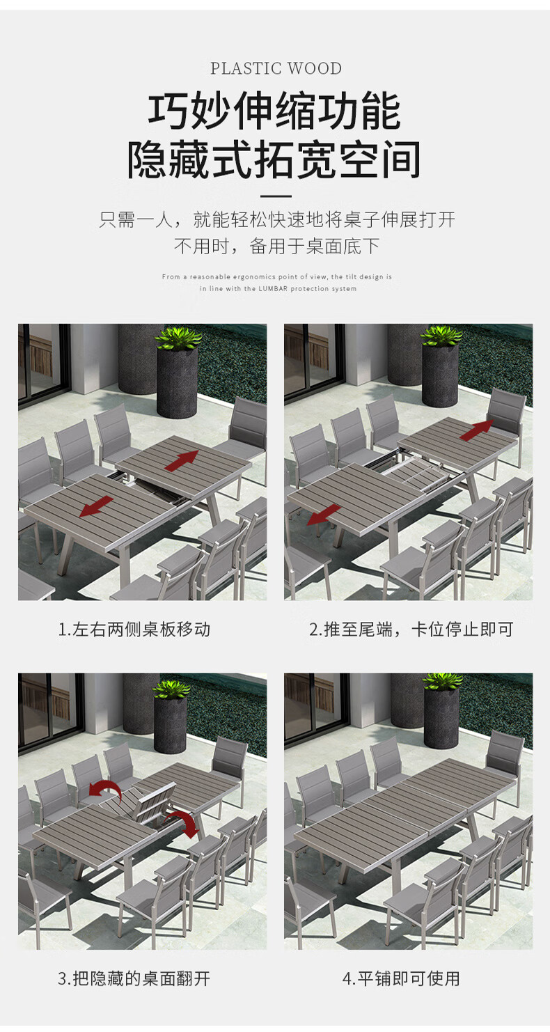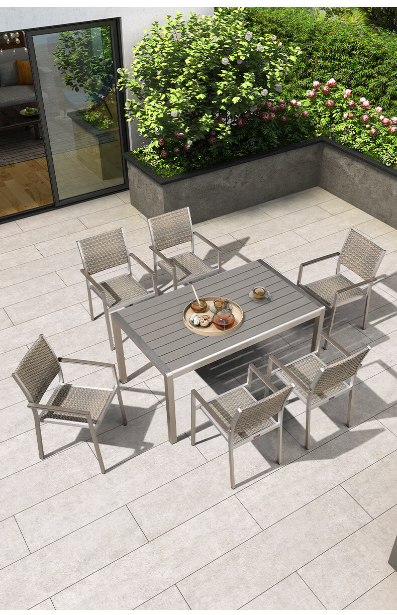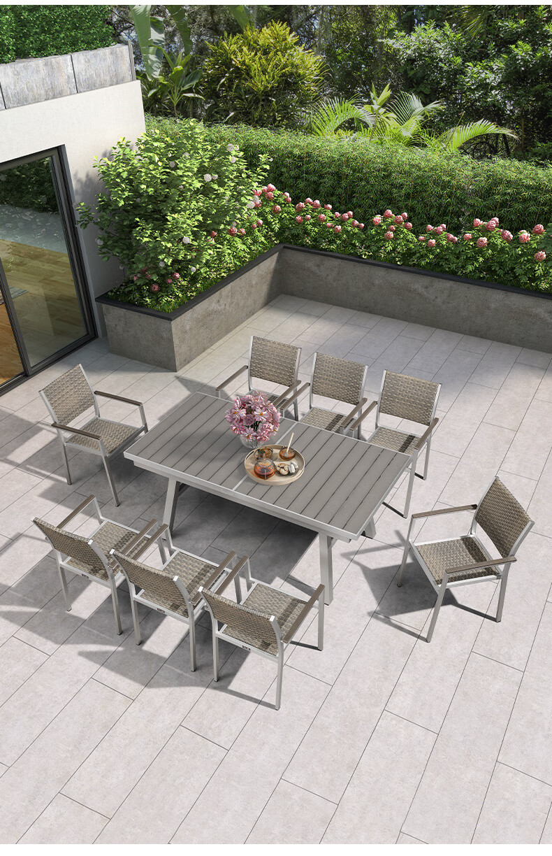 紫叶户外桌椅组合室外藤椅塑木休闲餐桌椅庭院花园阳台外摆可伸缩桌