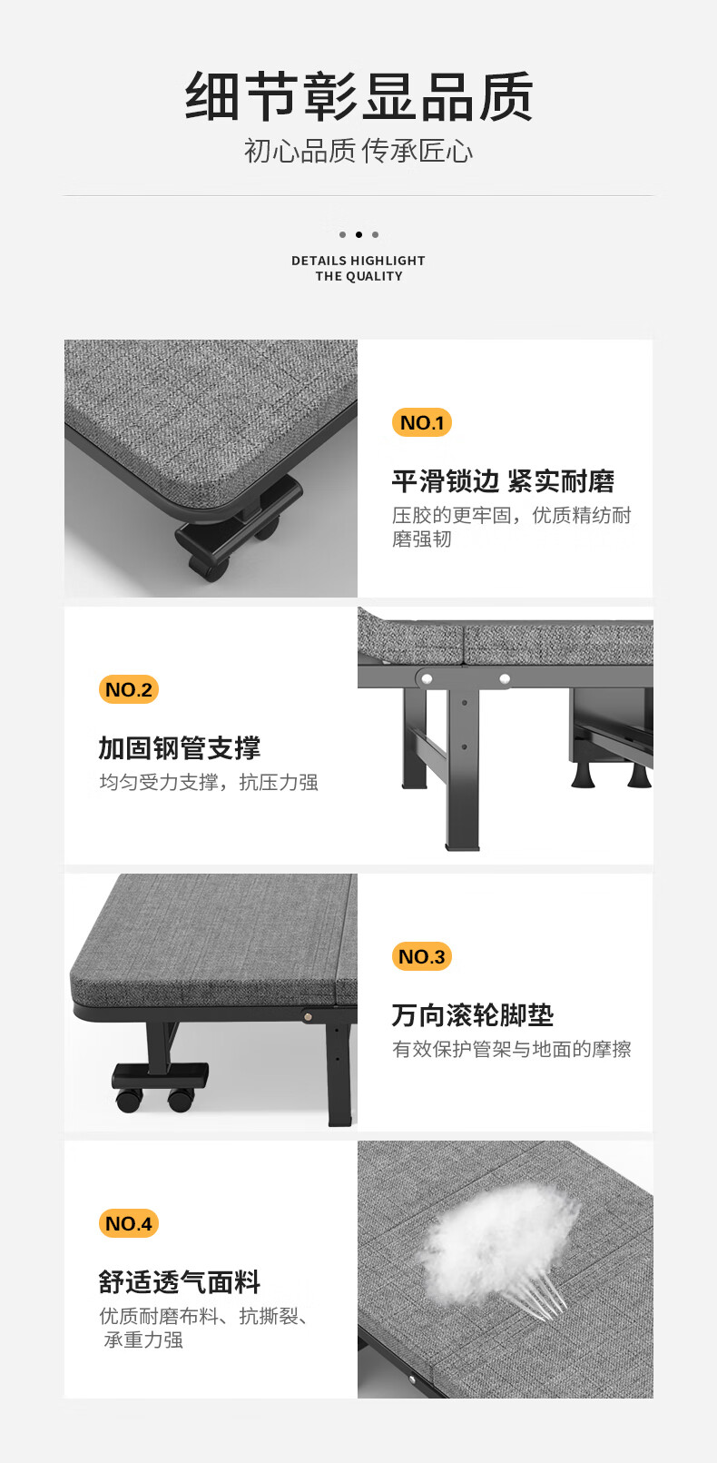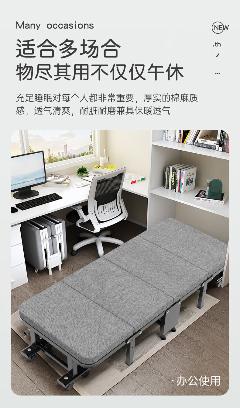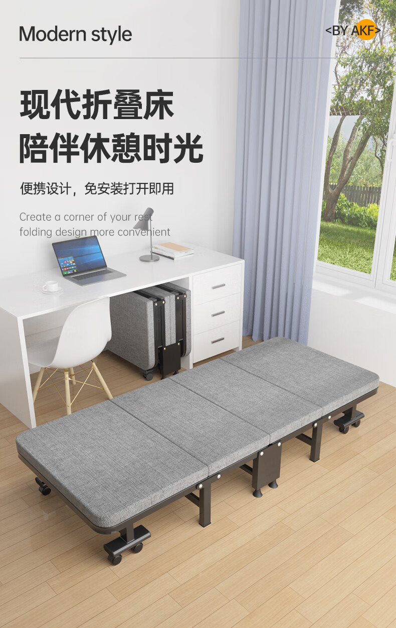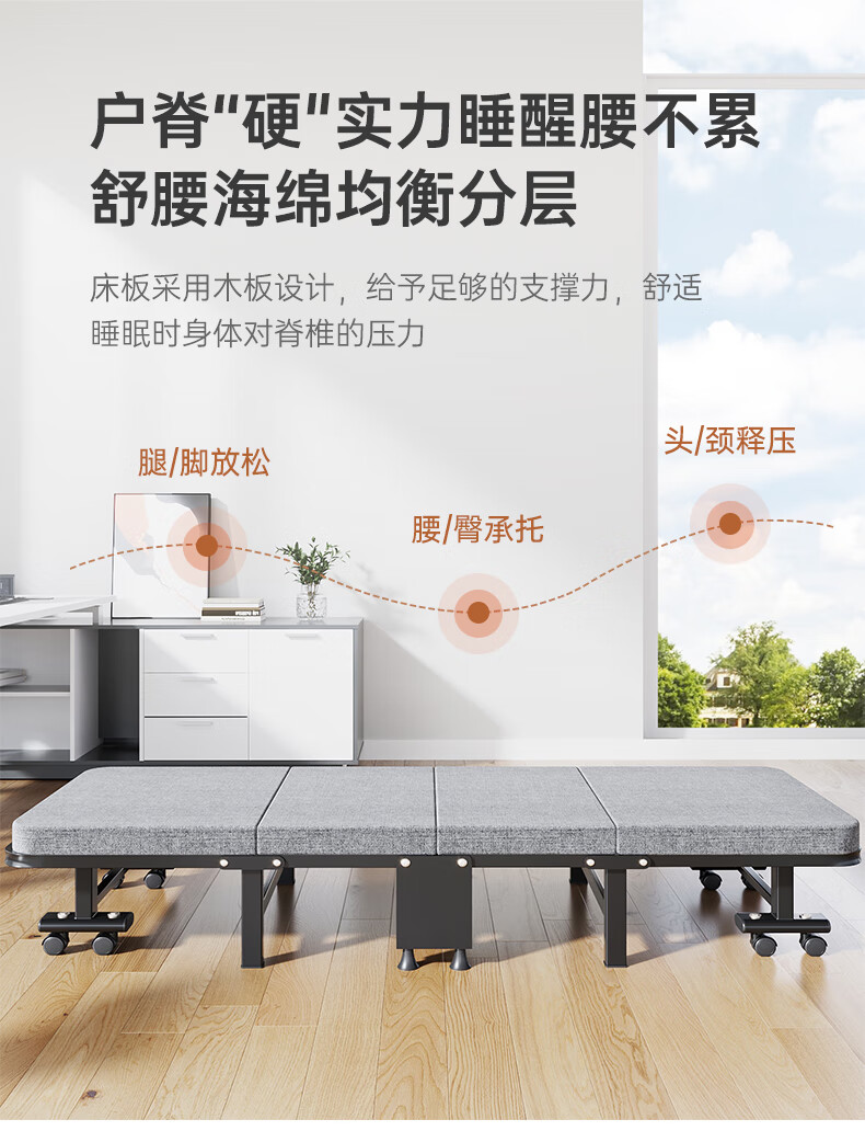 奥凯弗折叠床单人床午休床办公室午睡床行军床木板床 四折海绵床 90cm