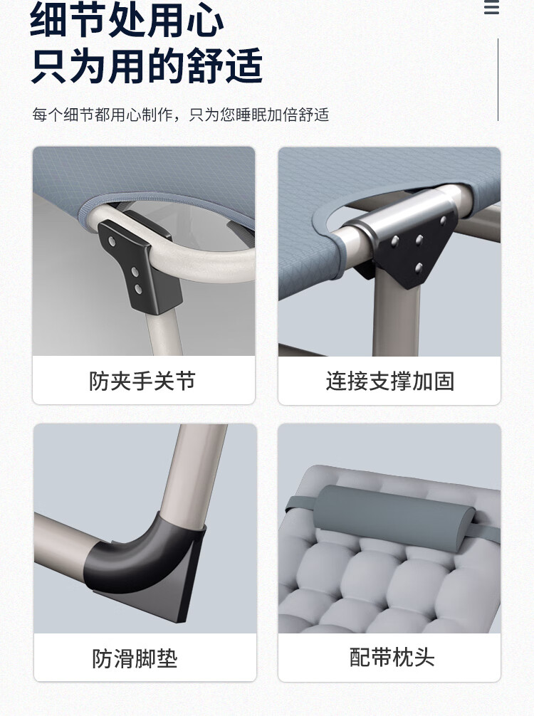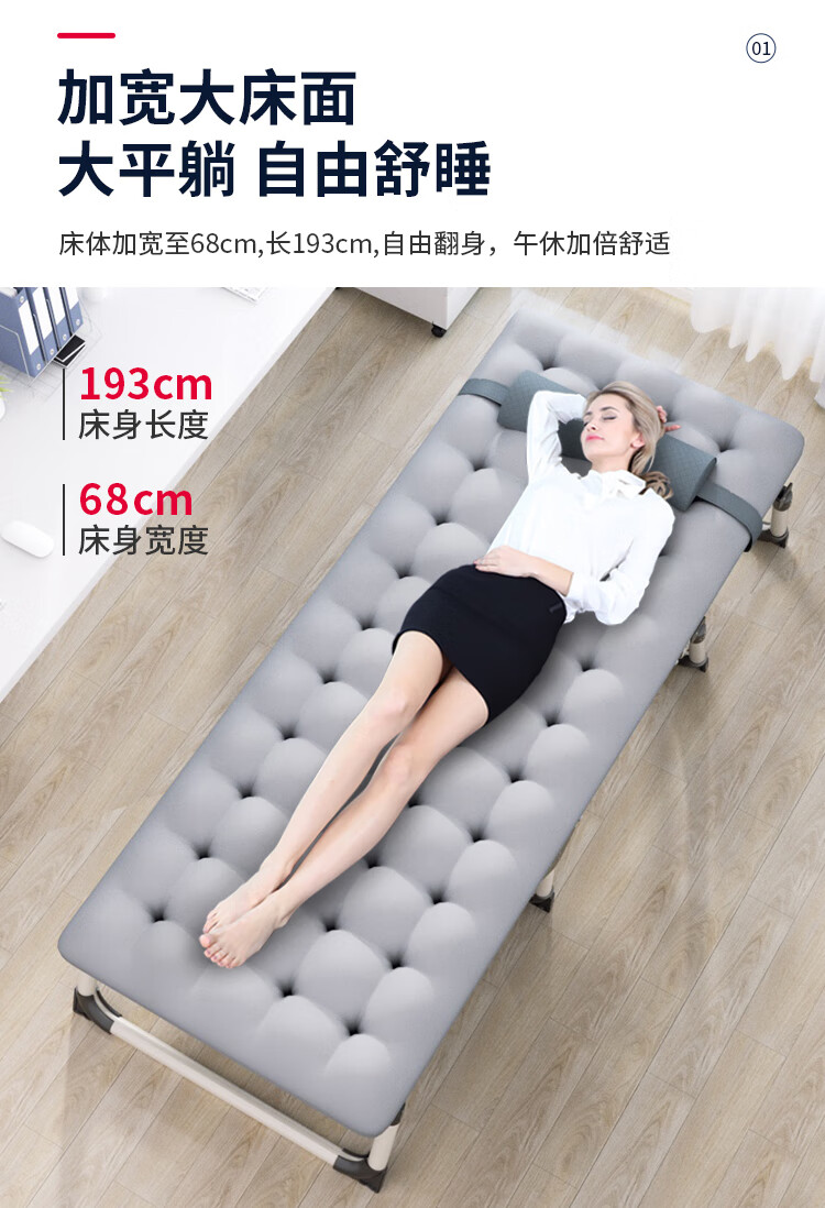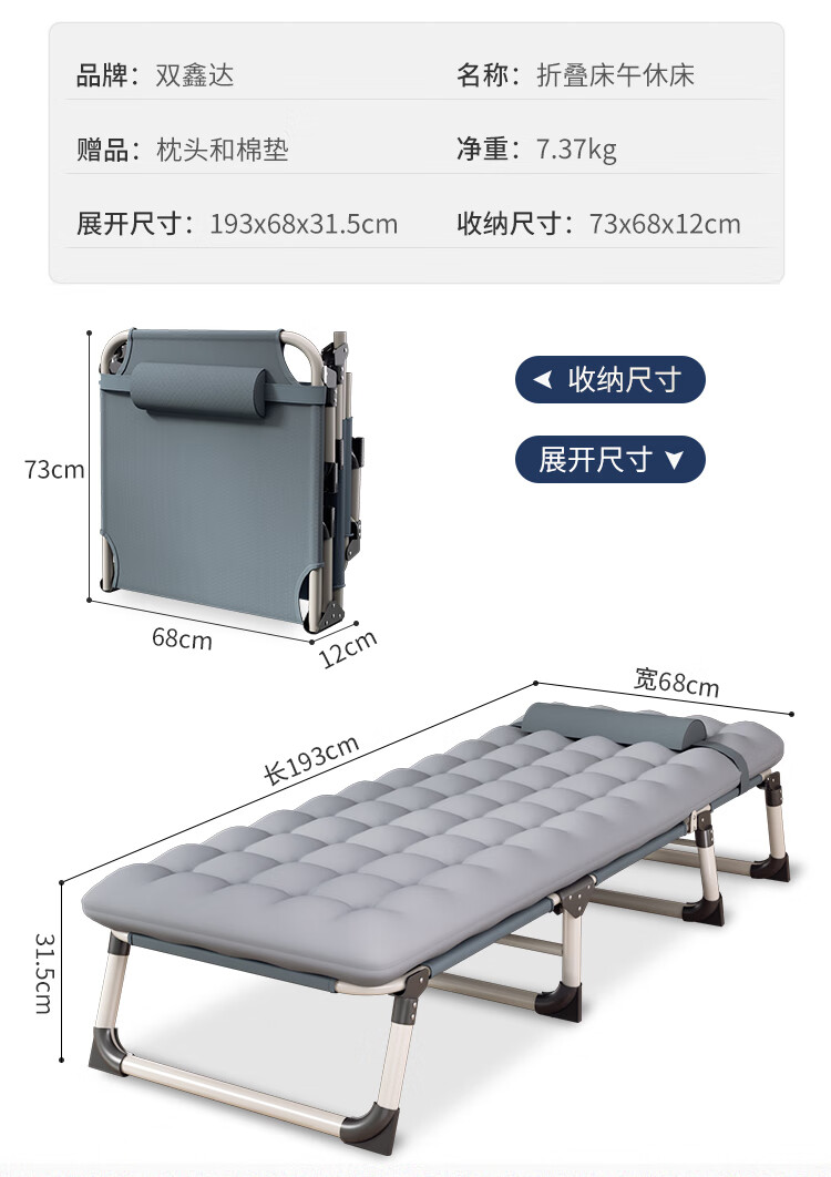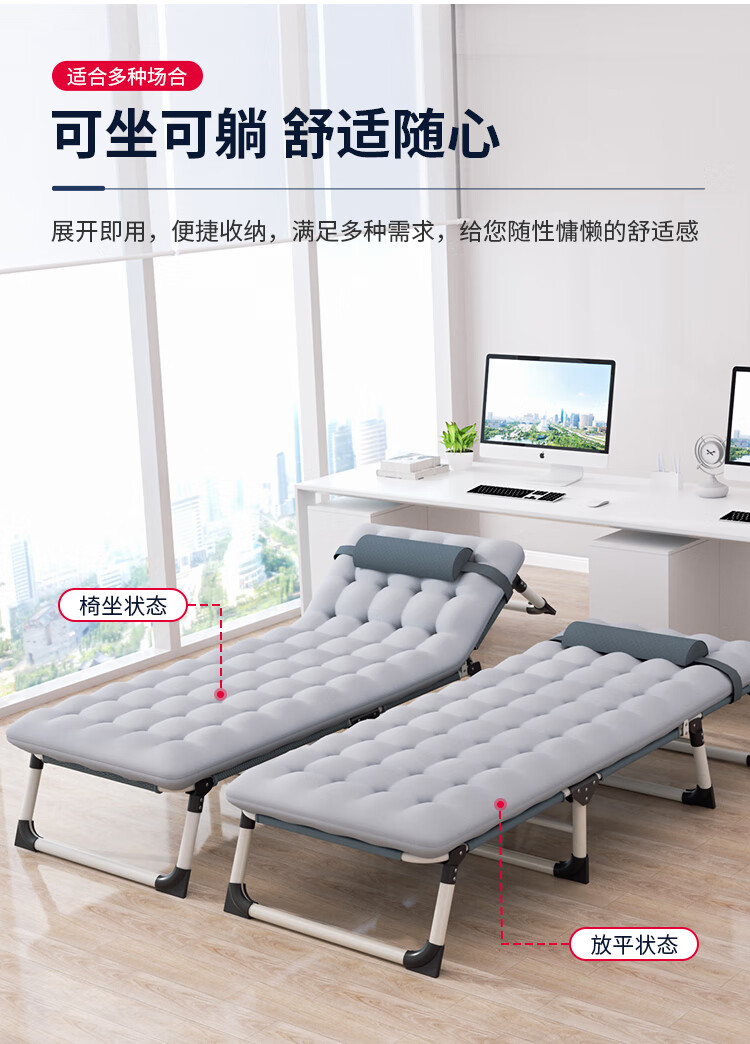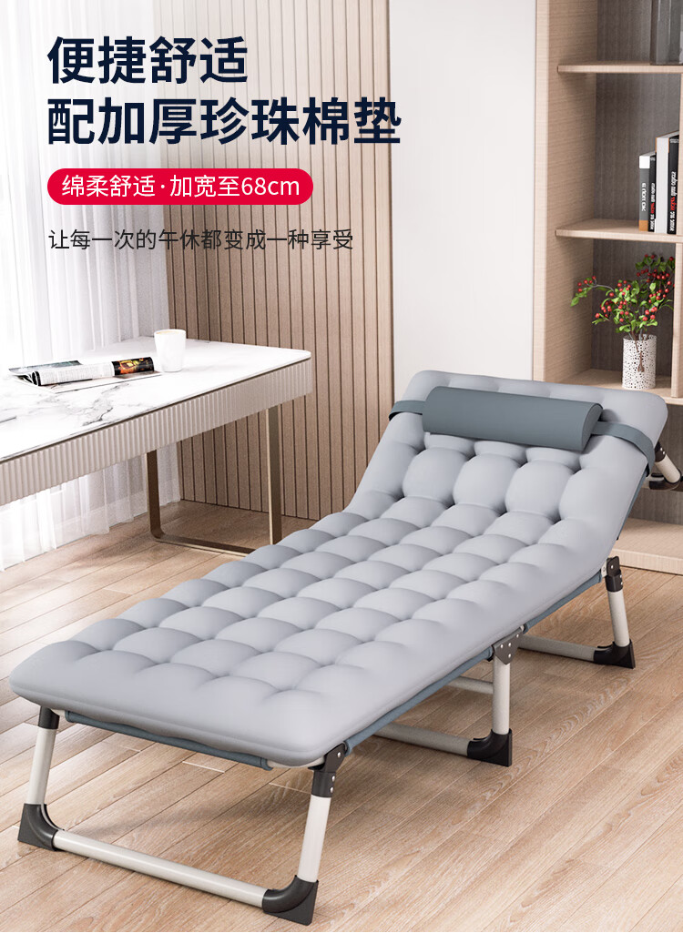 双鑫达 折叠床 躺椅单人床办公室午睡午休床陪护床68cm宽含加厚棉垫